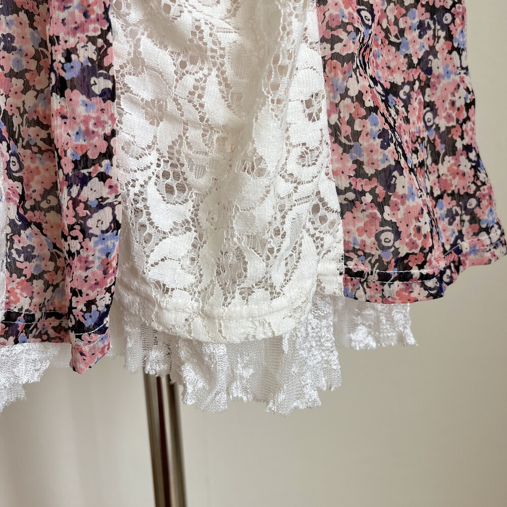 잔꽃 패턴과 레이스 패치 조합이 정말 사랑스러워요