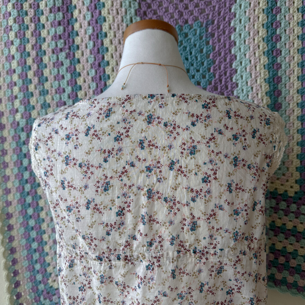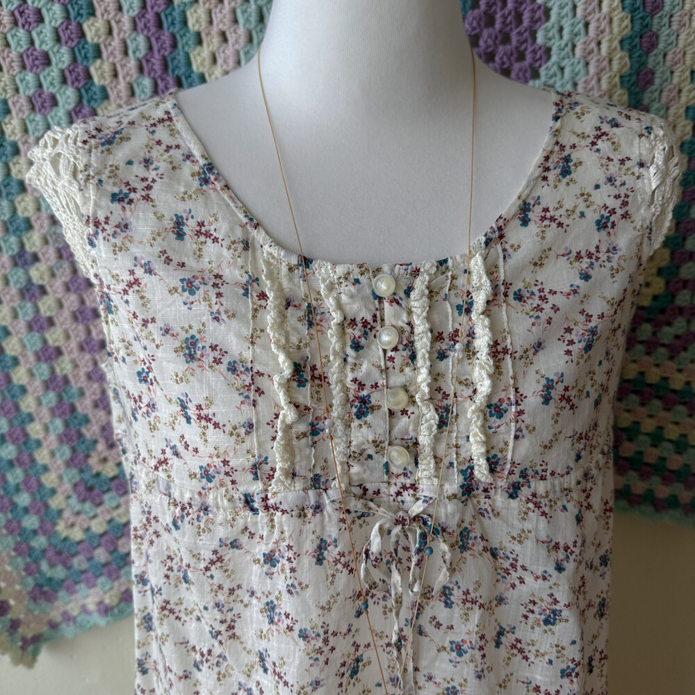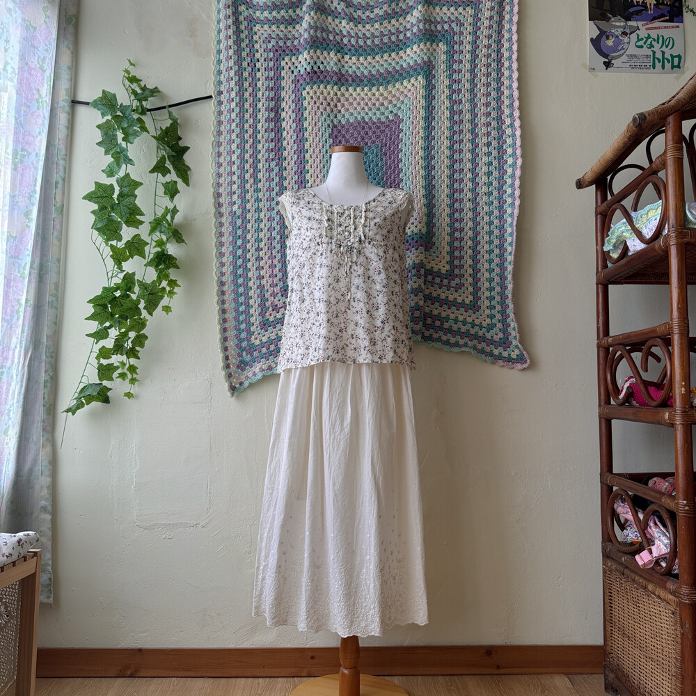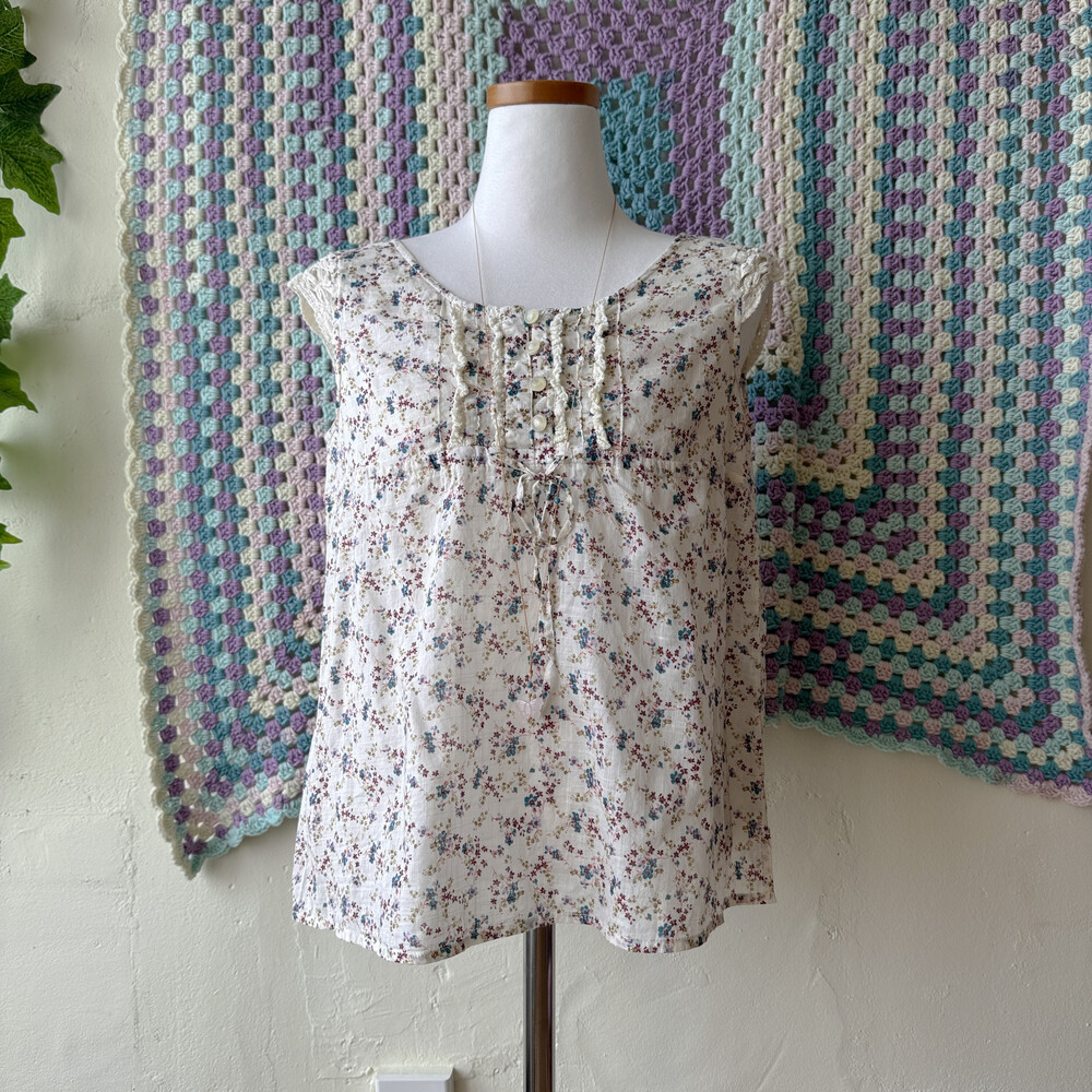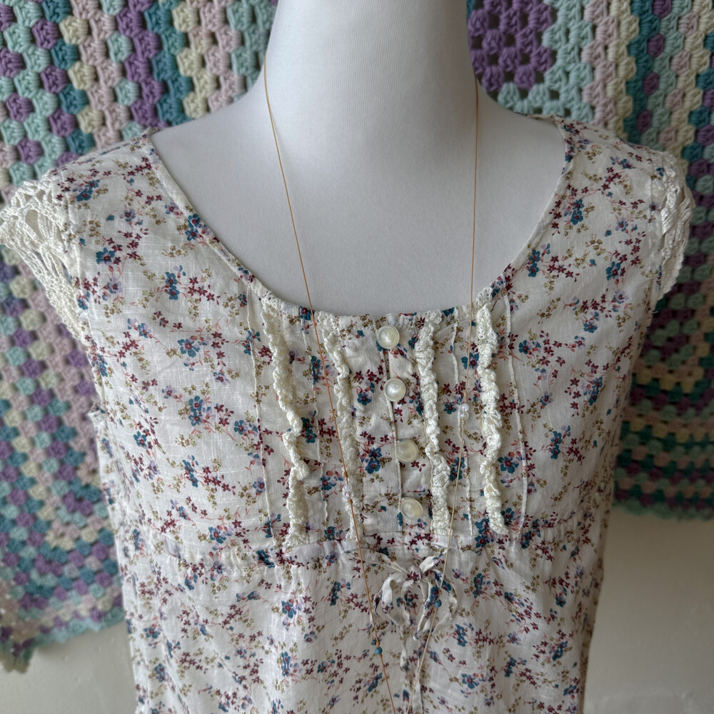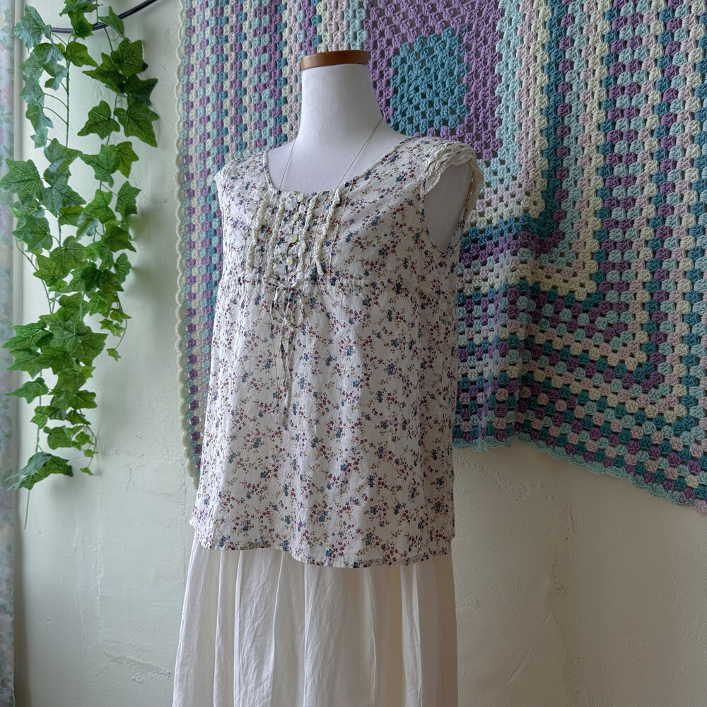 레이스 핀턱 포인트의 꽃무늬 블라우스예요