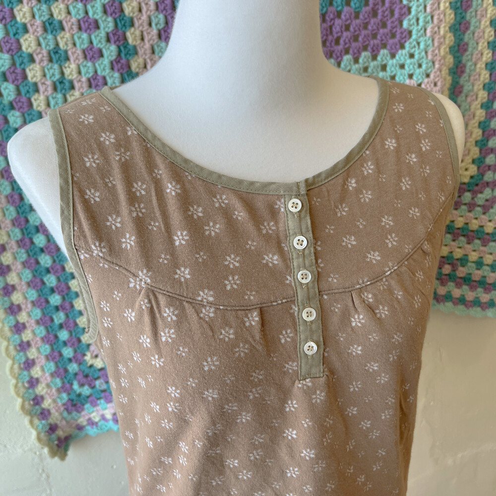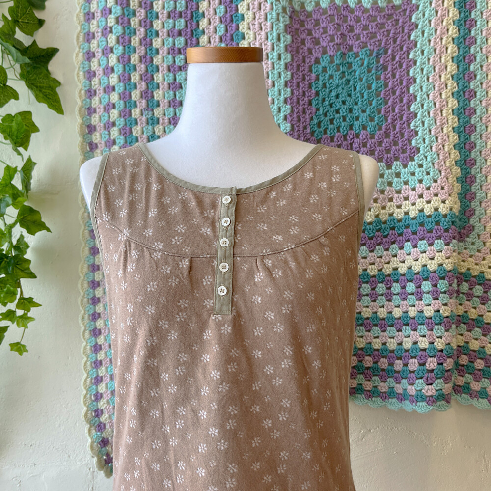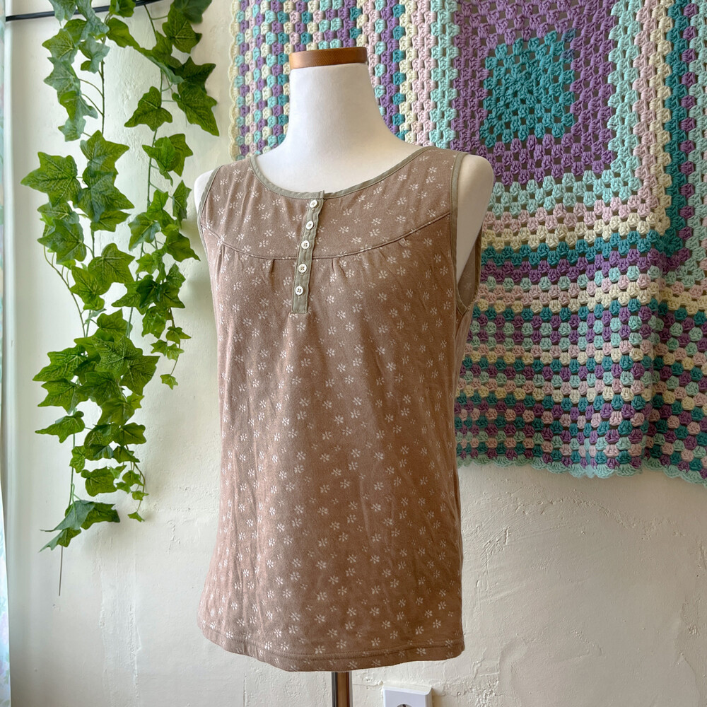 brown flower button khaki line inner top