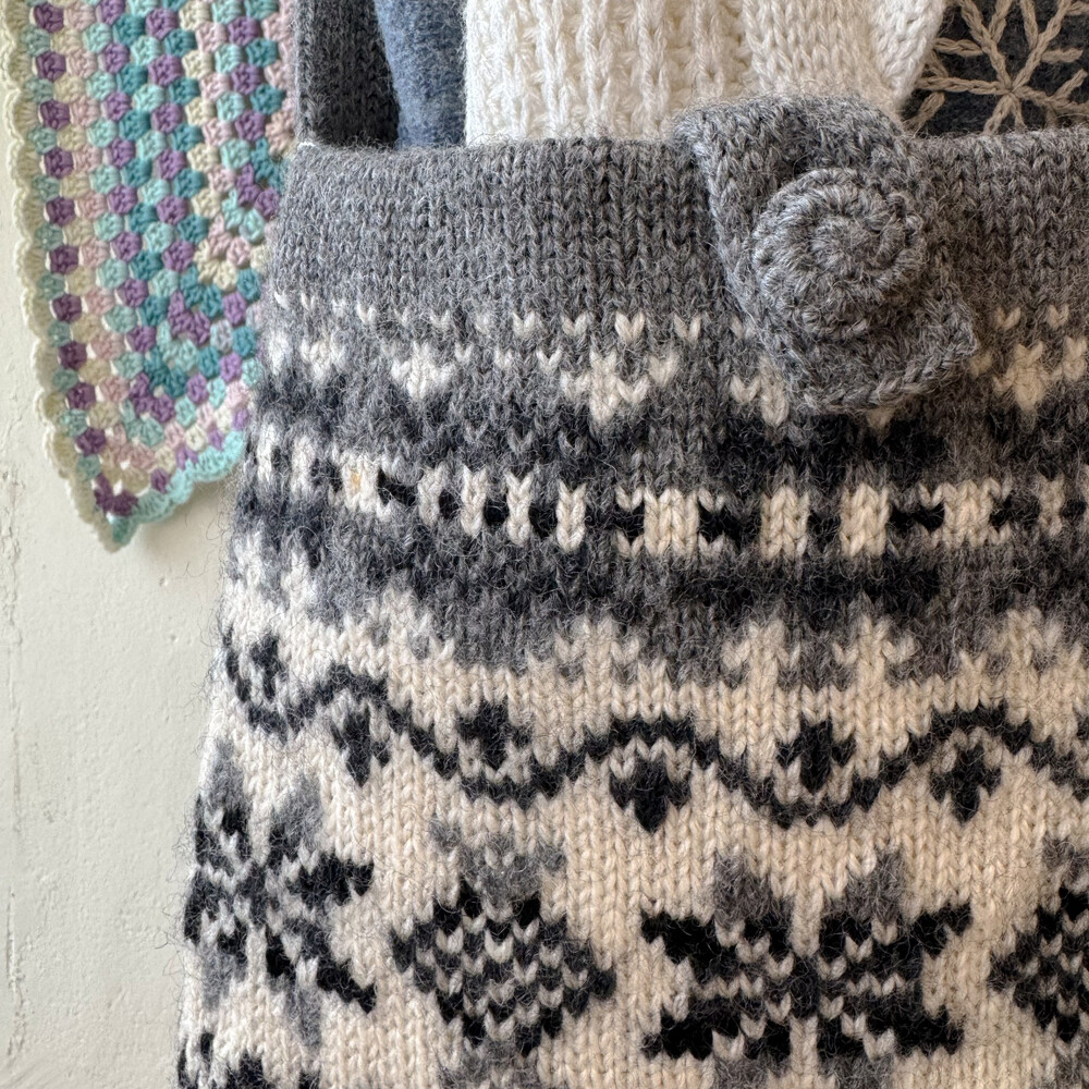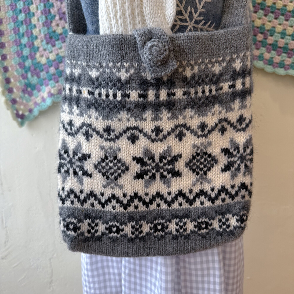 dark gray nordic knit cross bag