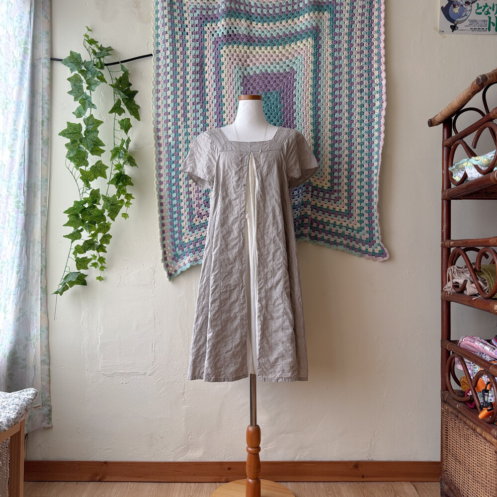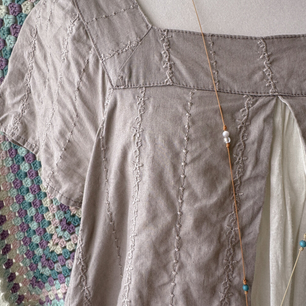 아주 연한 팥죽색의 자수 원피스예요