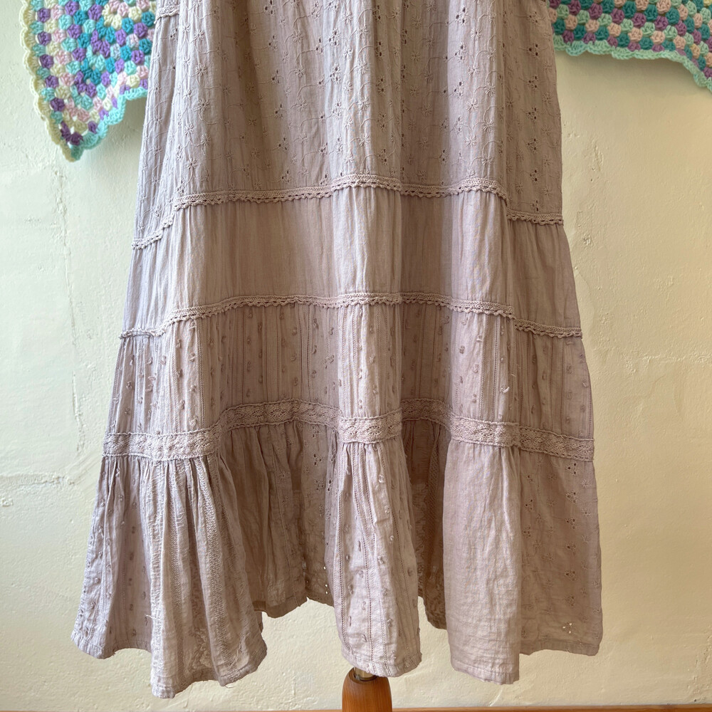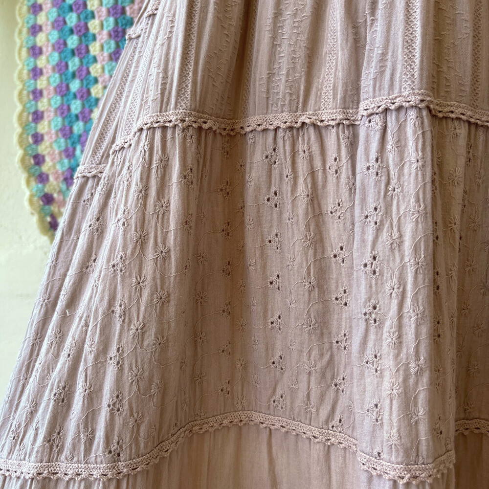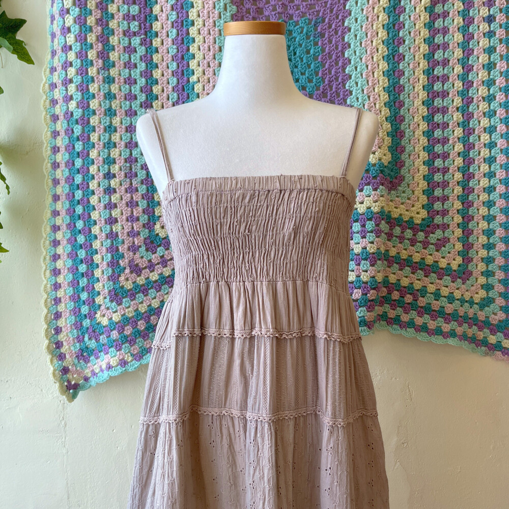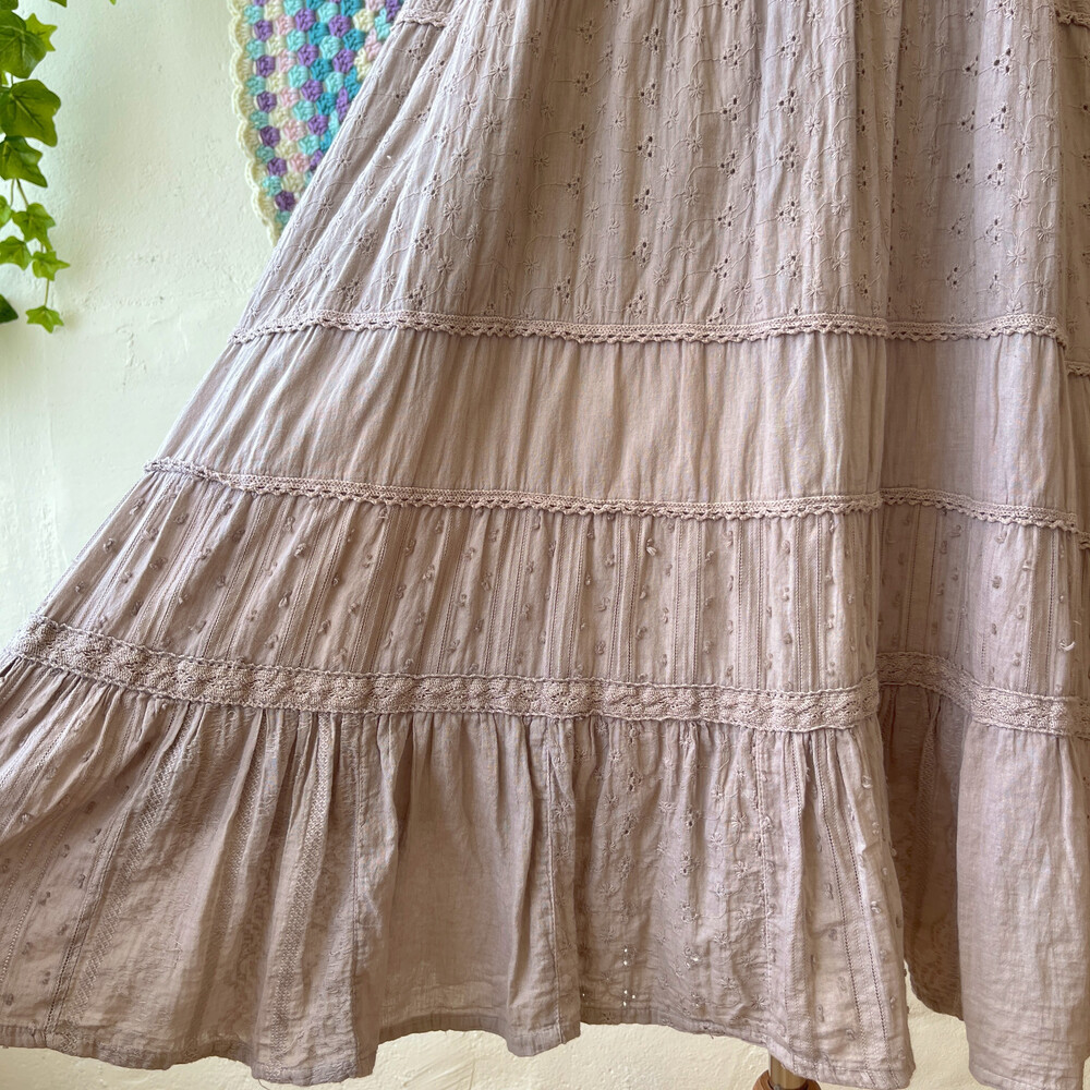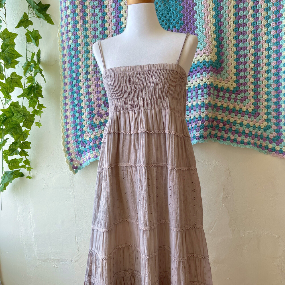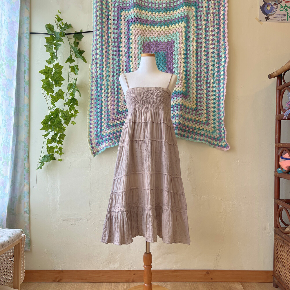 팥죽 브라운 색감의 코튼 패치 끈원피스예요