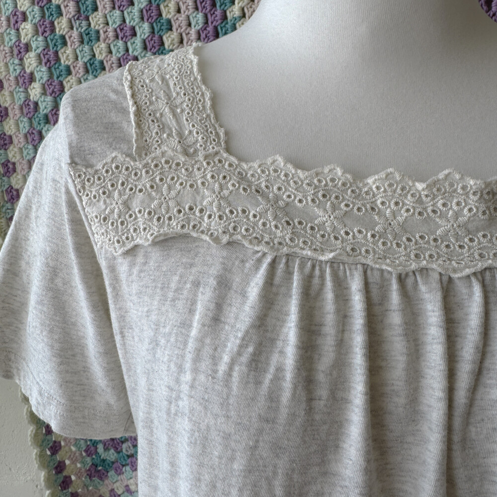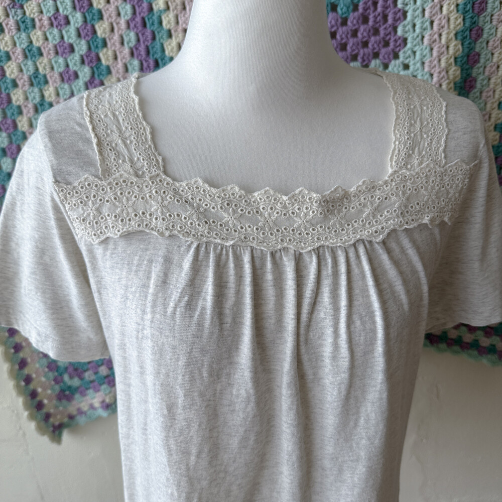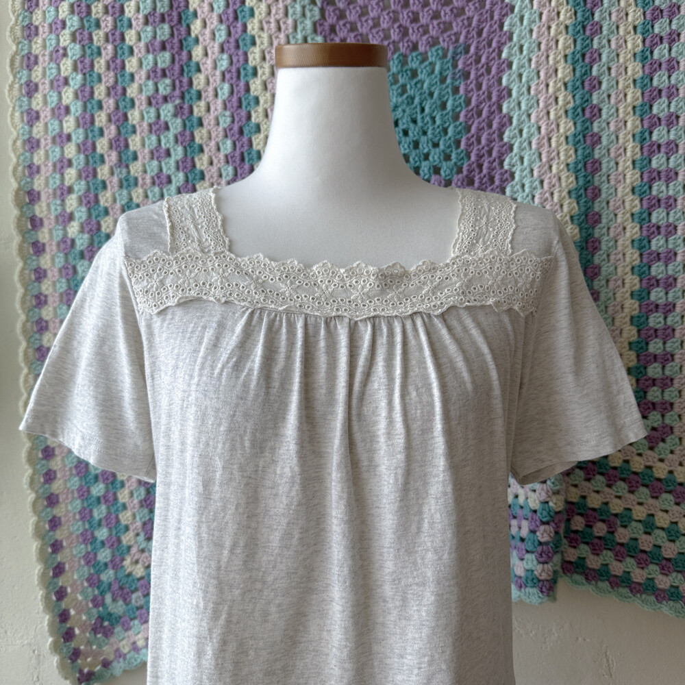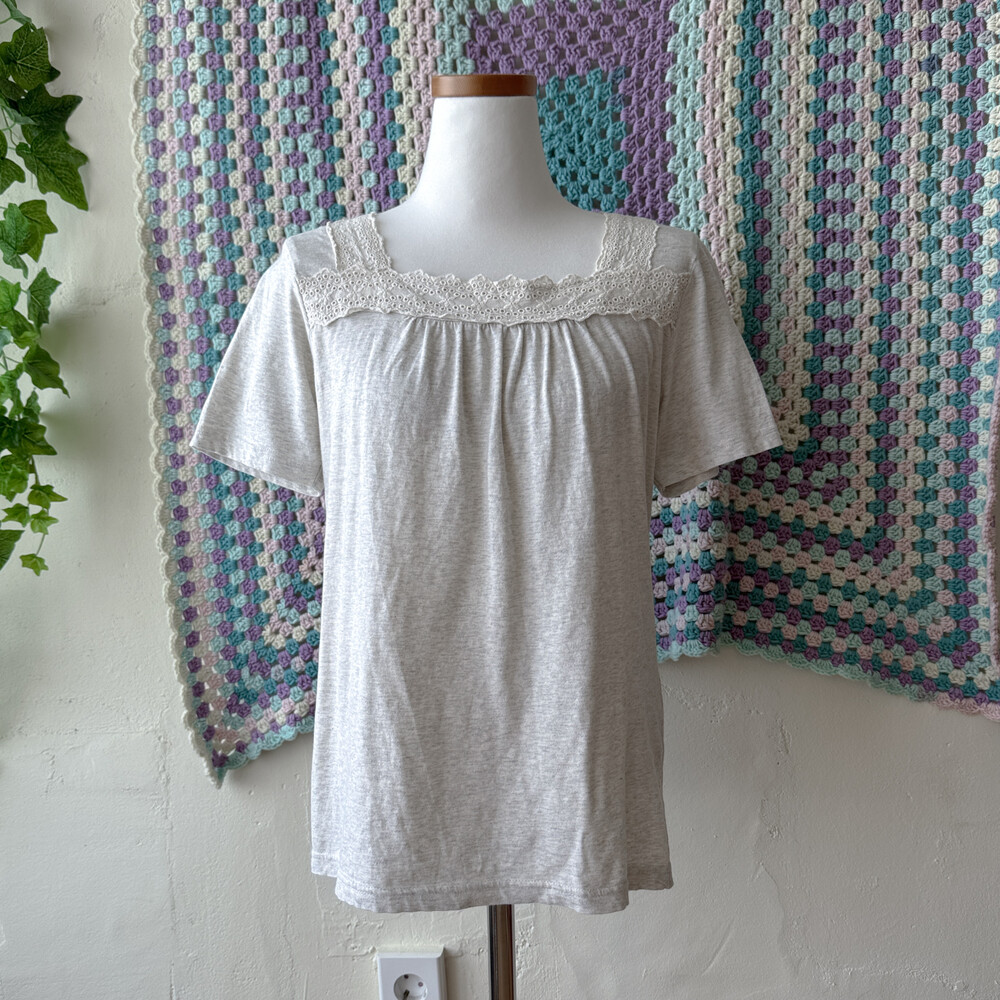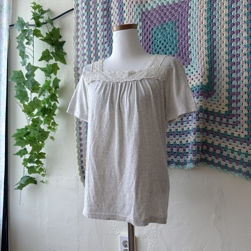 밝은 오트밀 색감의 반소매 티셔츠예요