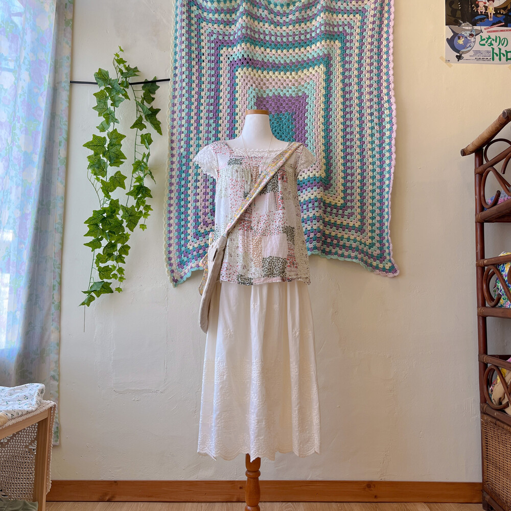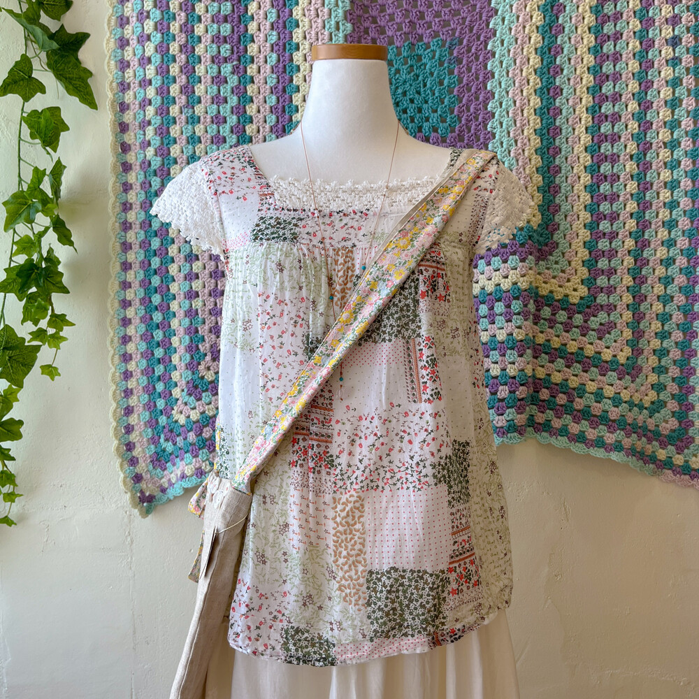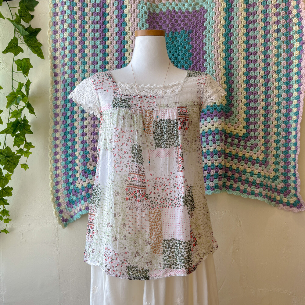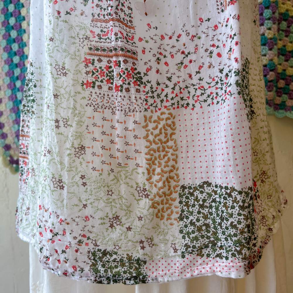 그리너리한 색감의 잔꽃 코튼 블라우스예요