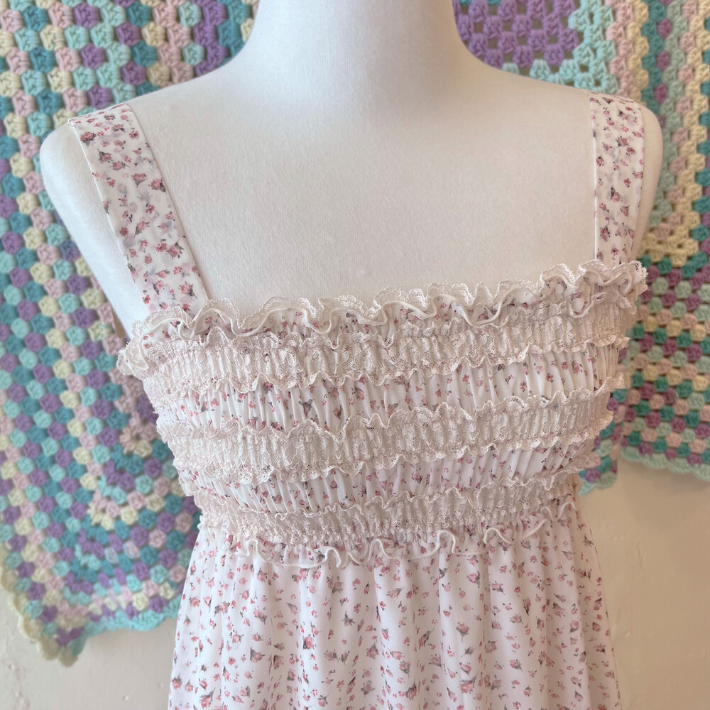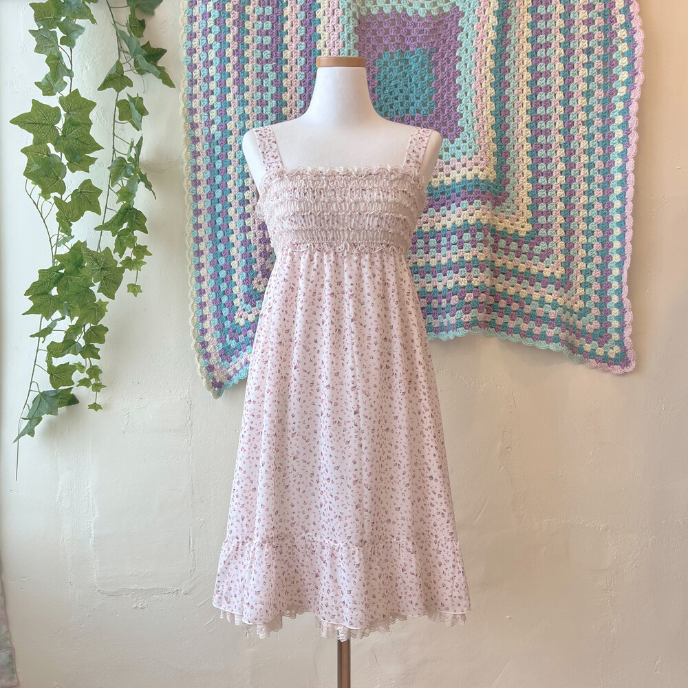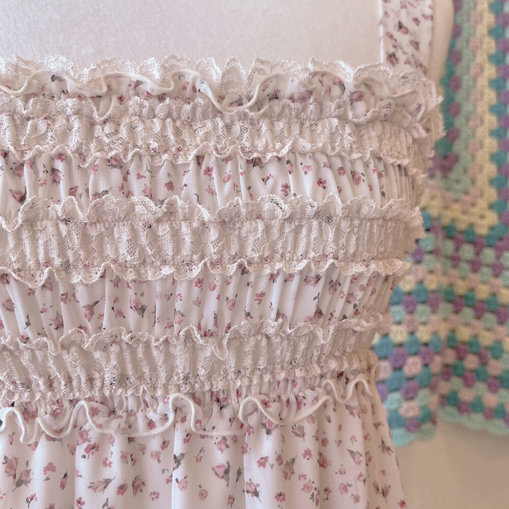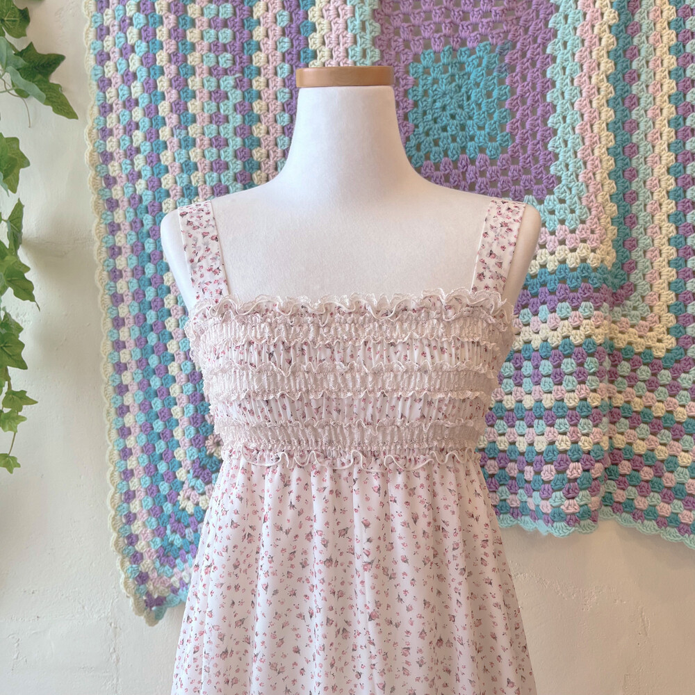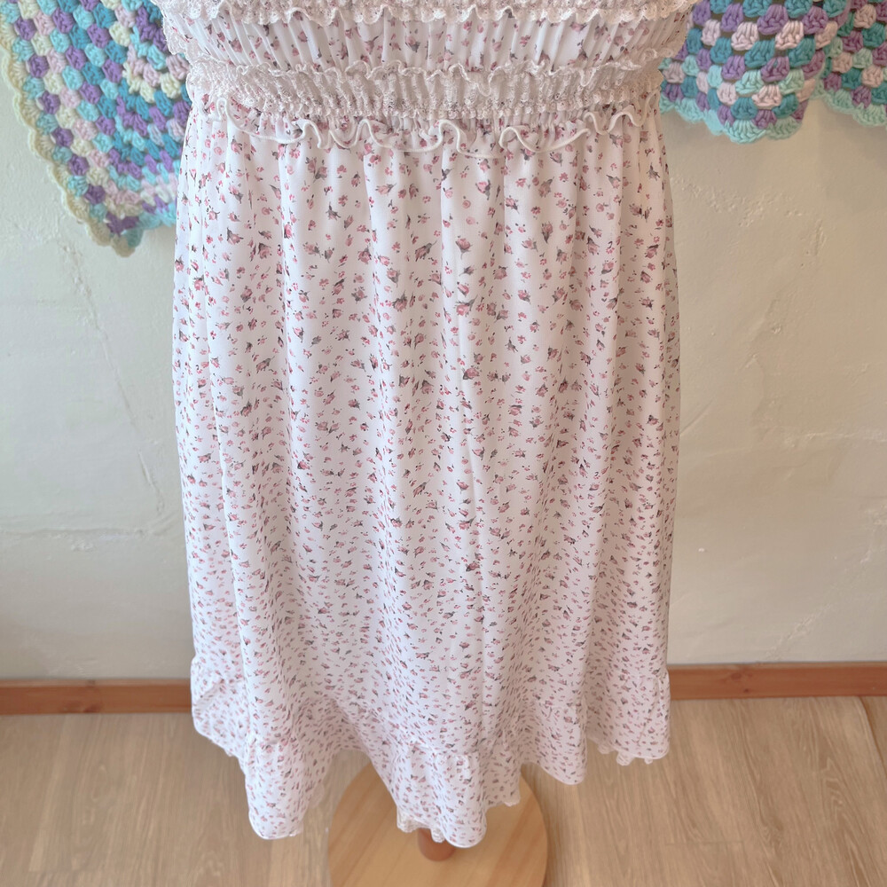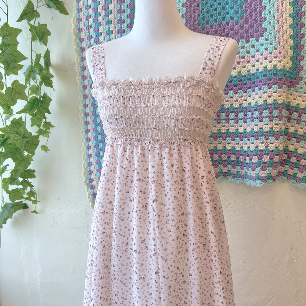 분홍 잔꽃 패턴의 쉬폰 미니 원피스예요