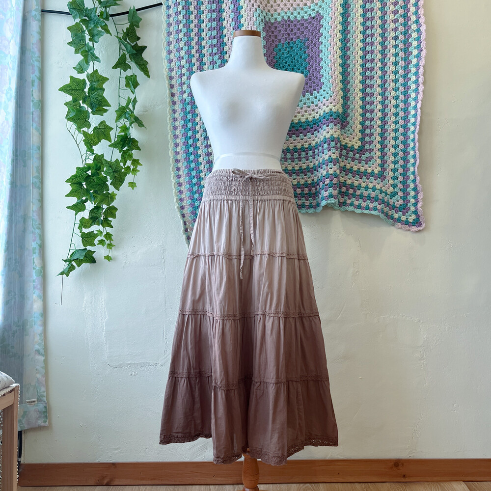 brown gradation lace tiered sk