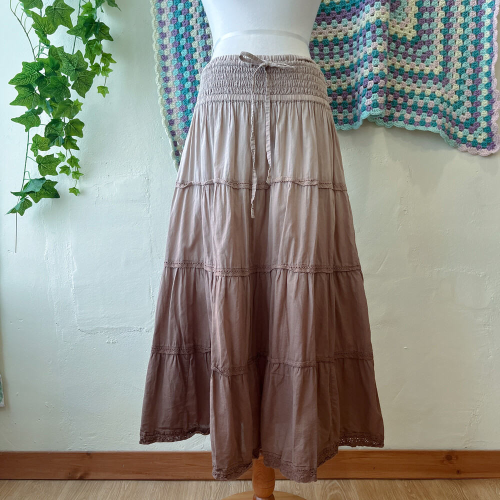 브라운 색감의 그라데이션 코튼 스커트예요