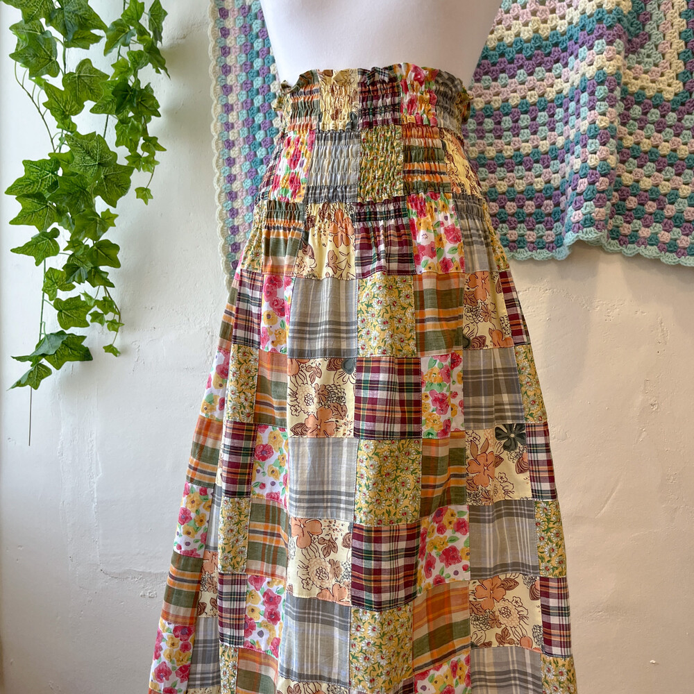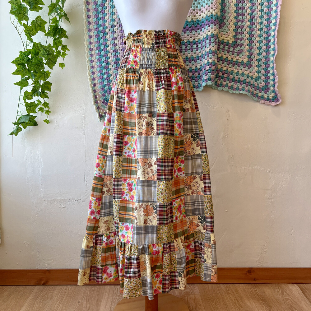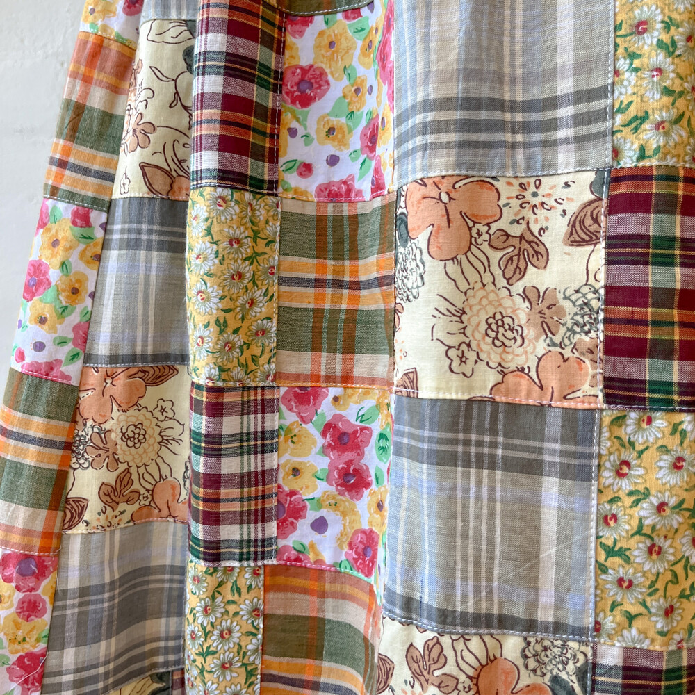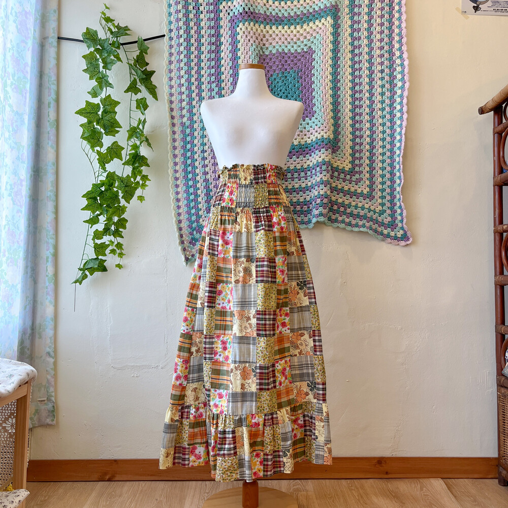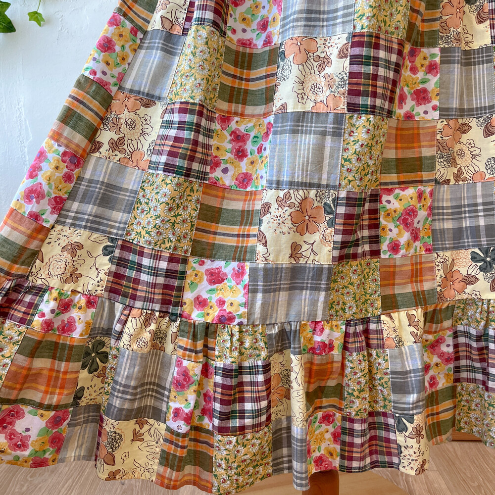 오렌지 색감 베이스의 패치워크 스커트예요