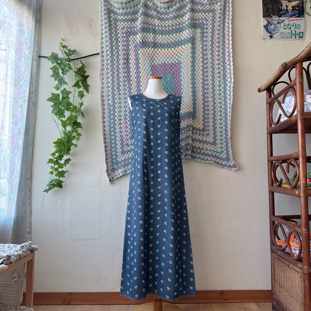 denim flower sleeveless long ops