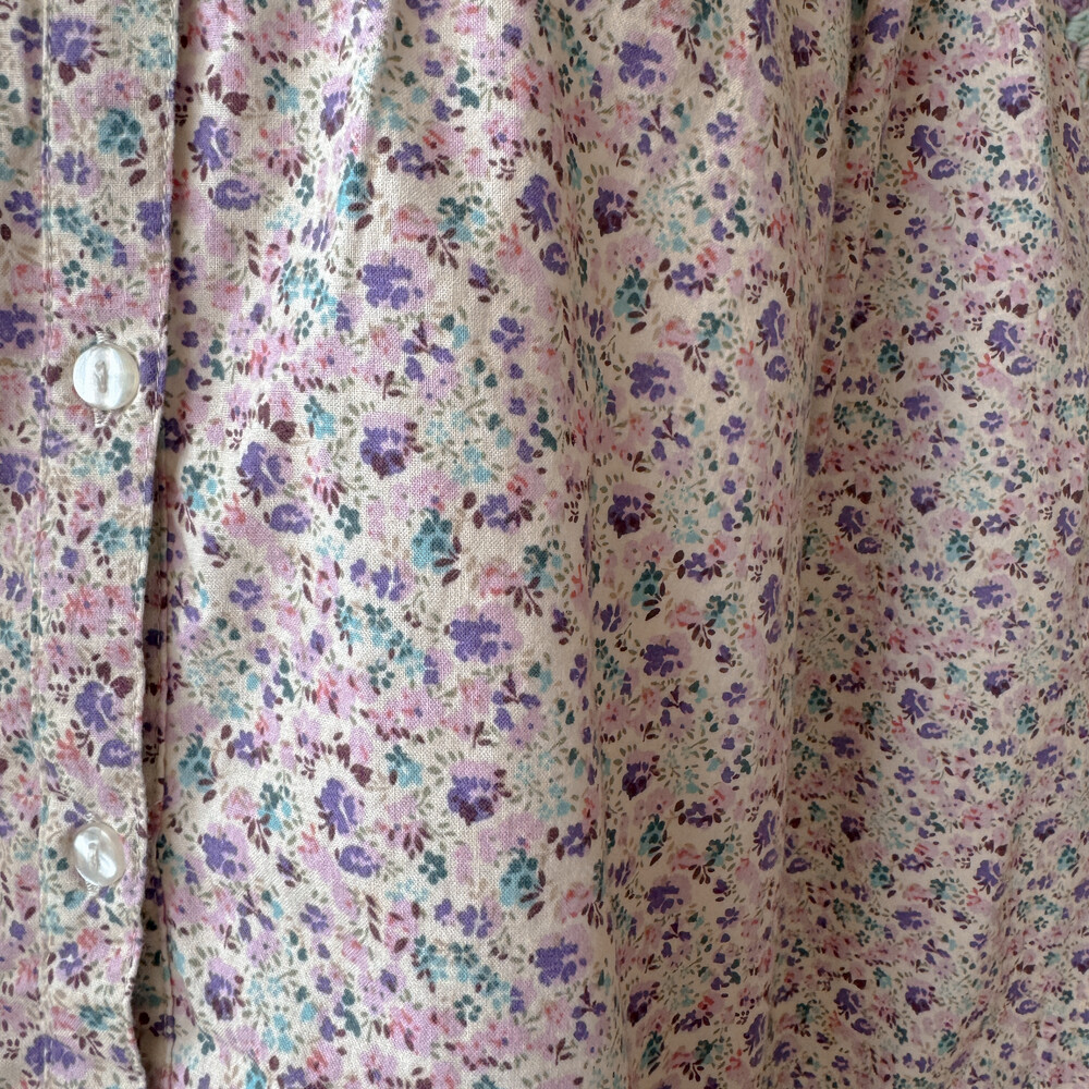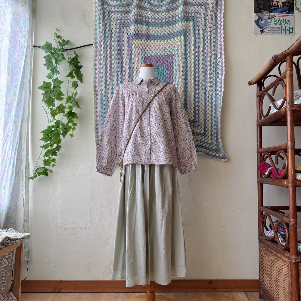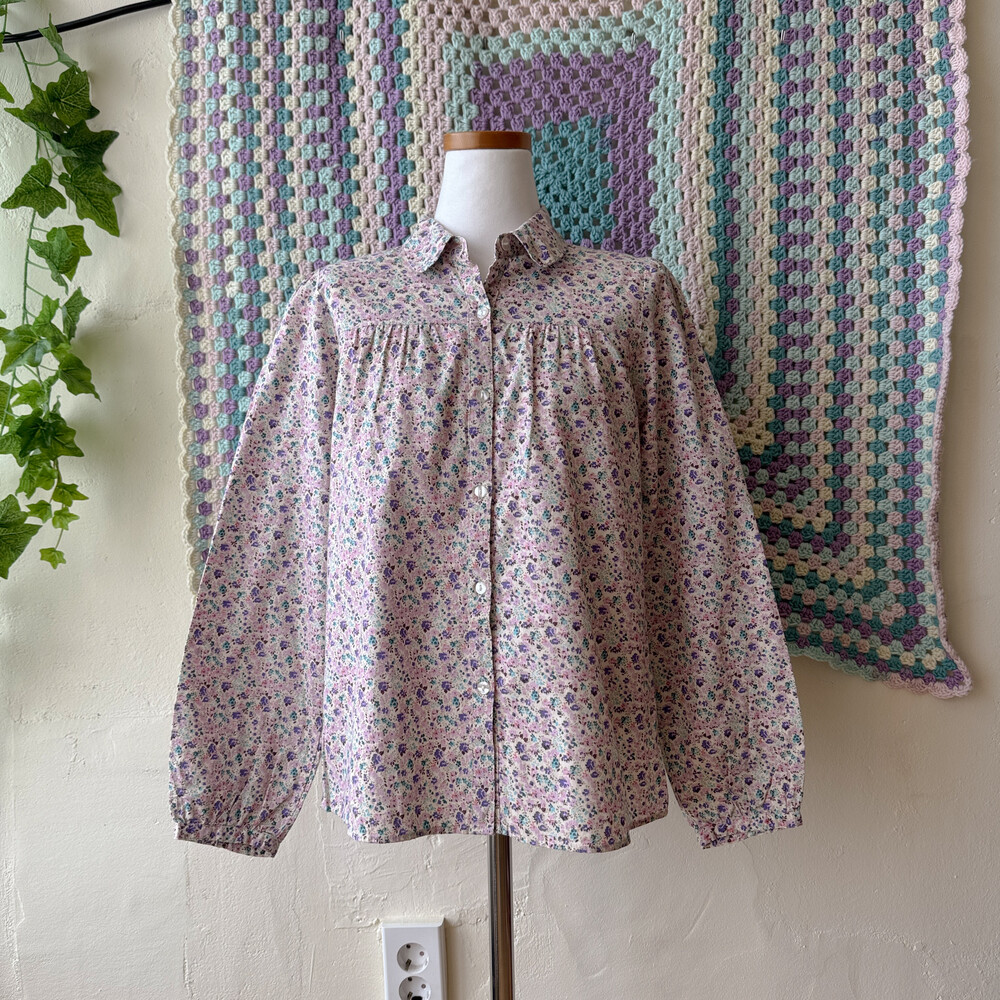 퍼플, 핑크 색감의 꽃무늬 카라 셔츠예요