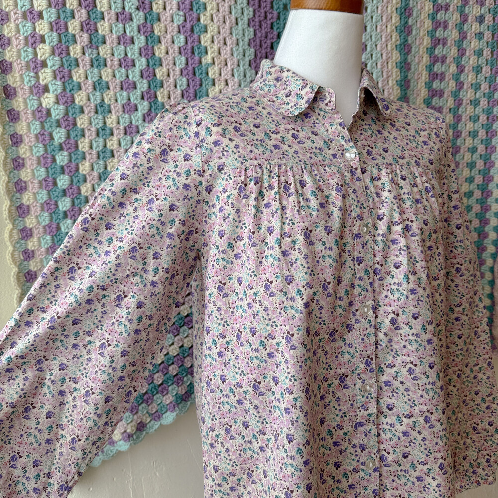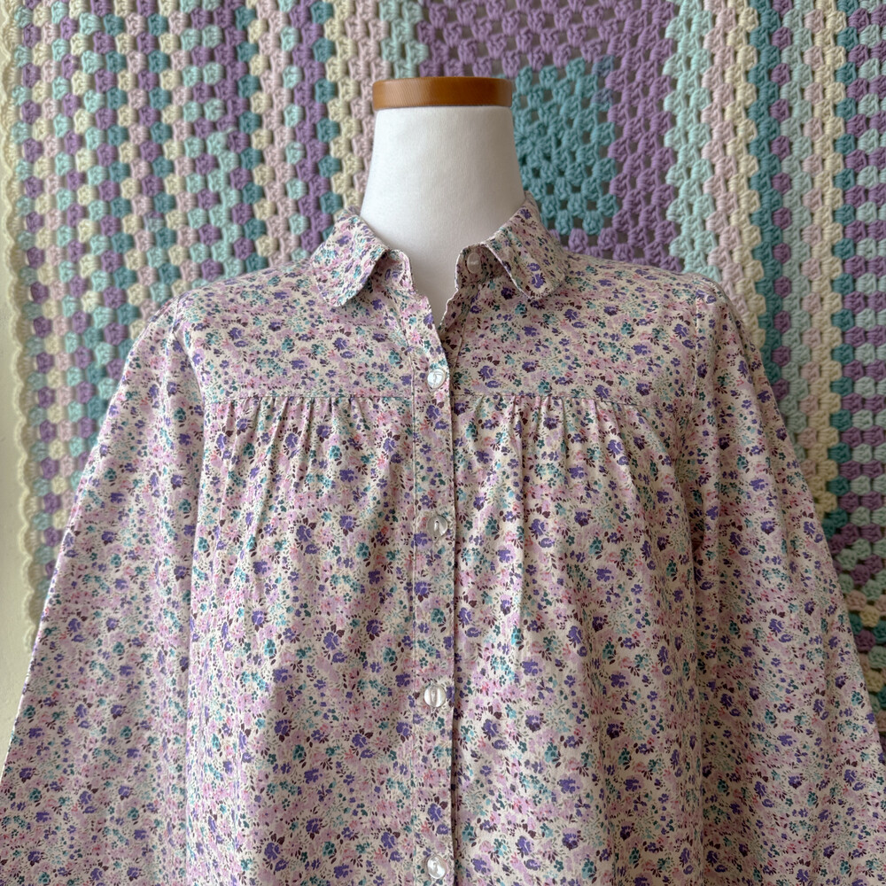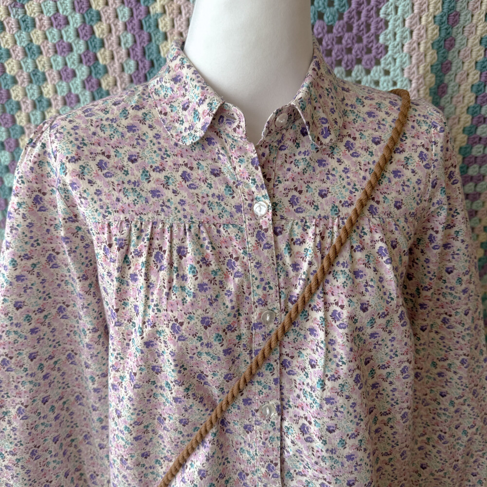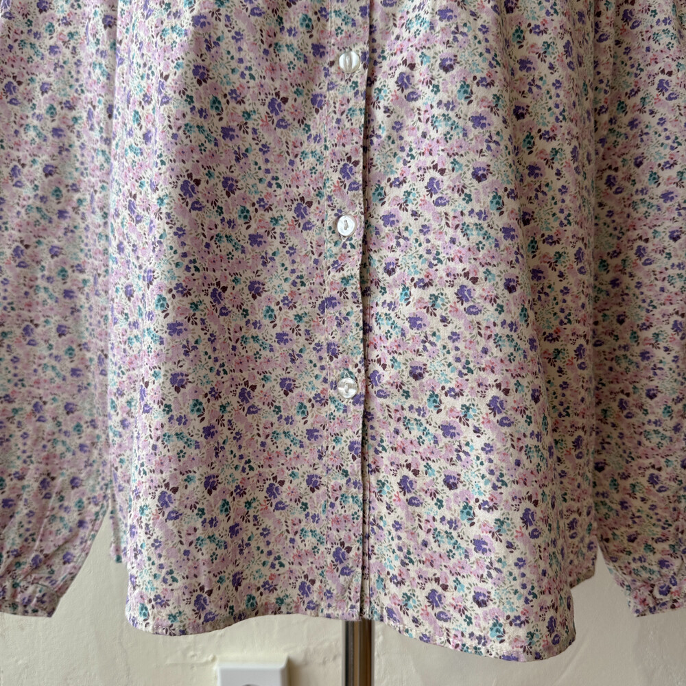 퍼플, 핑크 색감의 꽃무늬 카라 셔츠예요