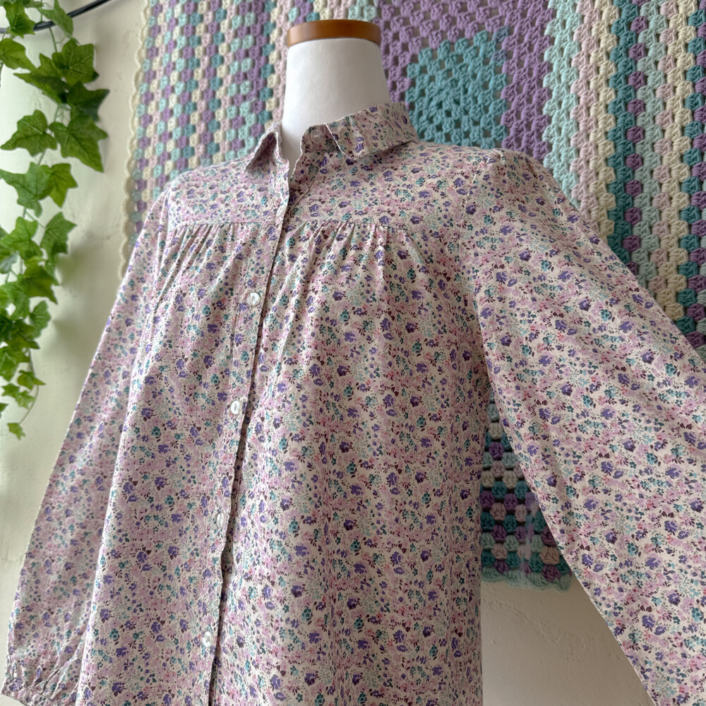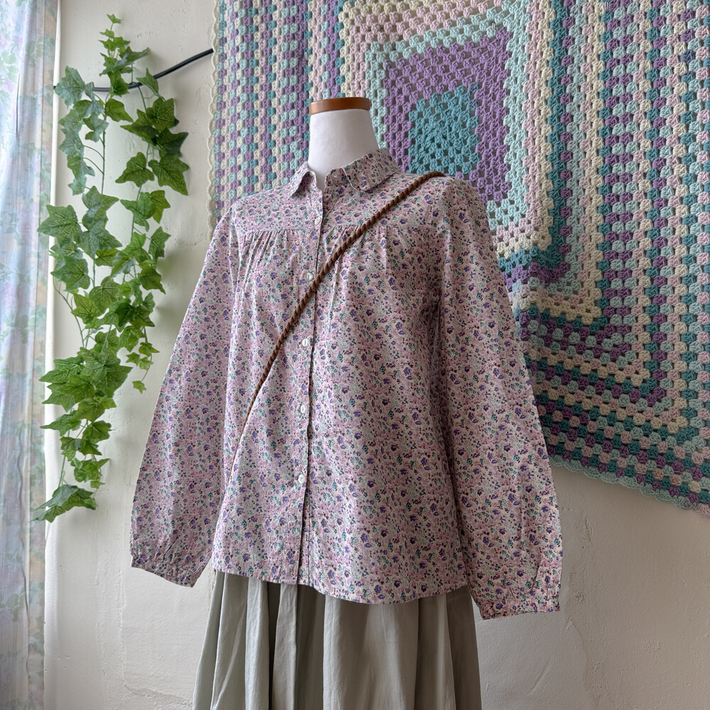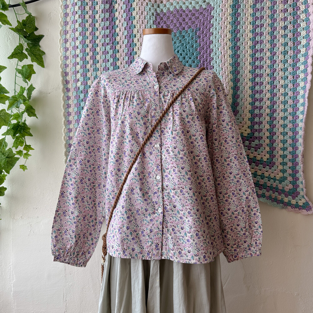 purple&pink flower collar shirt