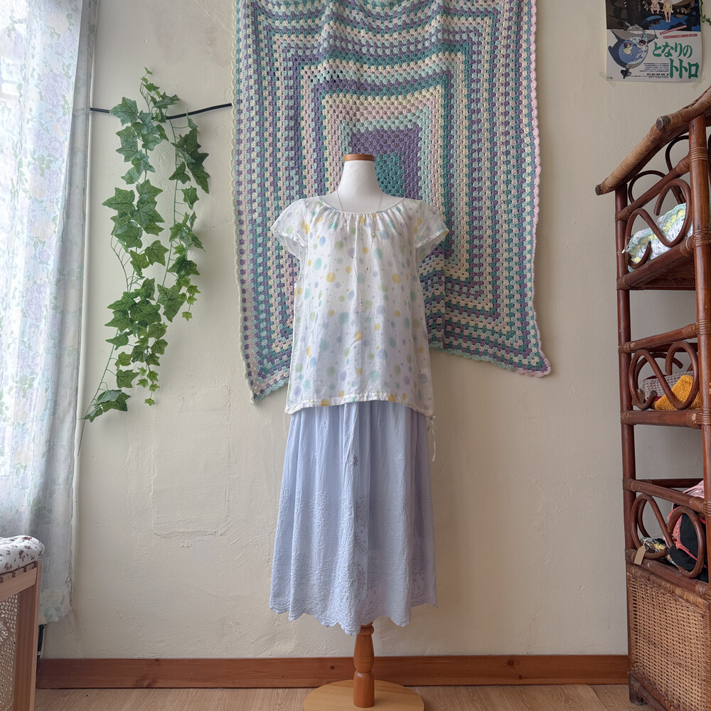 파스텔 비눗방울 패턴의 코튼 블라우스예요