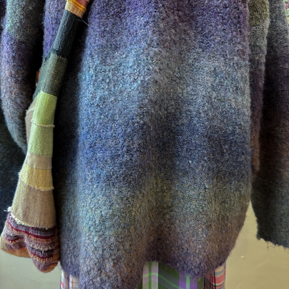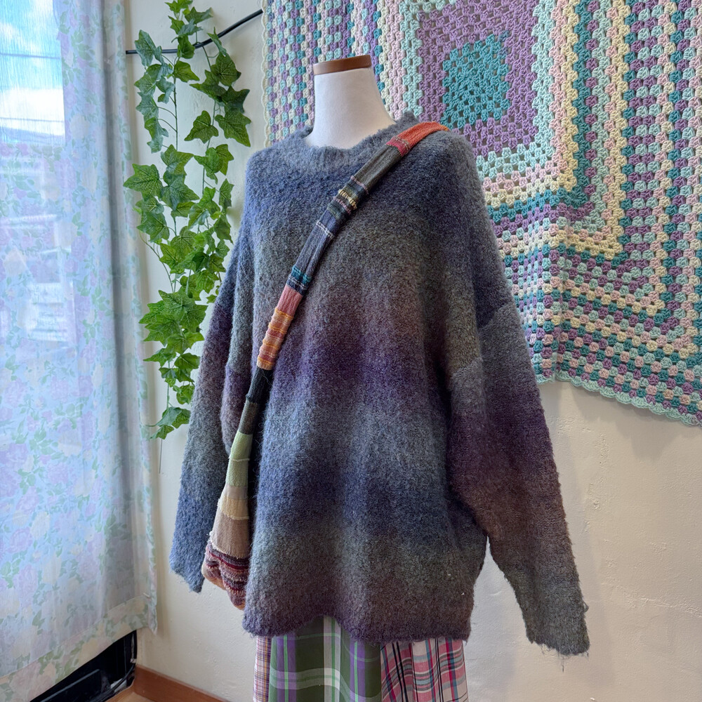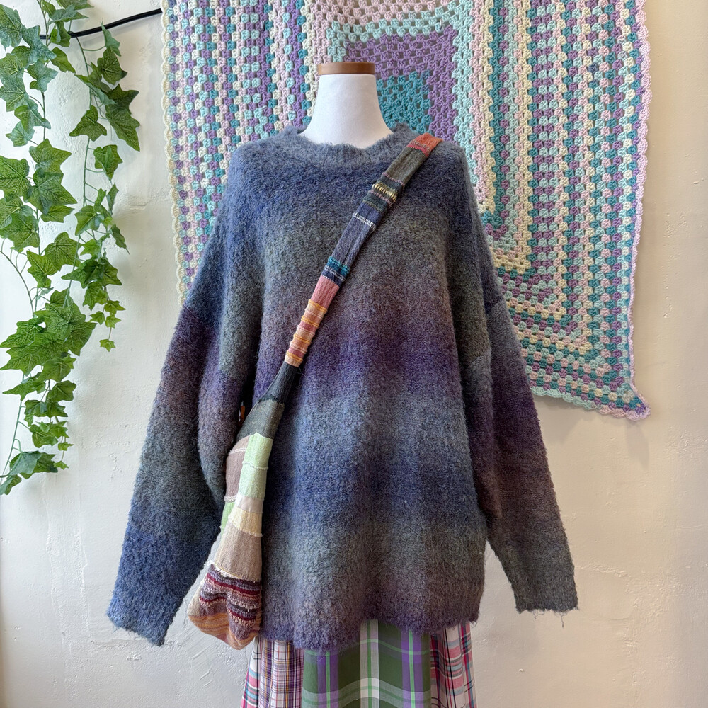퍼플, 블루 등의 색감이 섞인 그라데이션 니트예요