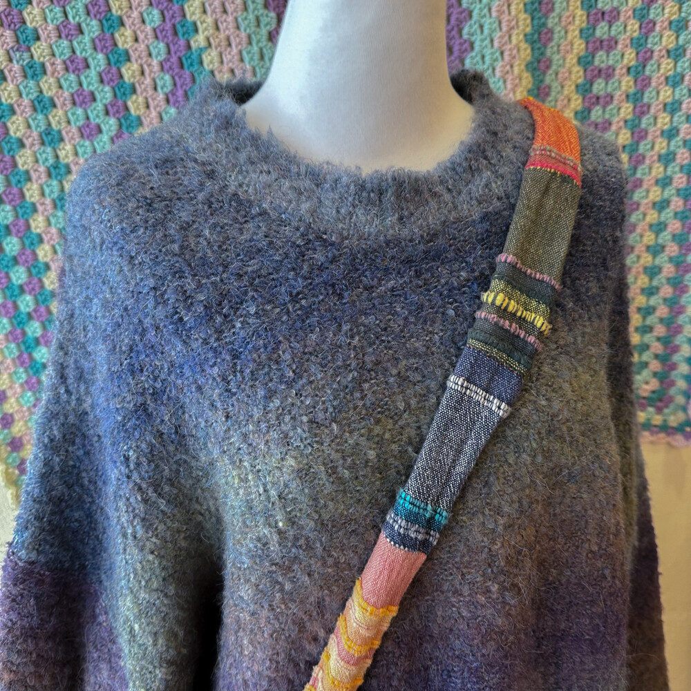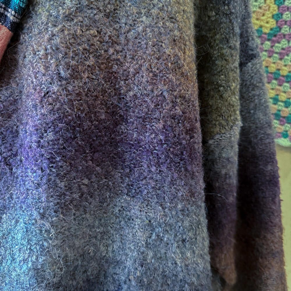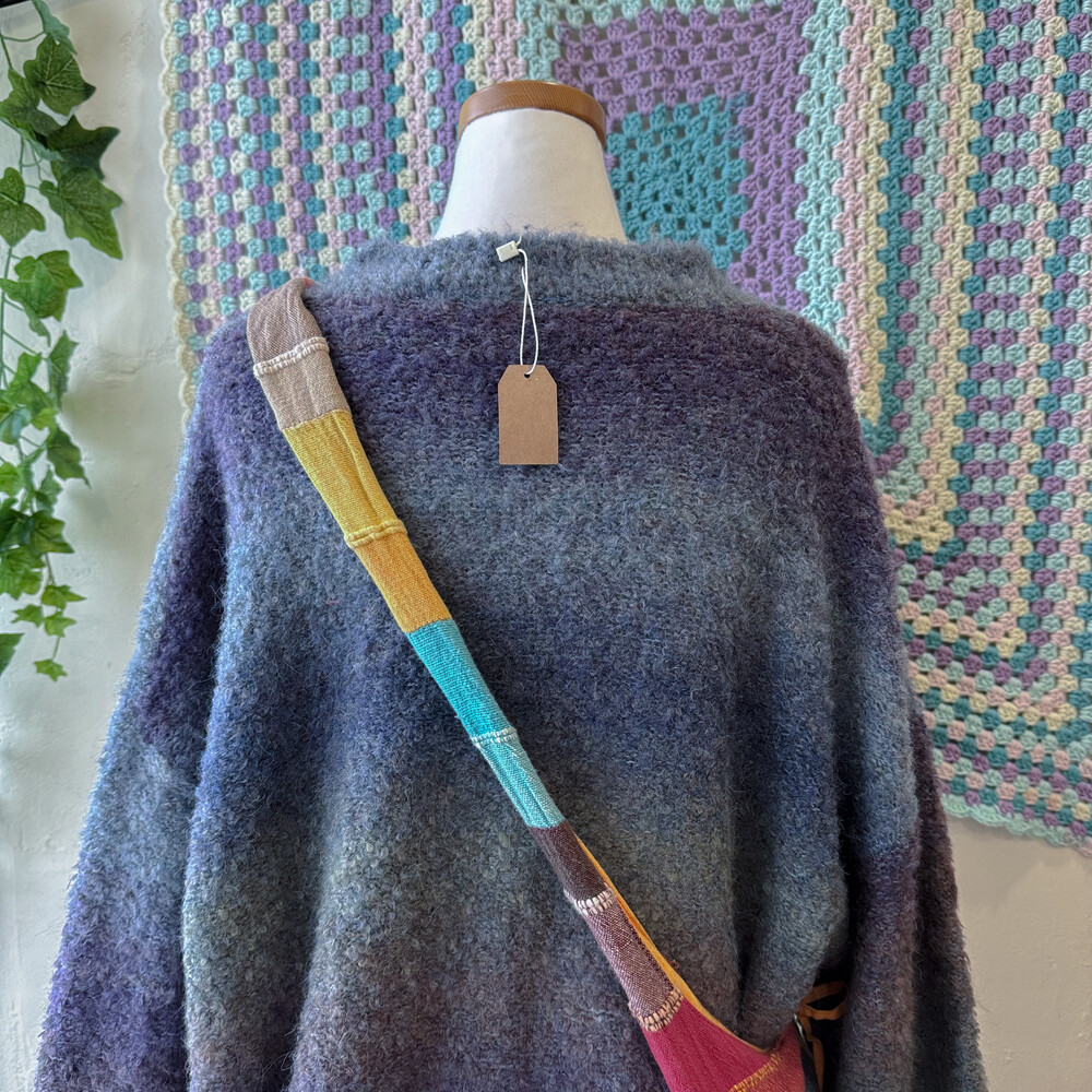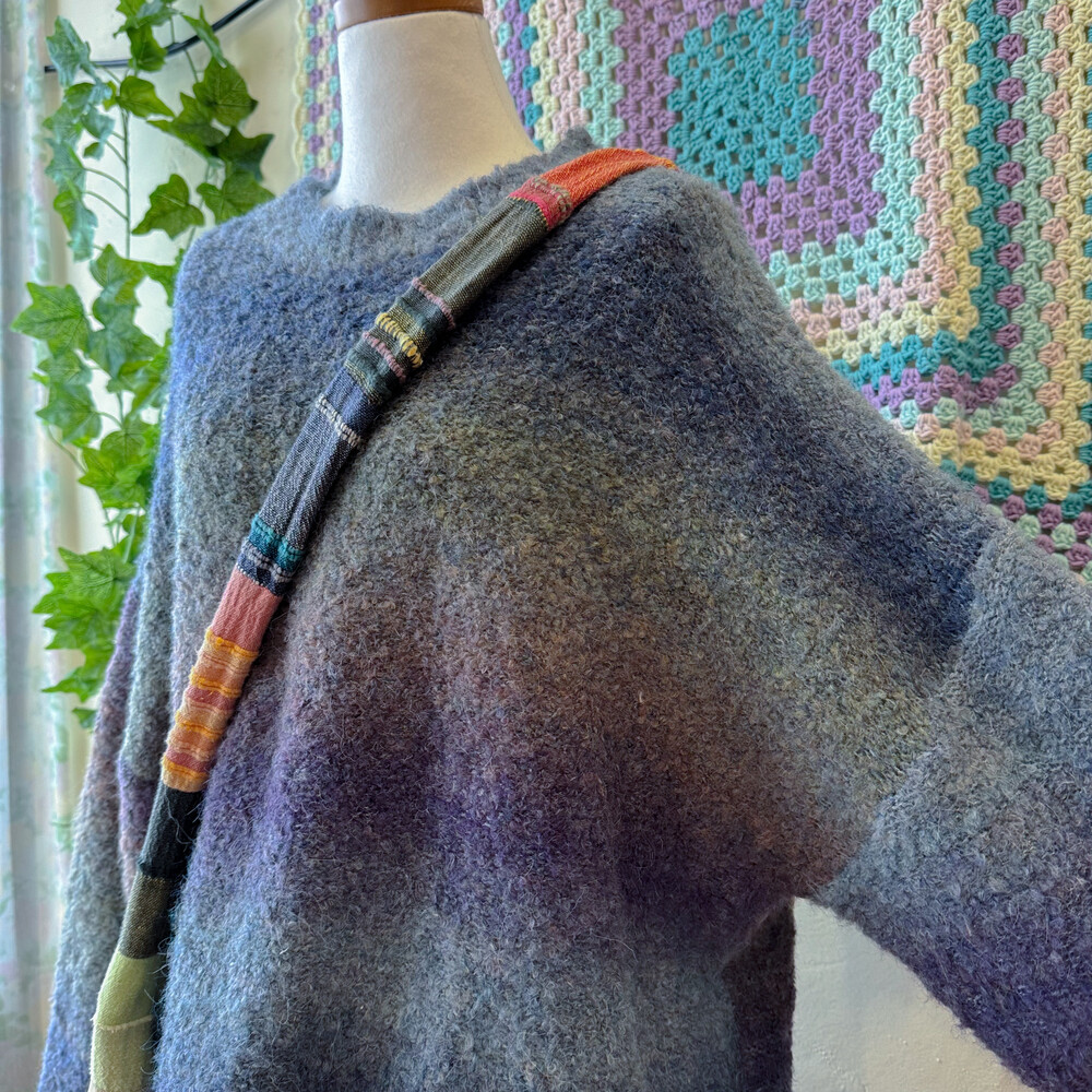 퍼플, 블루 등의 색감이 섞인 그라데이션 니트예요