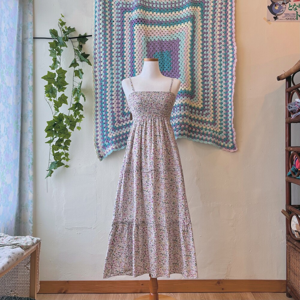 사랑스러운 색감의 잔꽃 코튼 끈원피스예요