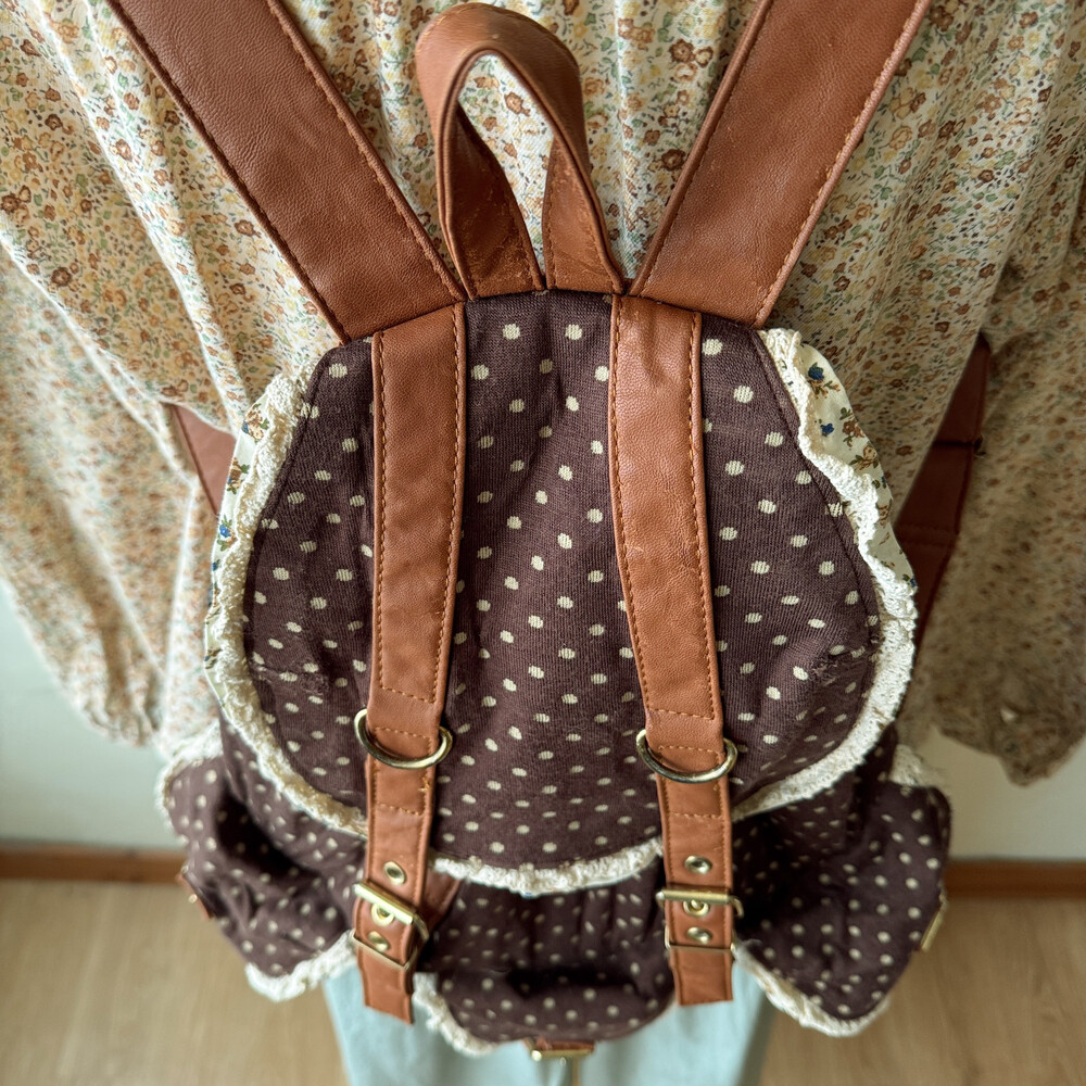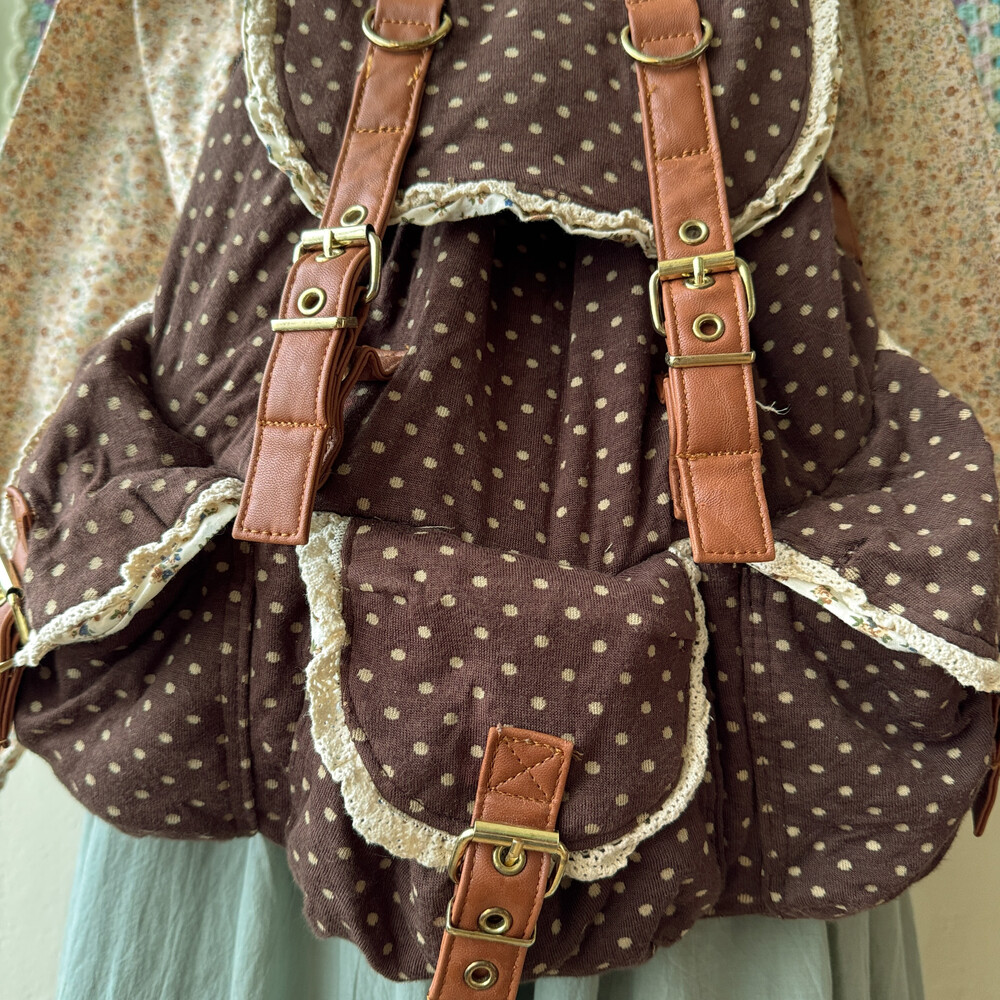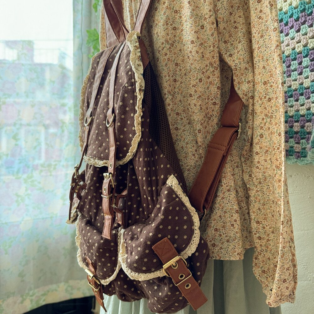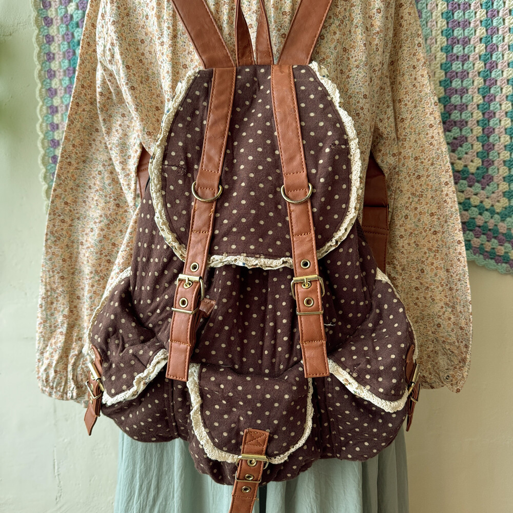 brown dot&lace point 3pocket backpack