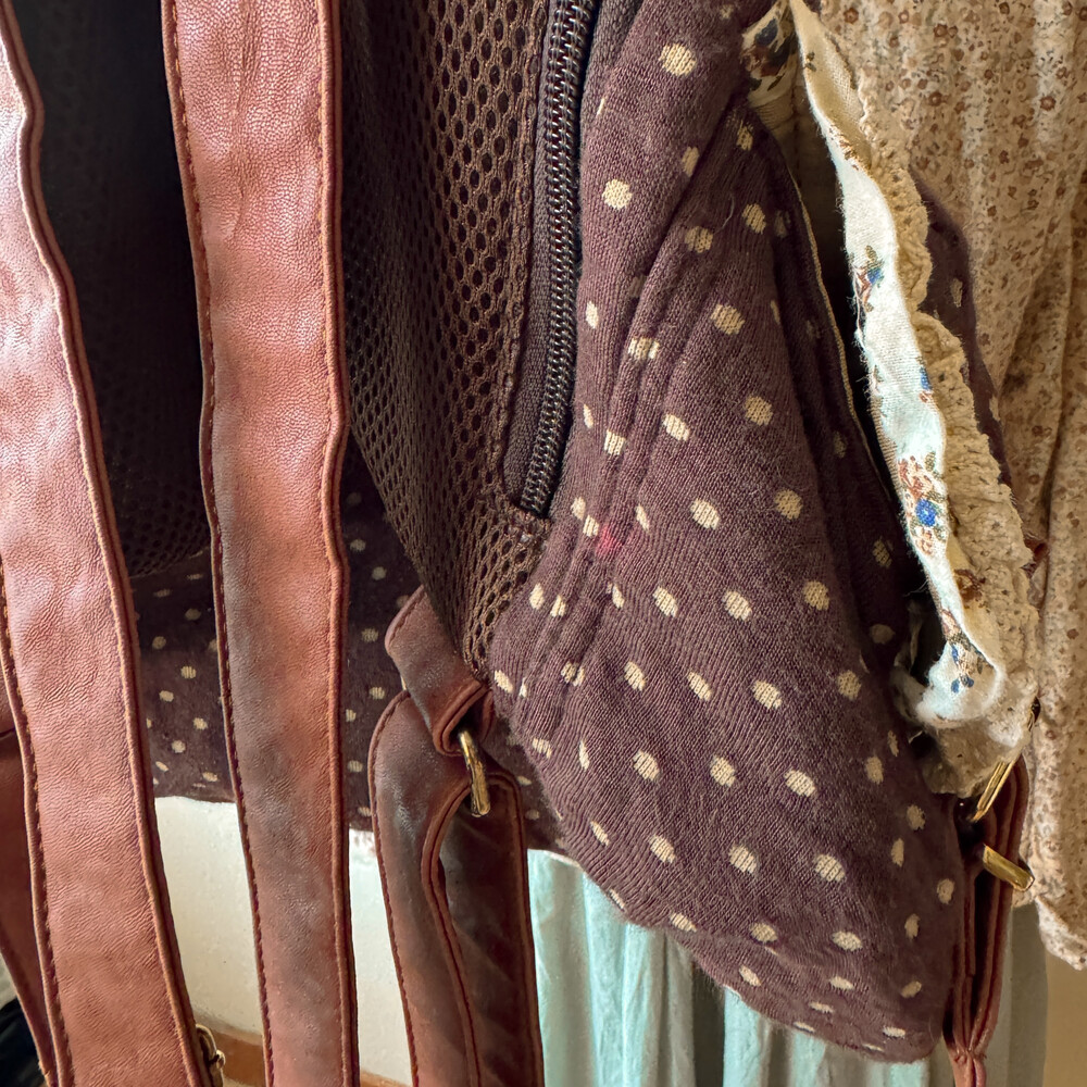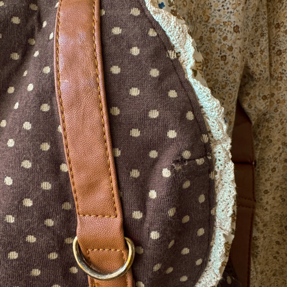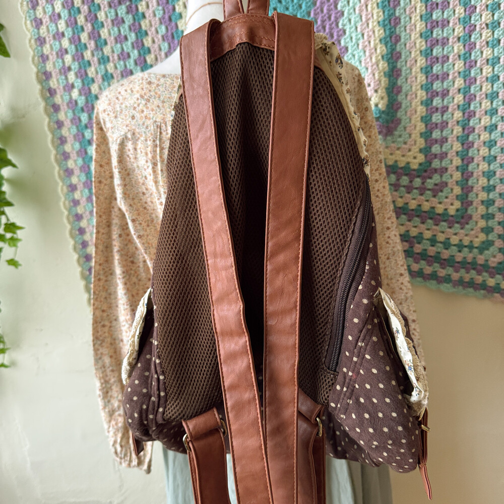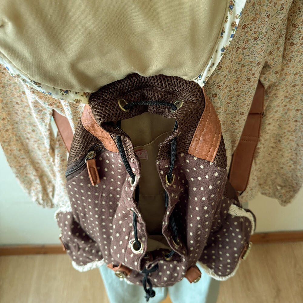 brown dot&lace point 3pocket backpack