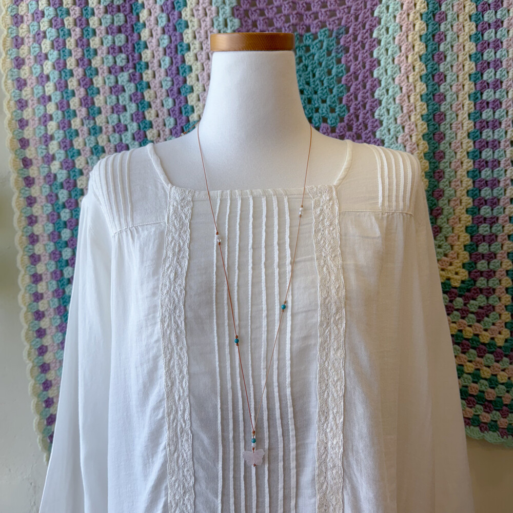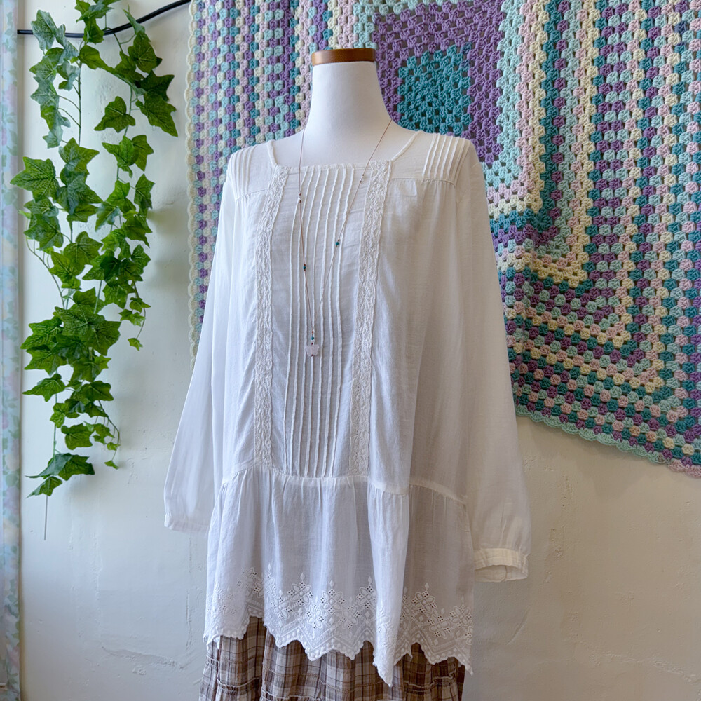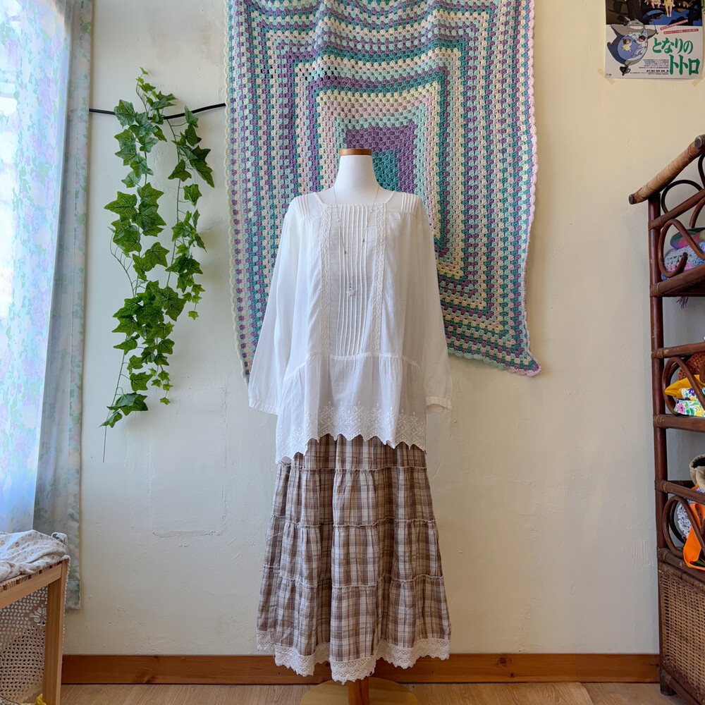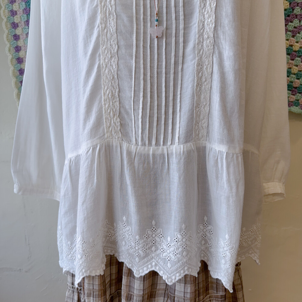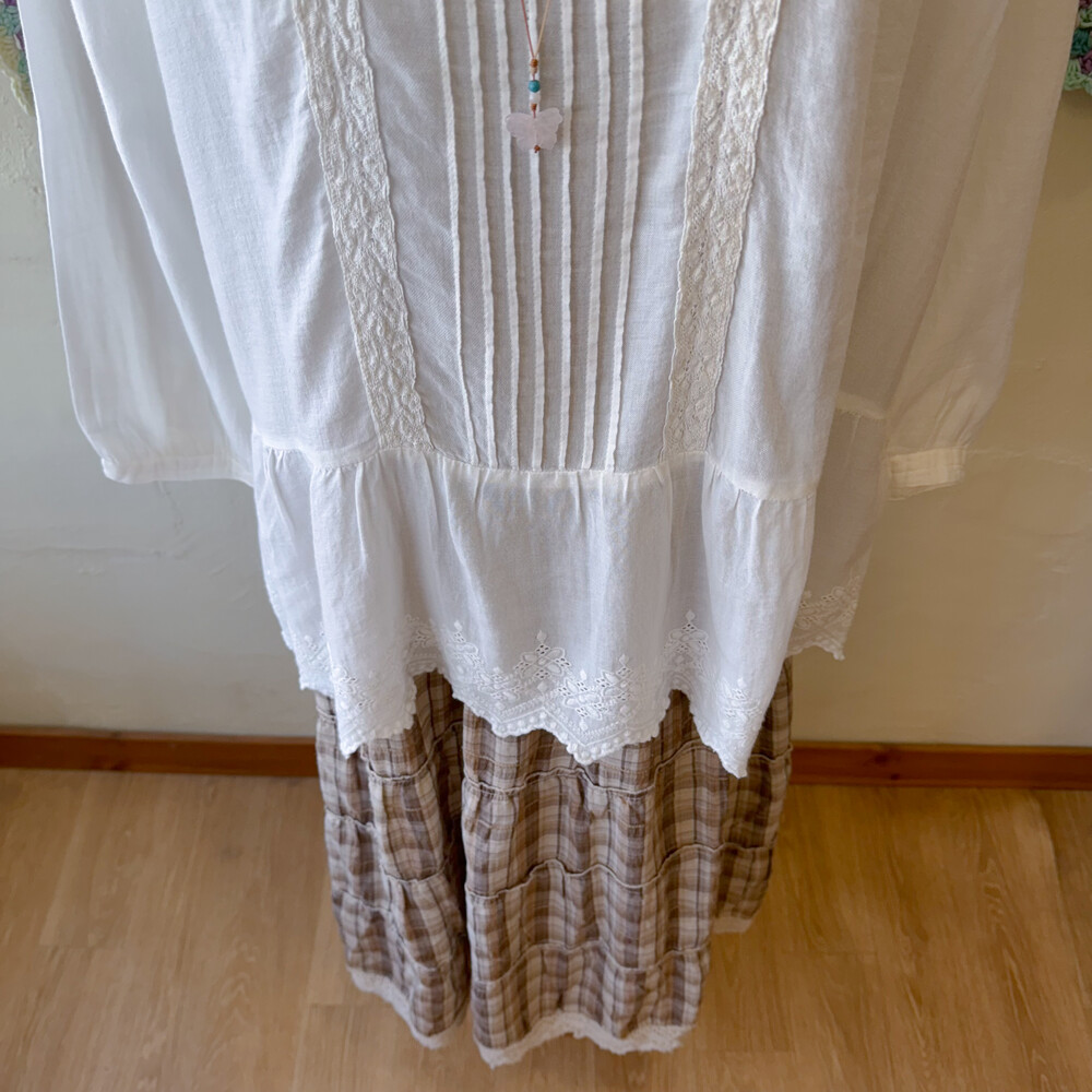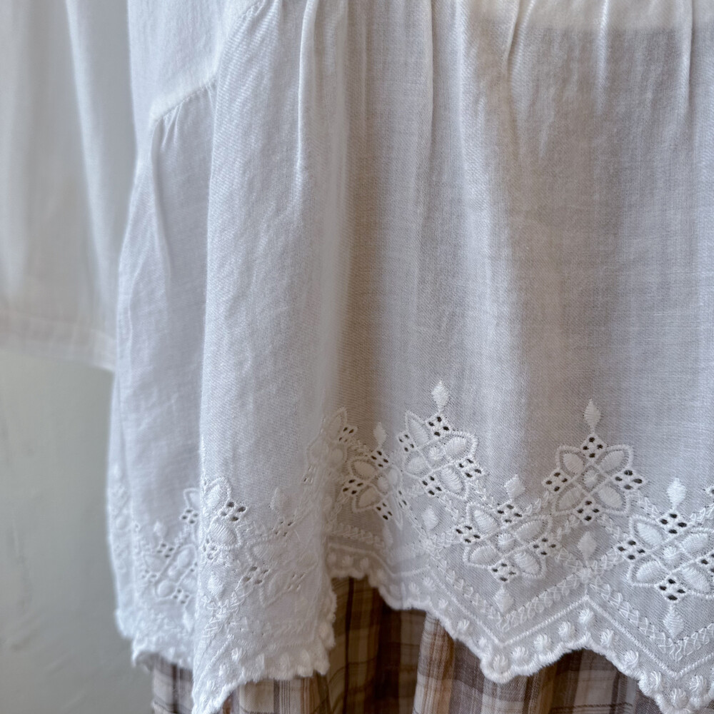 가슴 핀턱 디자인과 밑단 자수 포인트가 정말 사랑스러워요