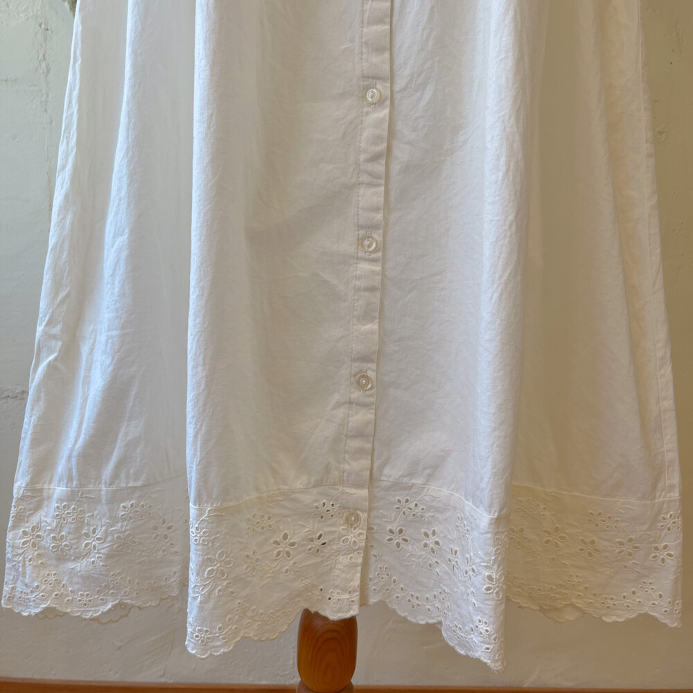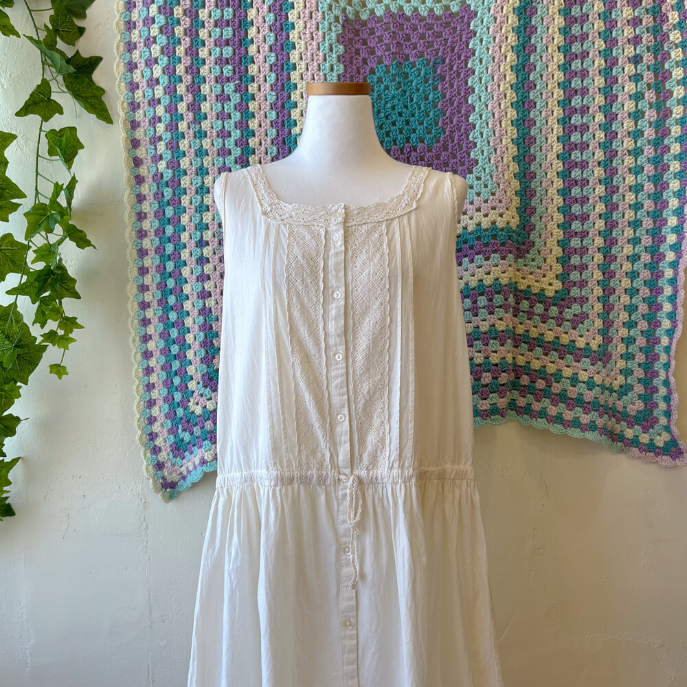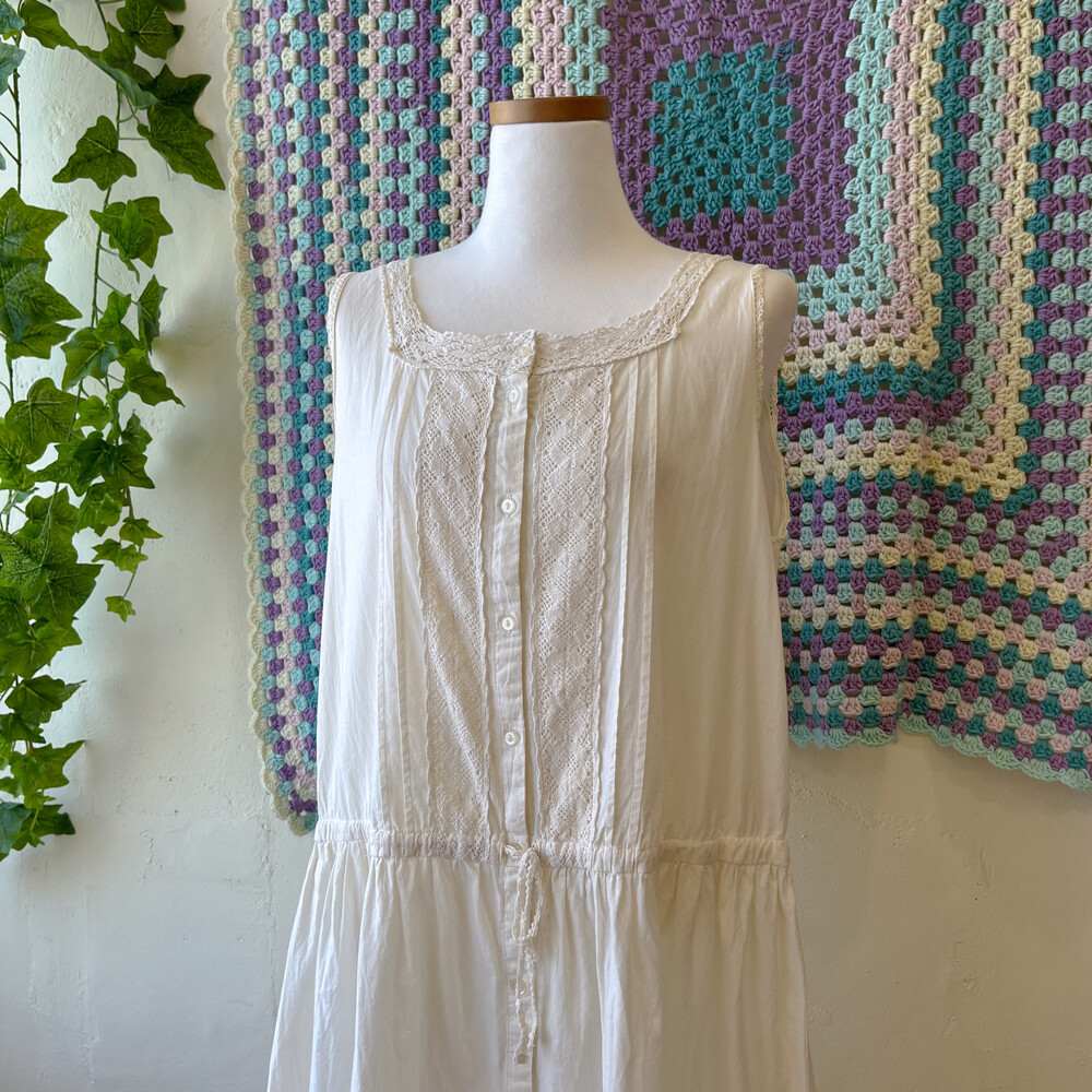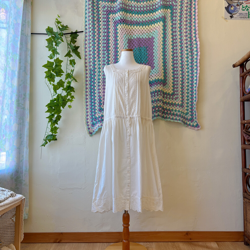 아이보리 색감의 핀턱, 펀칭 코튼 민소매 원피스예요