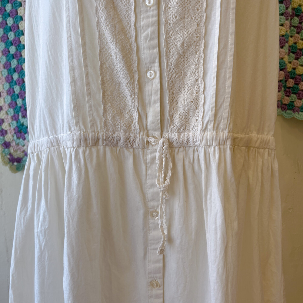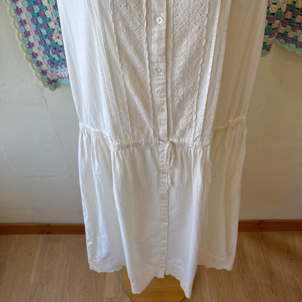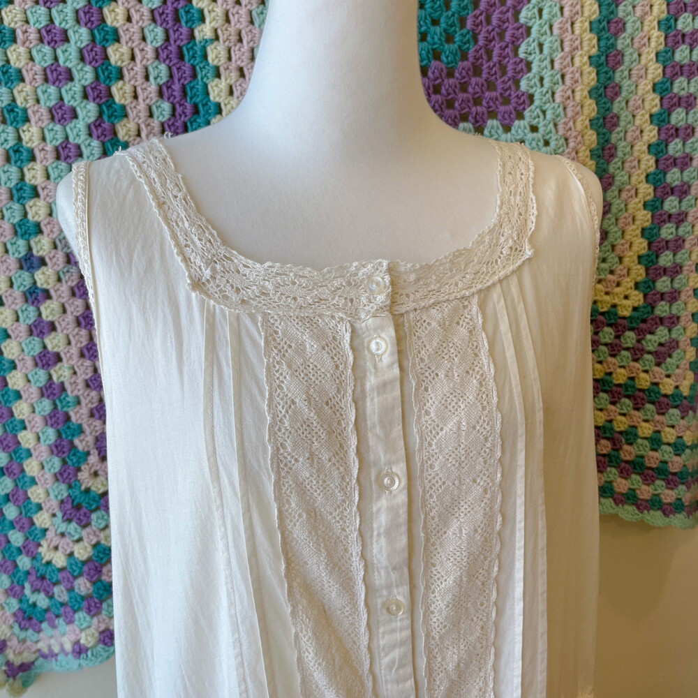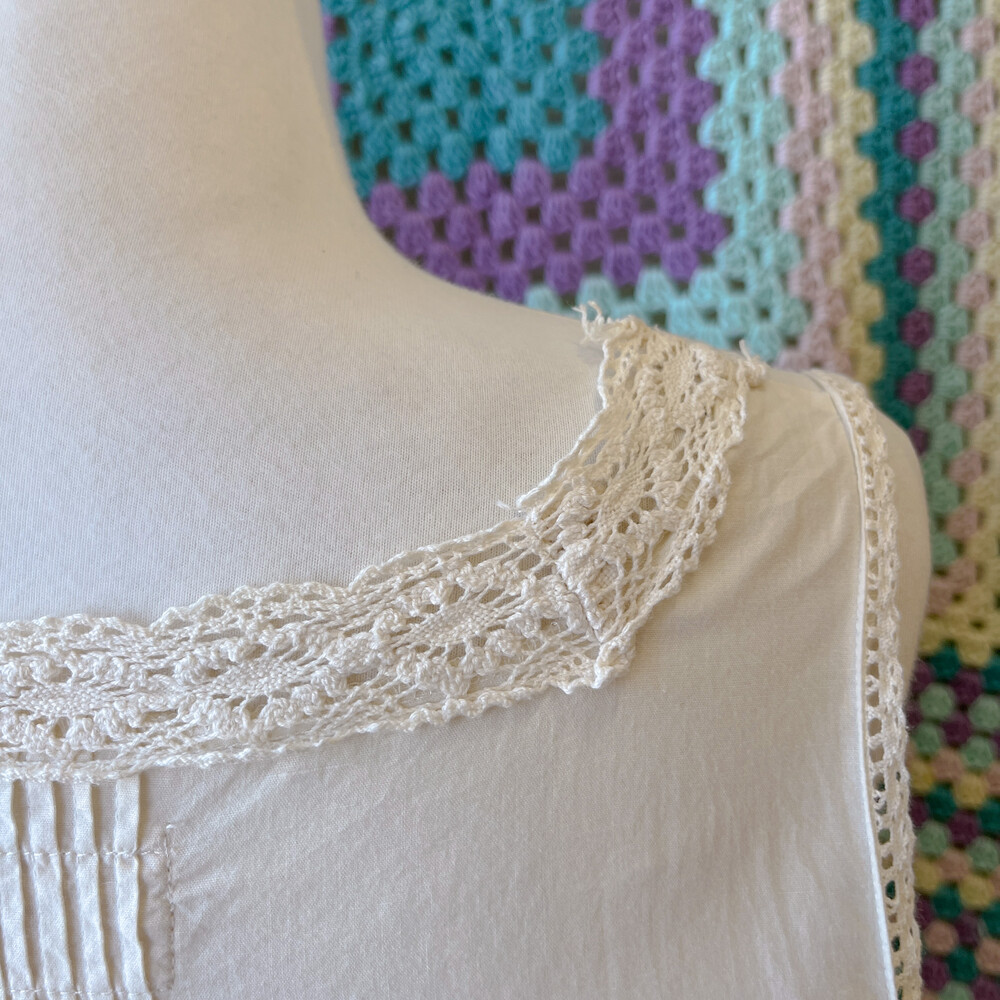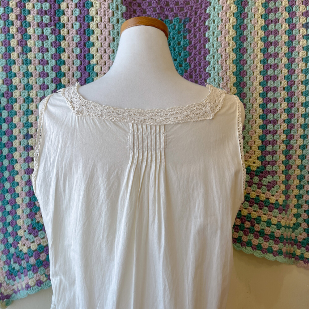 아이보리 색감의 핀턱, 펀칭 코튼 민소매 원피스예요