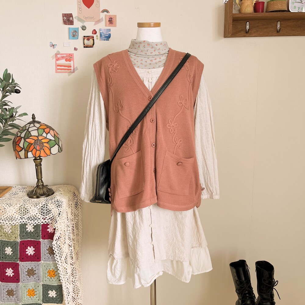 pink brown flower runner pocket vest