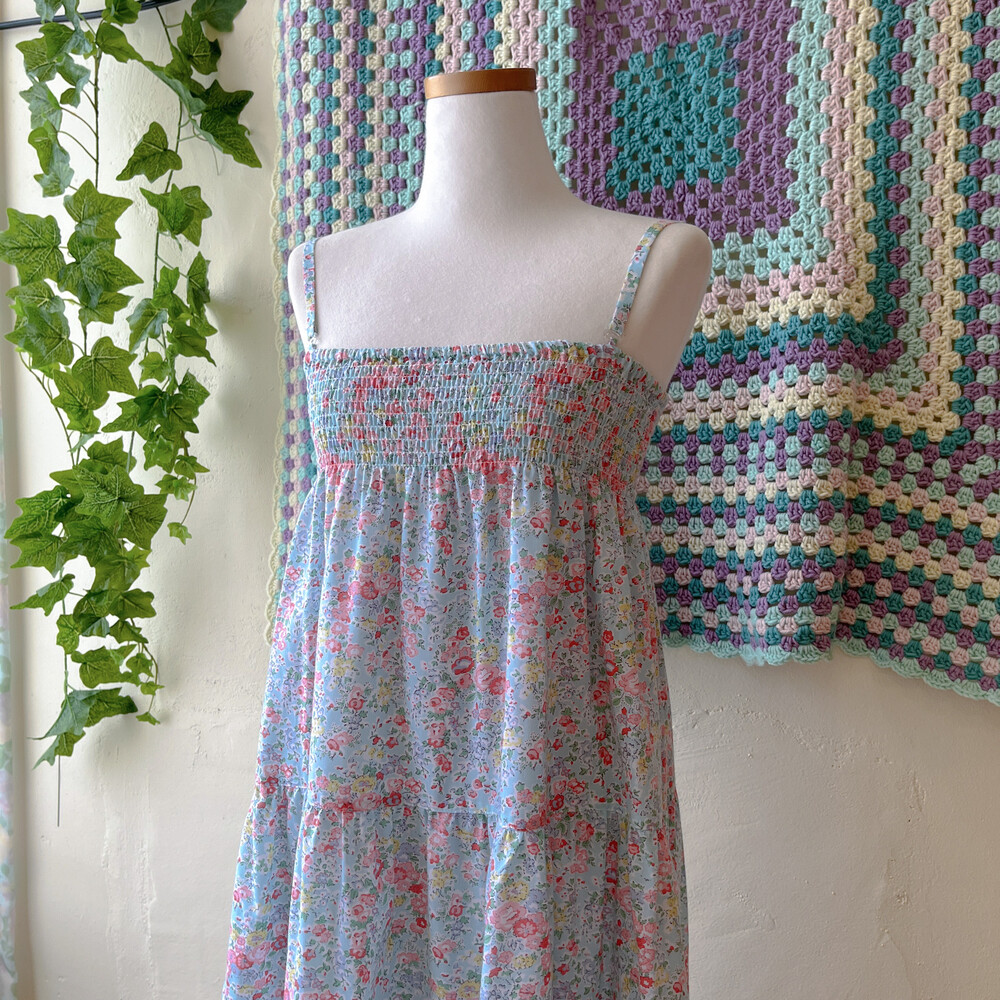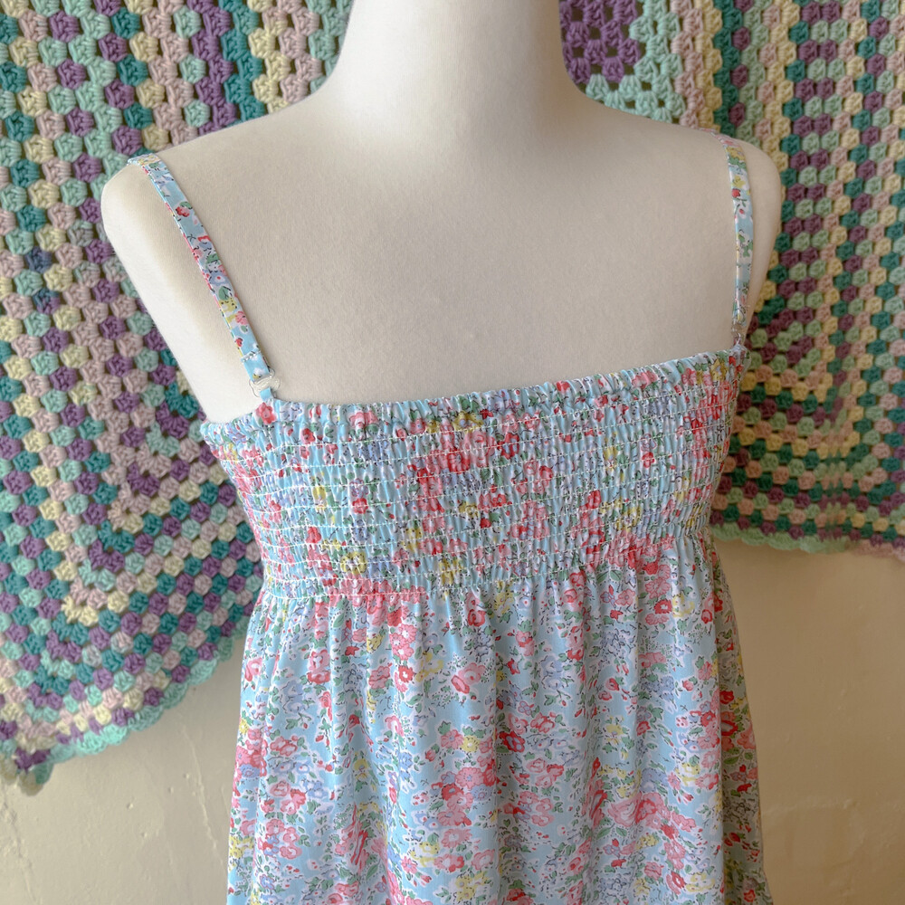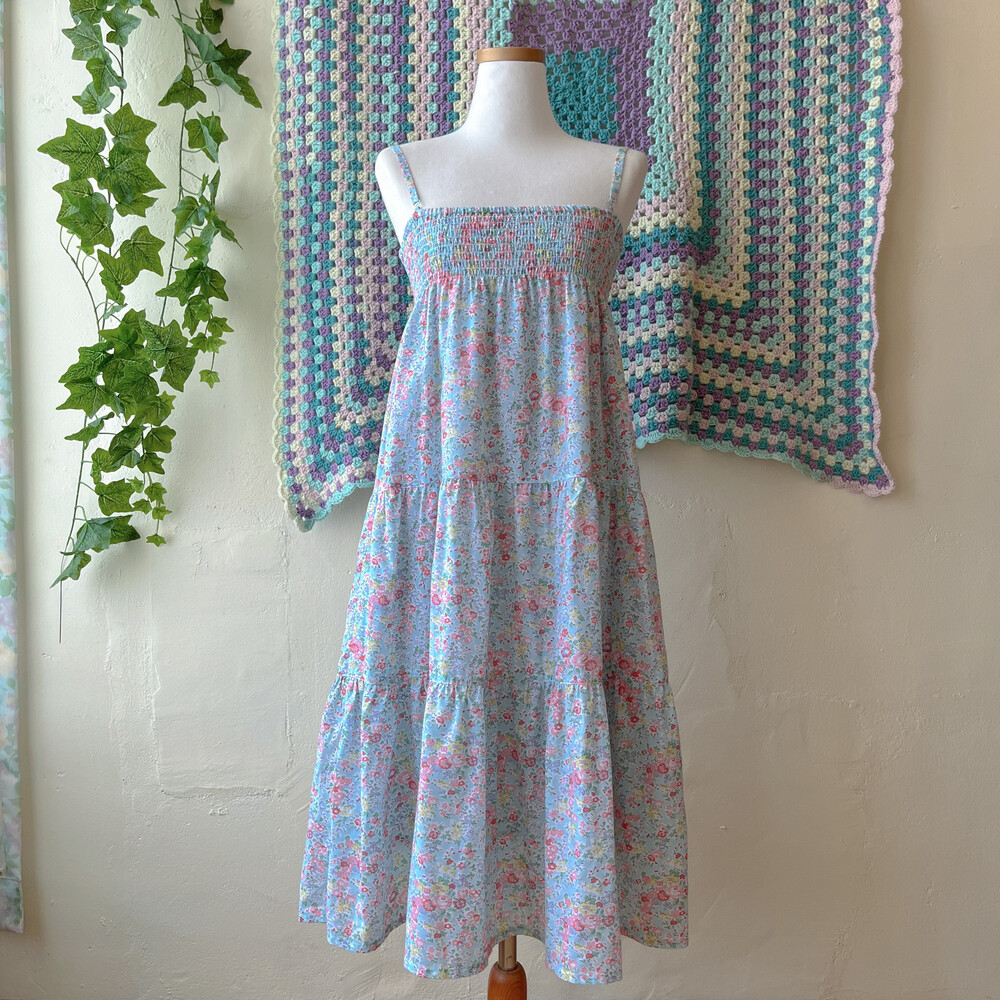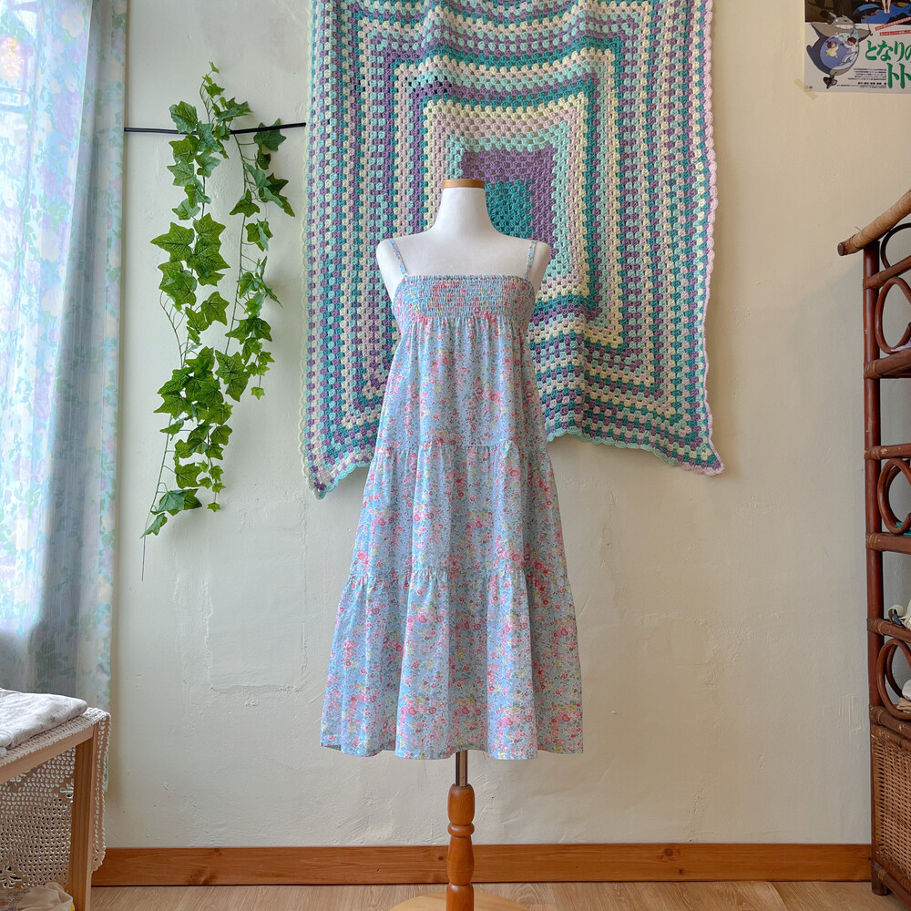 아쿠아블루 색감 베이스의 꽃무늬 끈원피스예요