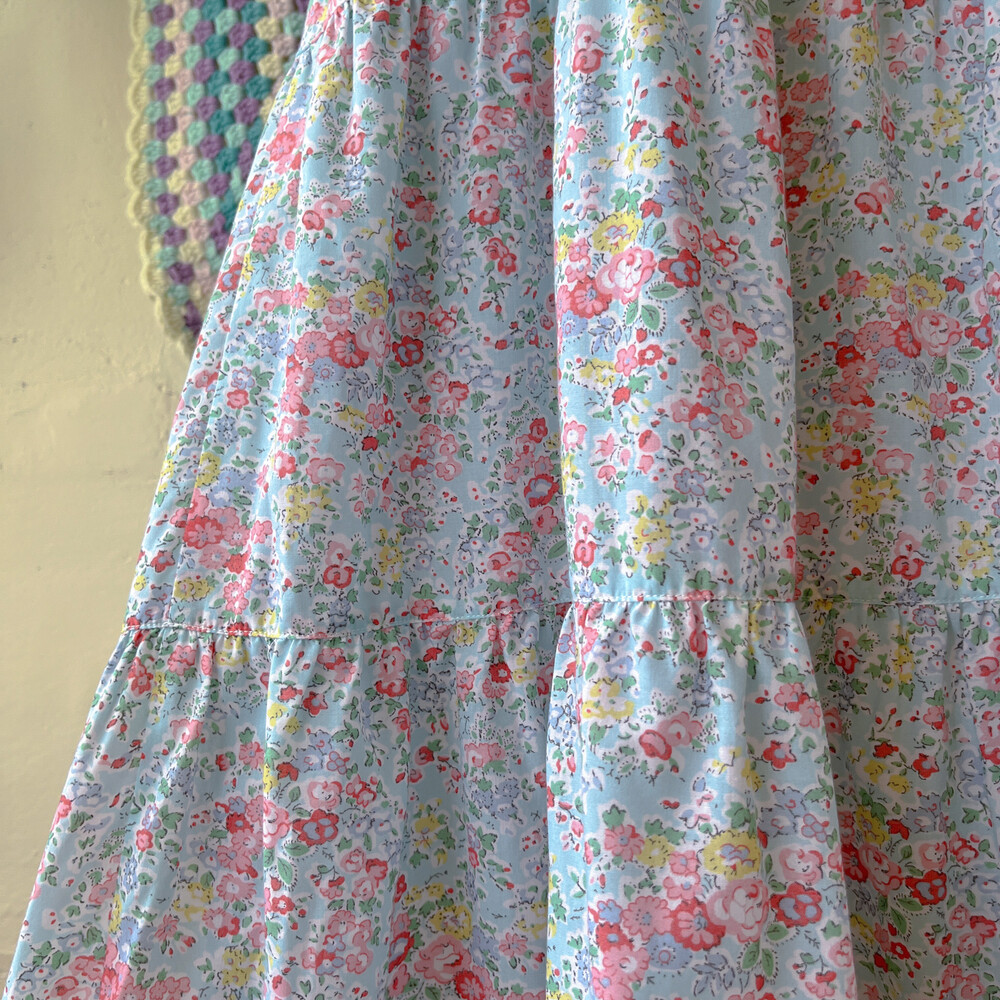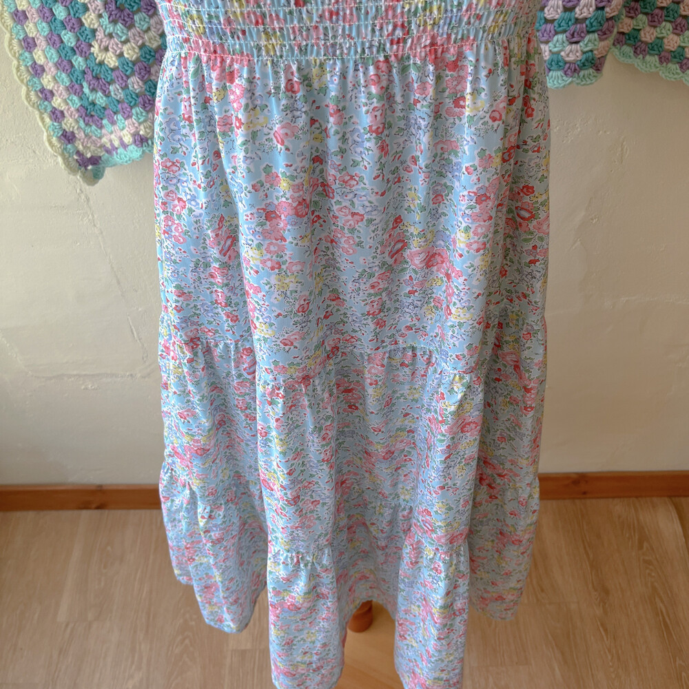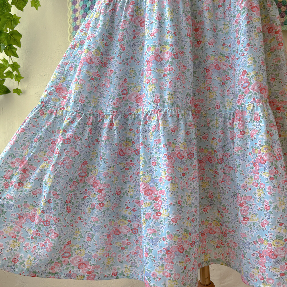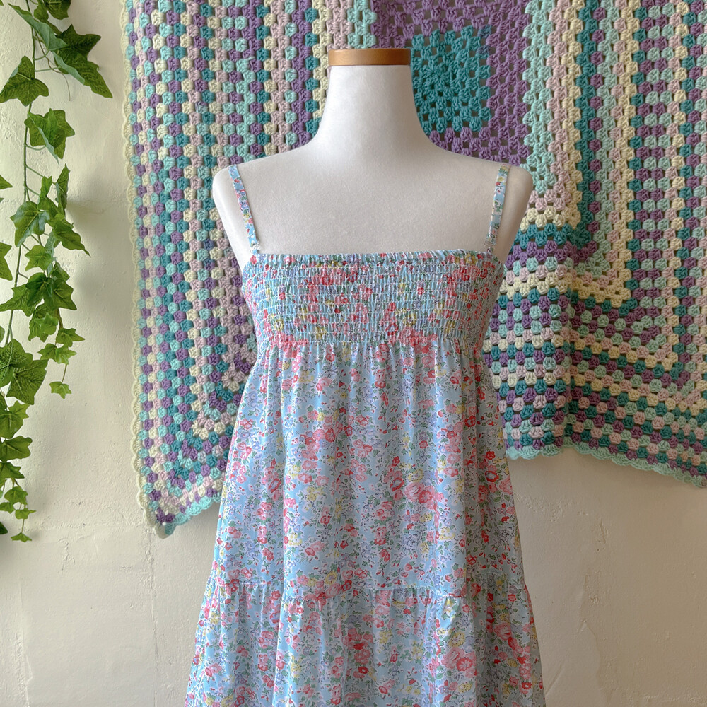 아쿠아블루 색감 베이스의 꽃무늬 끈원피스예요