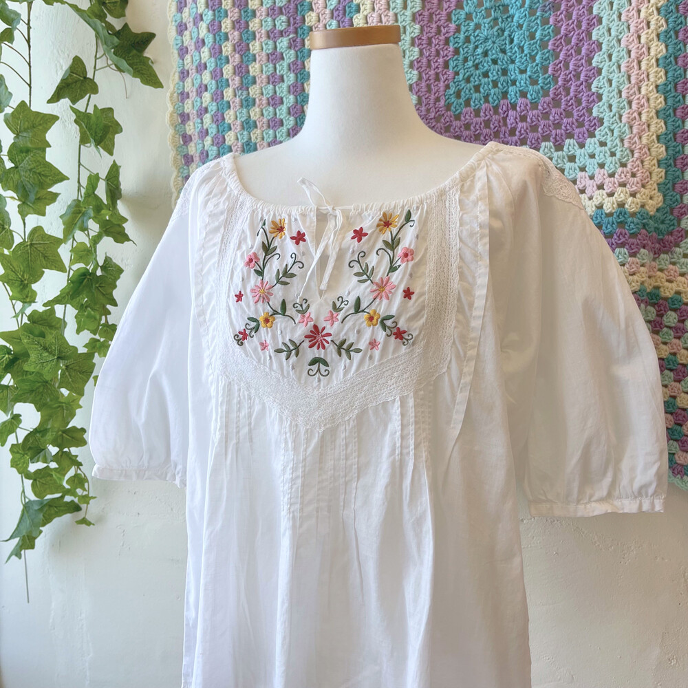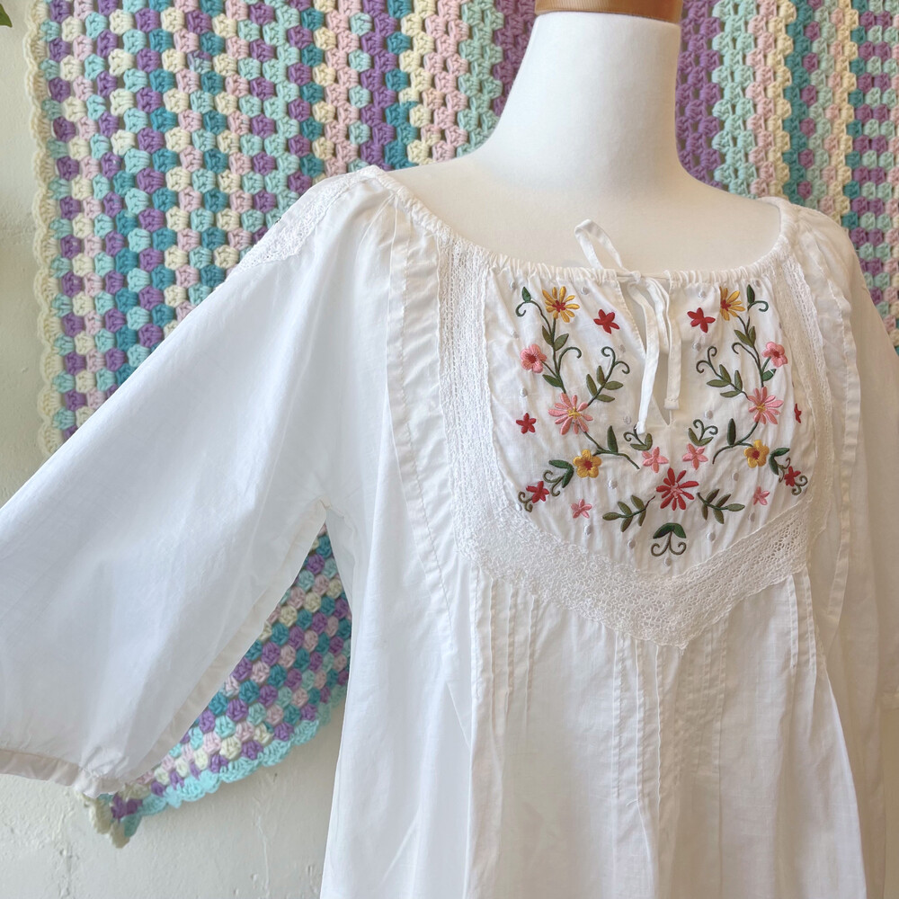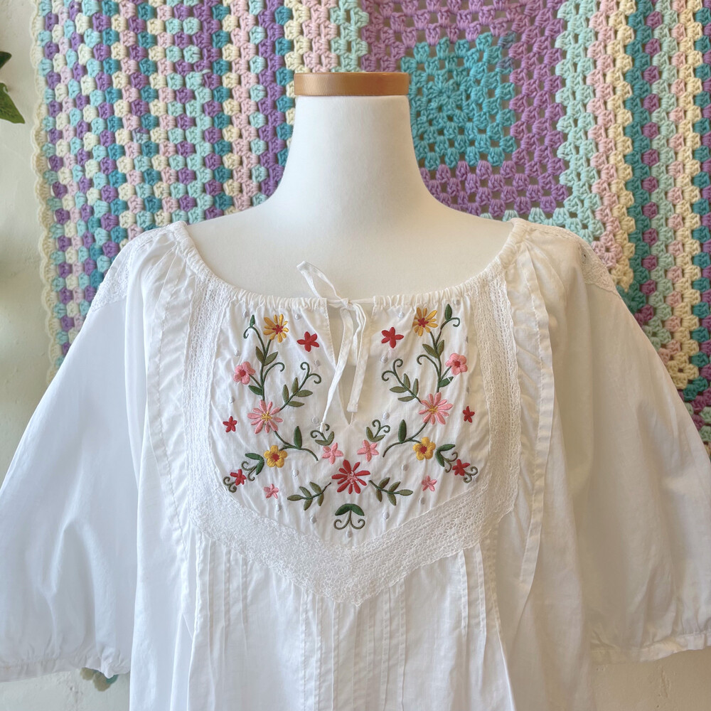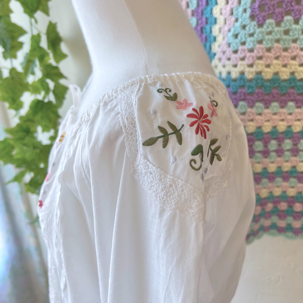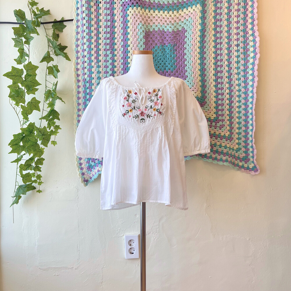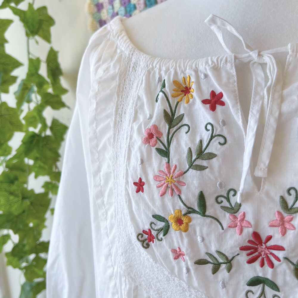가슴과 어깨 자수 포인트의 코튼 블라우스예요