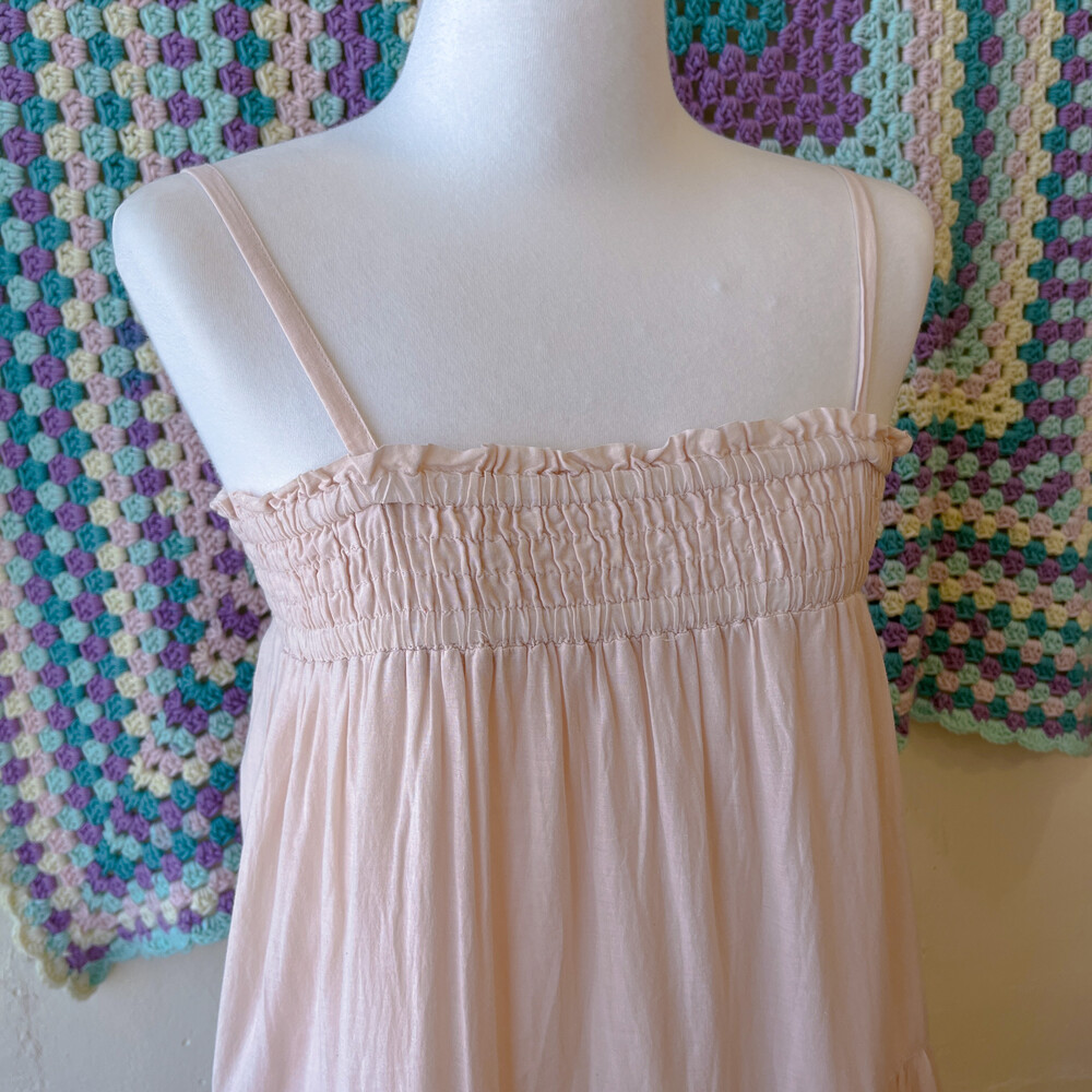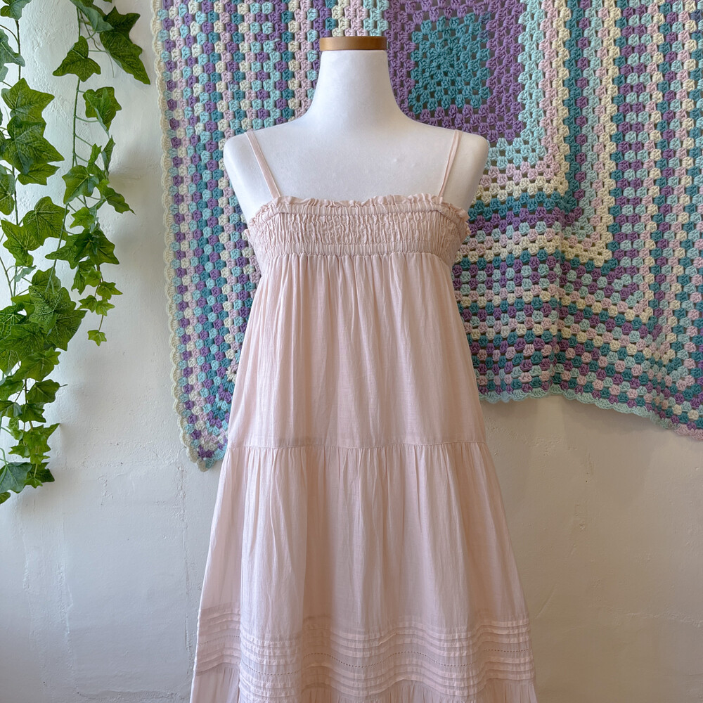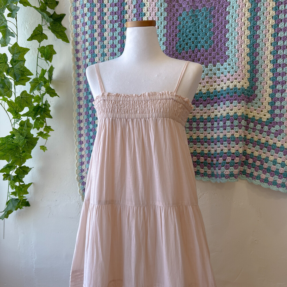 뮤트한 핑크 색감의 코튼 끈원피스예요