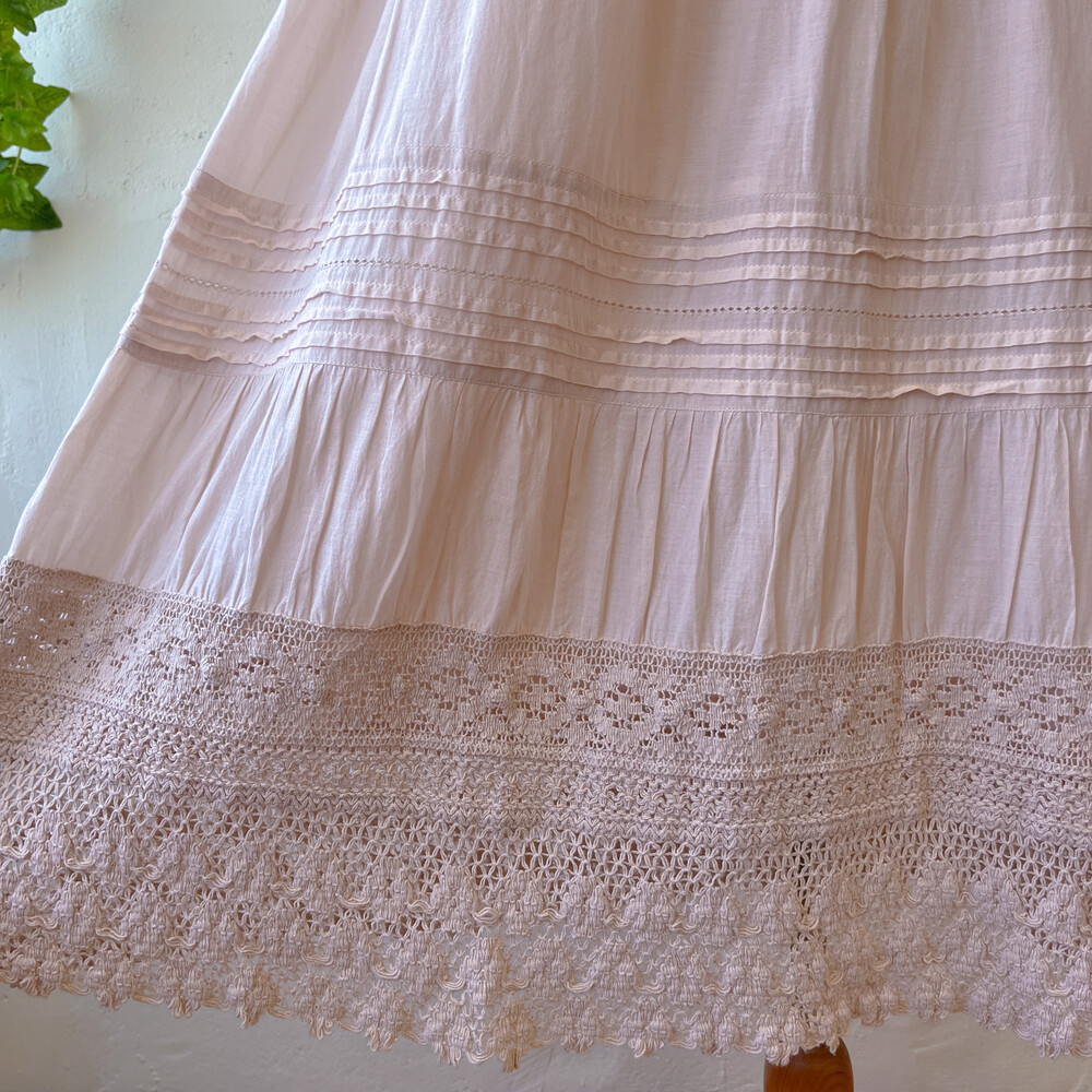 밑단의 핀턱과 크로셰 레이스 포인트가 사랑스러워요