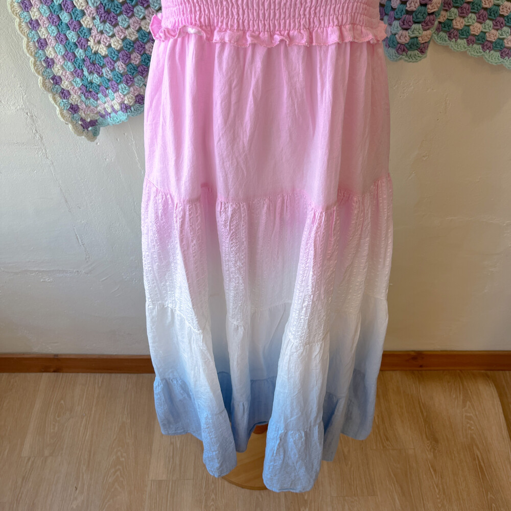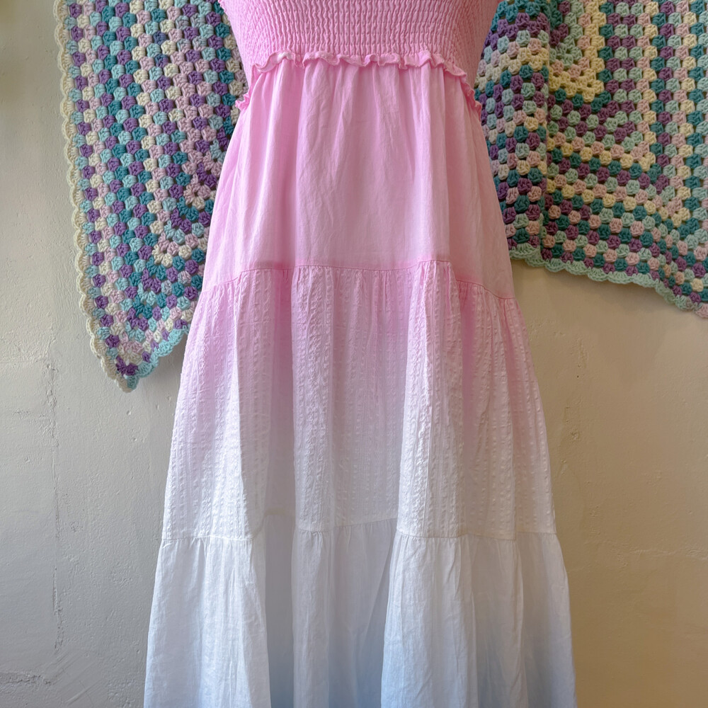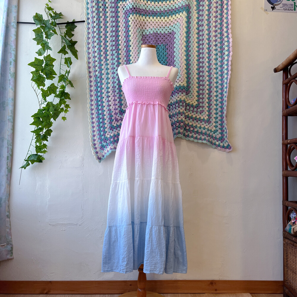 핑크, 블루 그라데이션 코튼 패치 끈원피스예요
