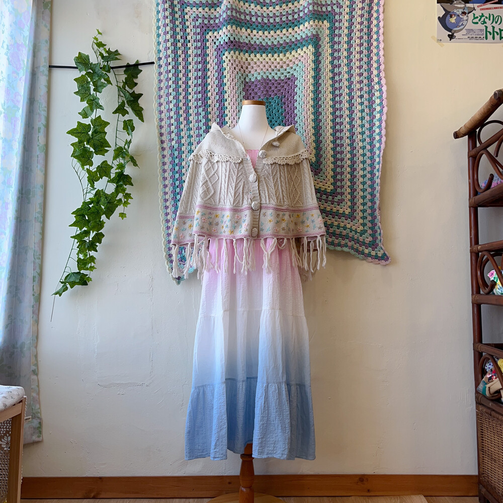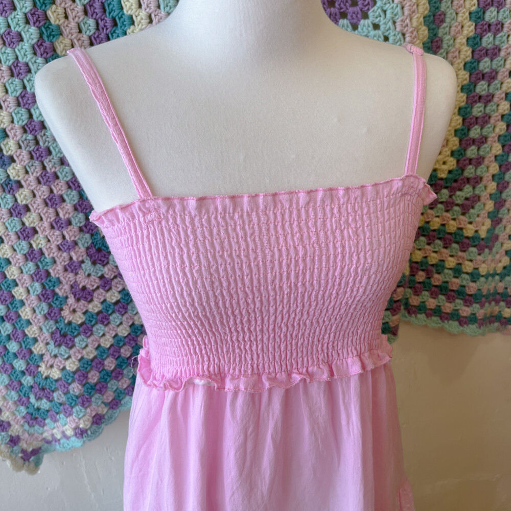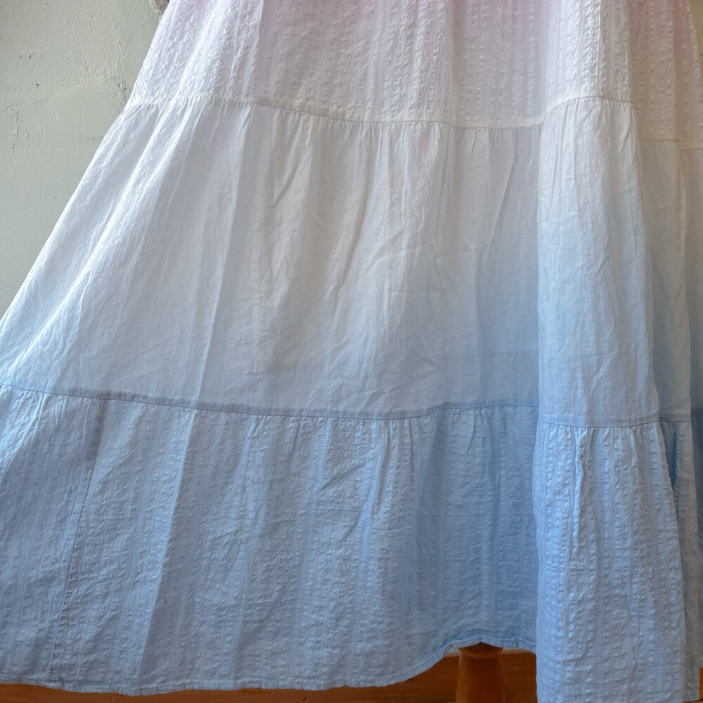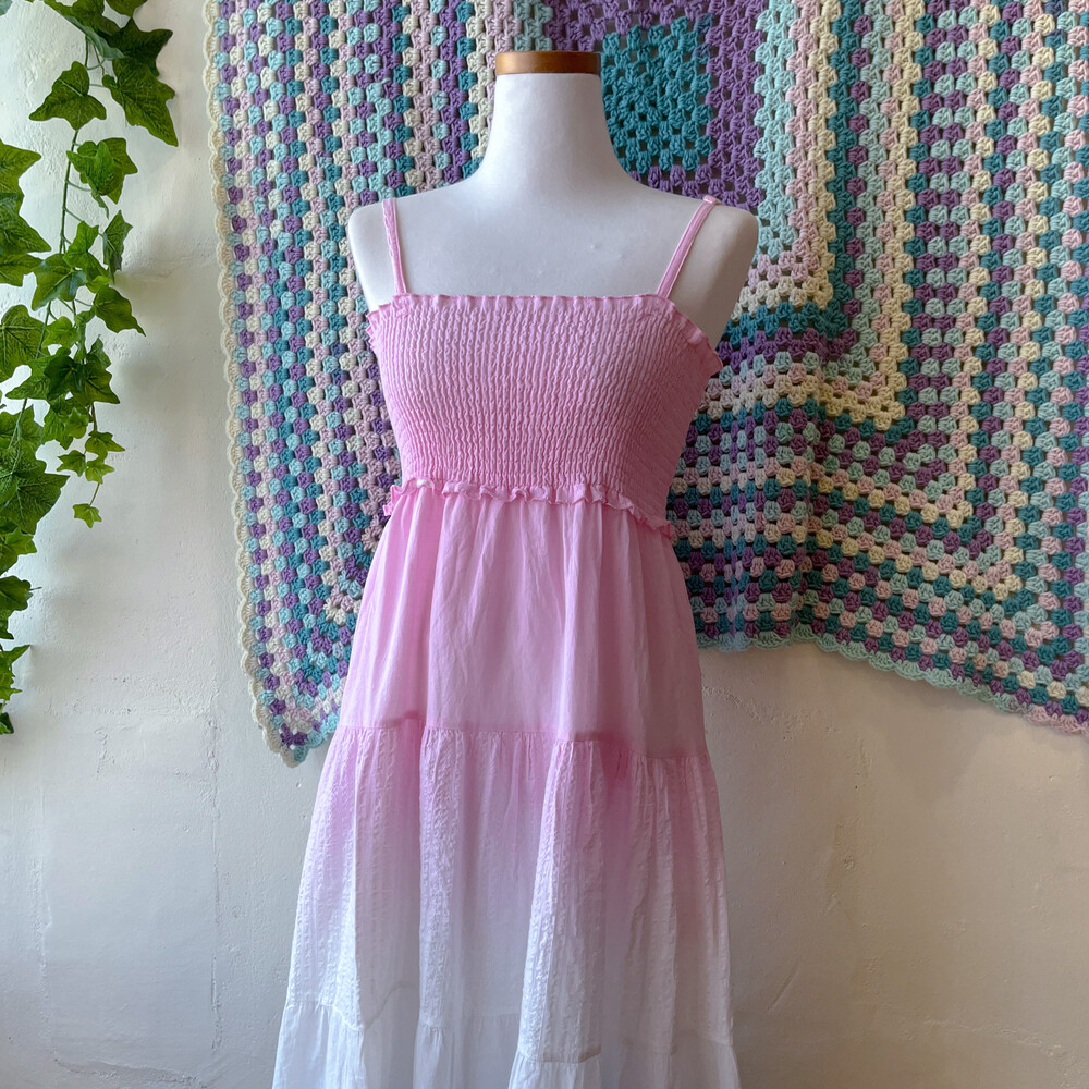 핑크, 블루 그라데이션 코튼 패치 끈원피스예요