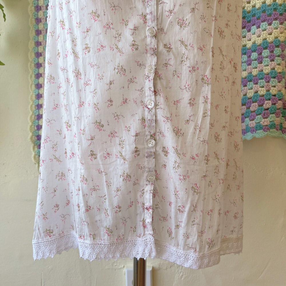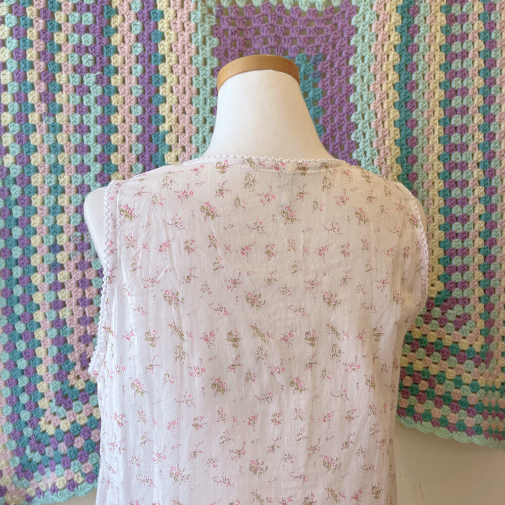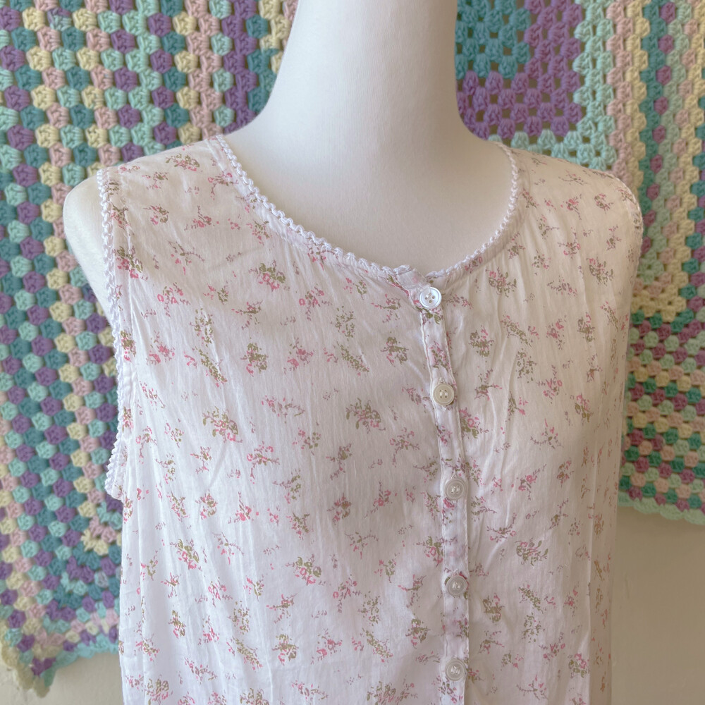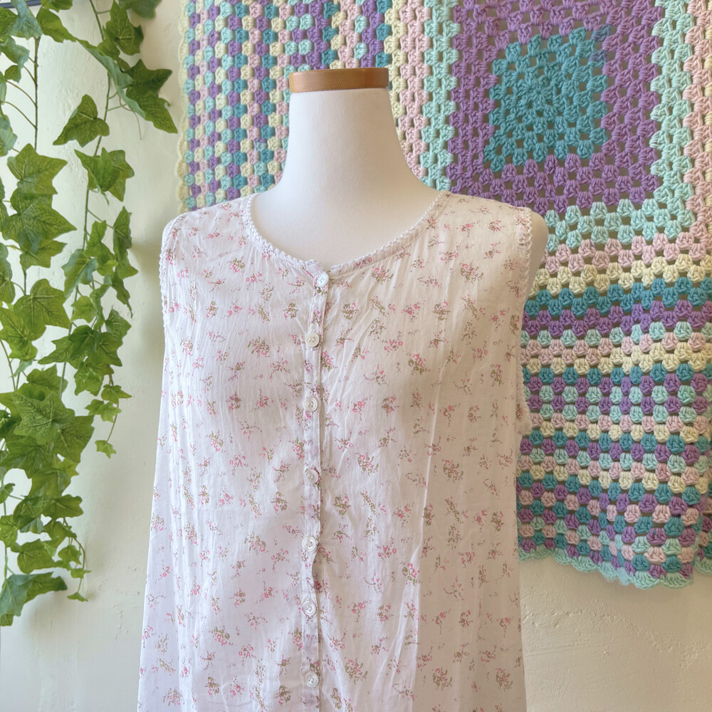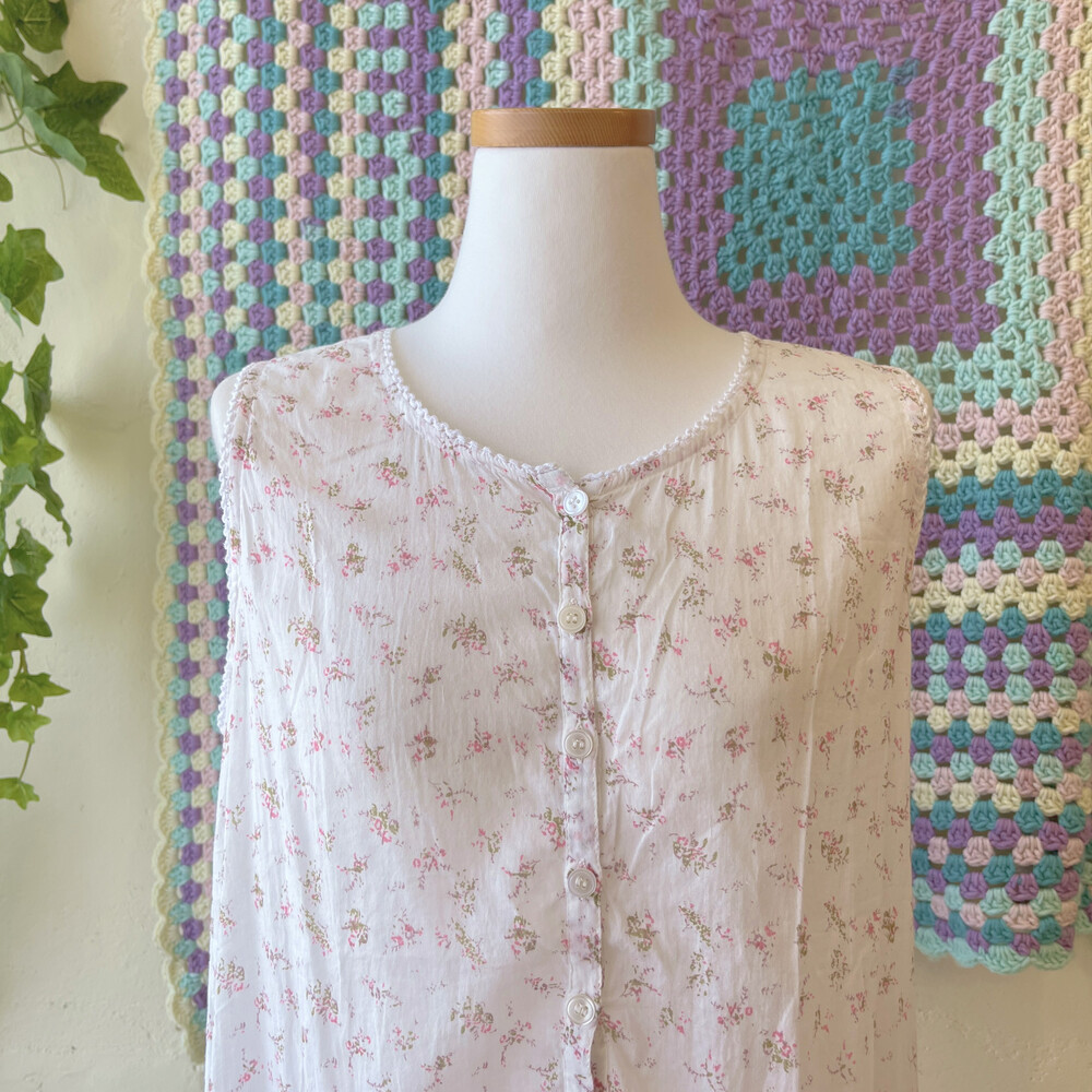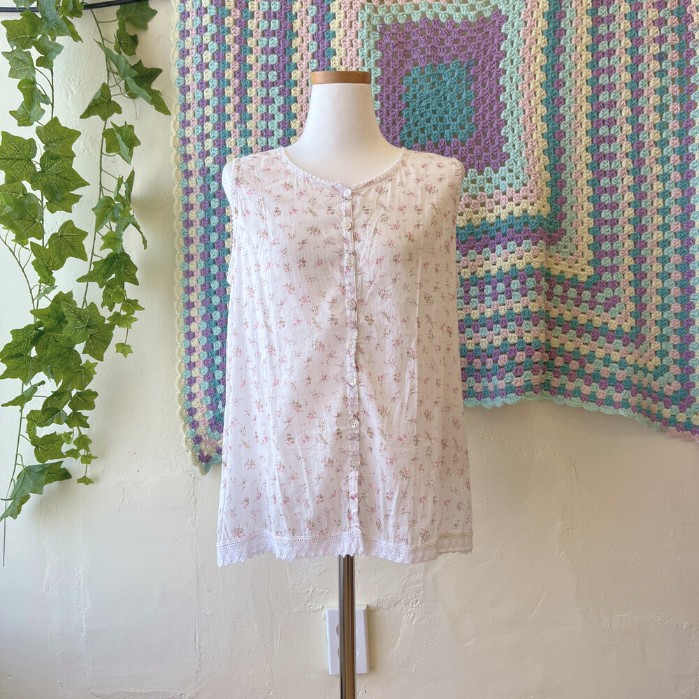 분홍 잔꽃 패턴 코튼 나시 블라우스예요
