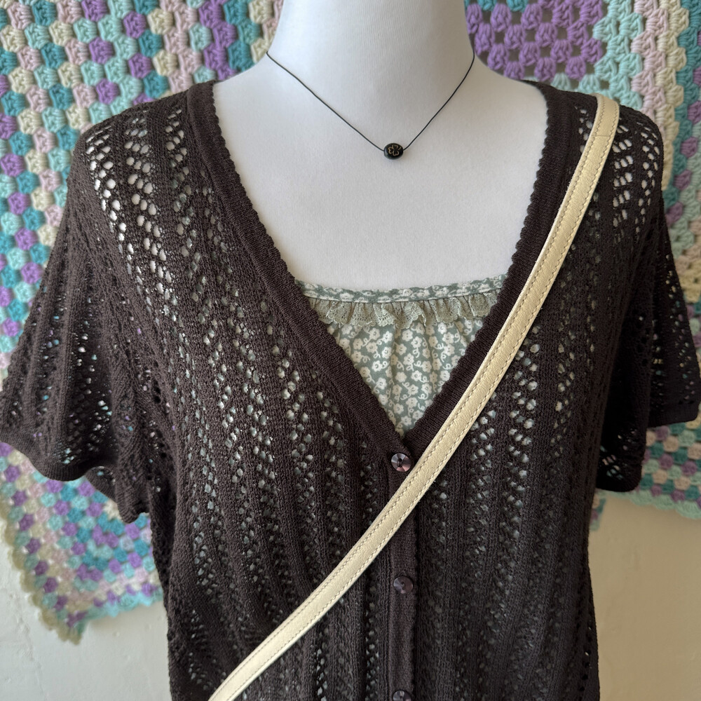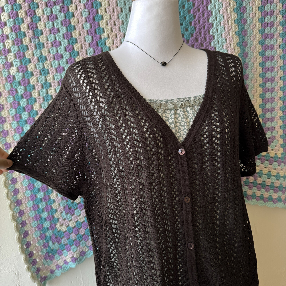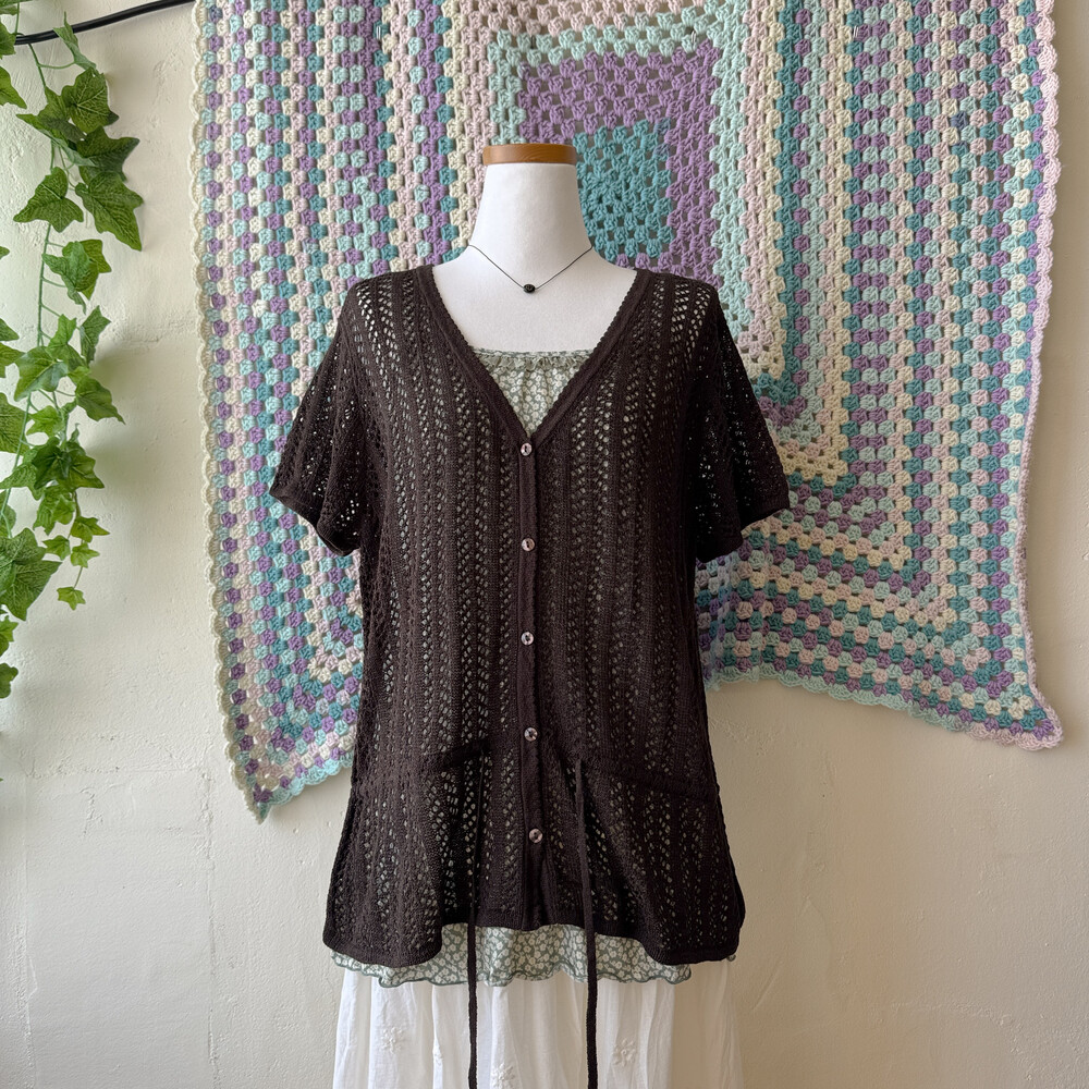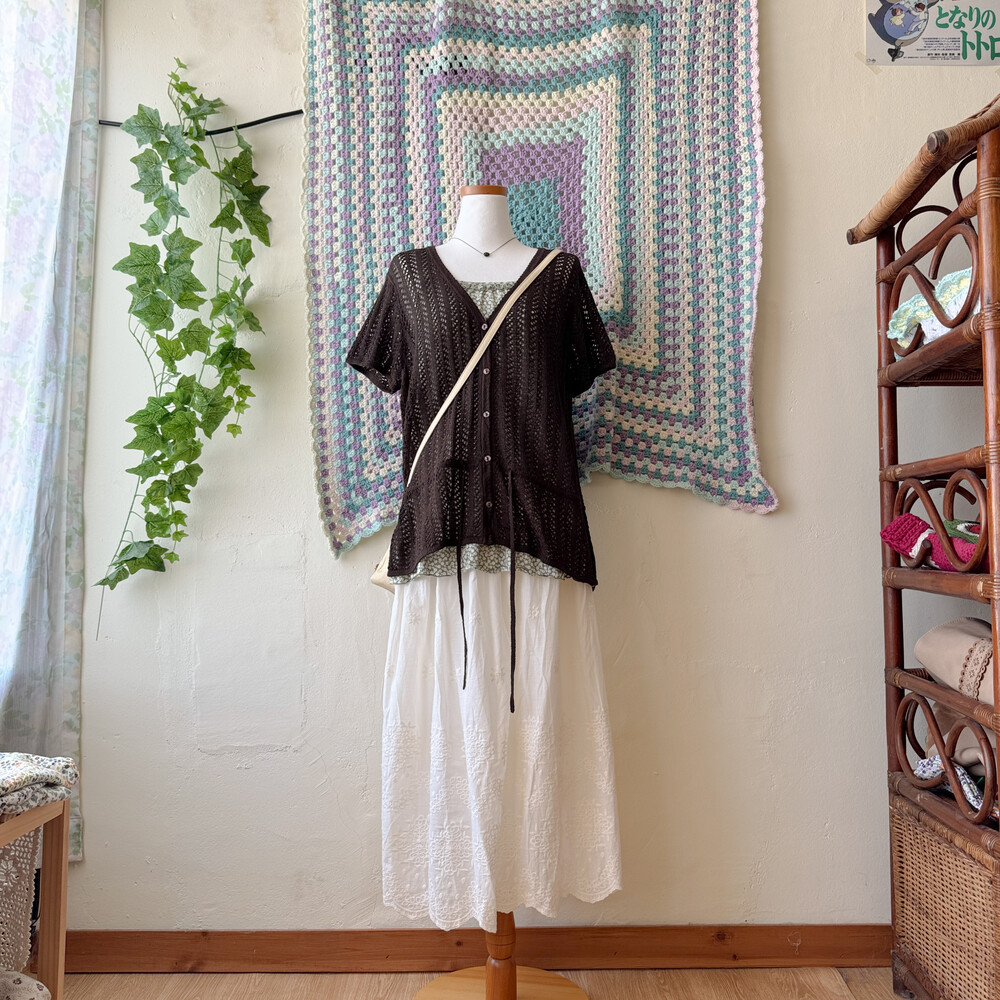 dark brown crochet v-neck summer cd