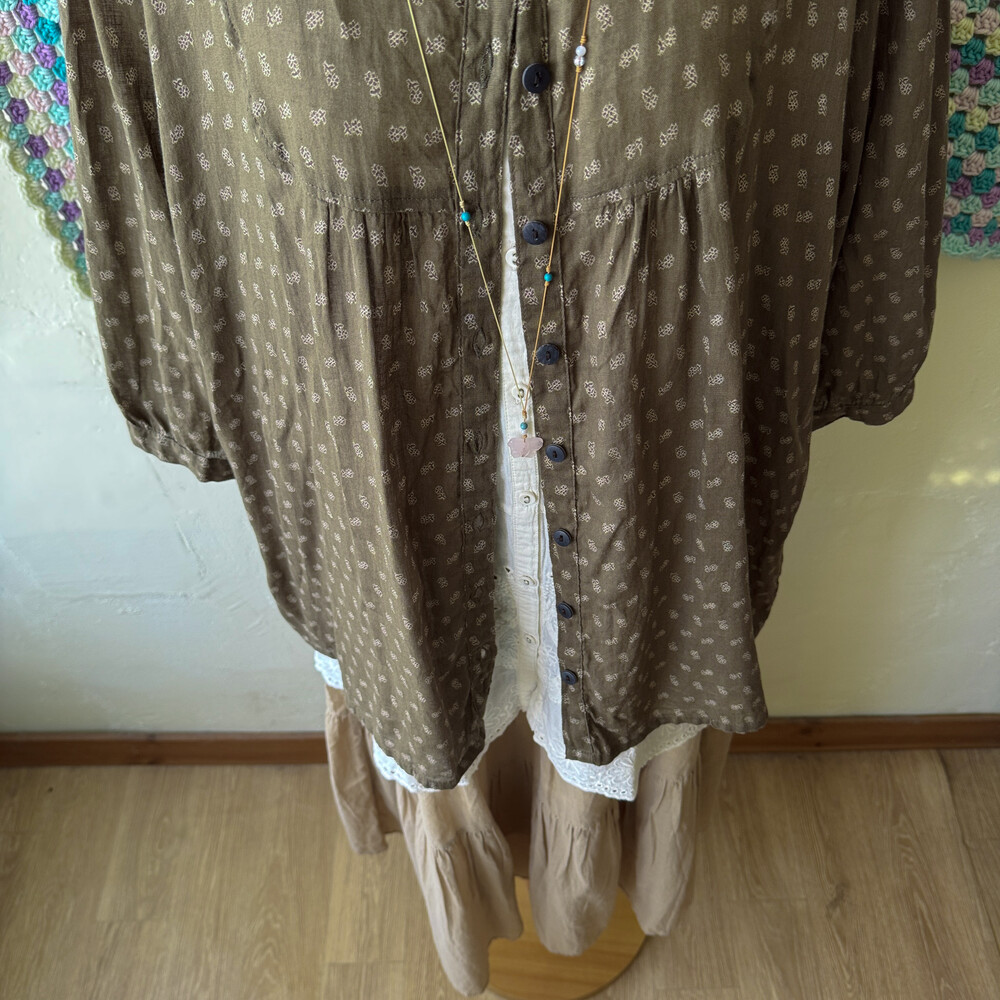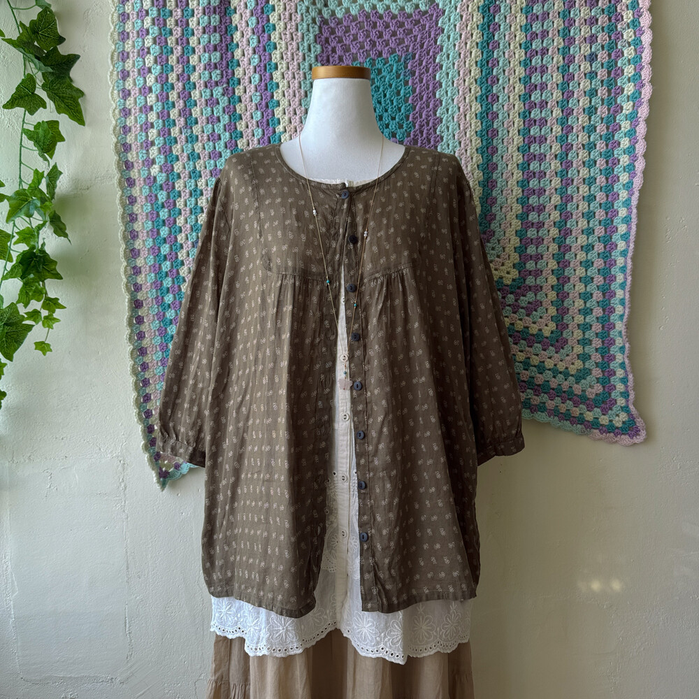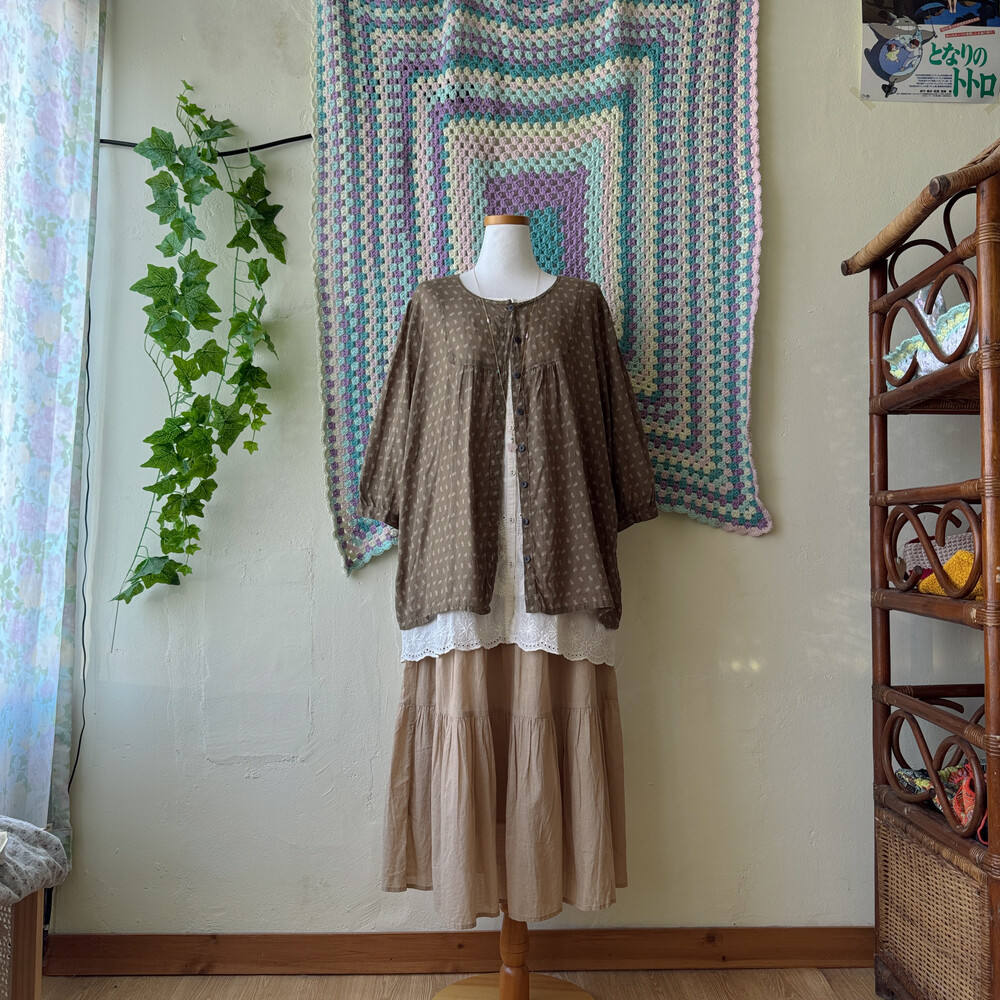 버튼업에 잔꽃 패턴 디자인이라 코지한 분위기가 나요!