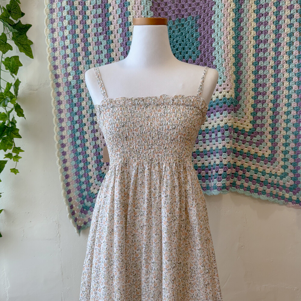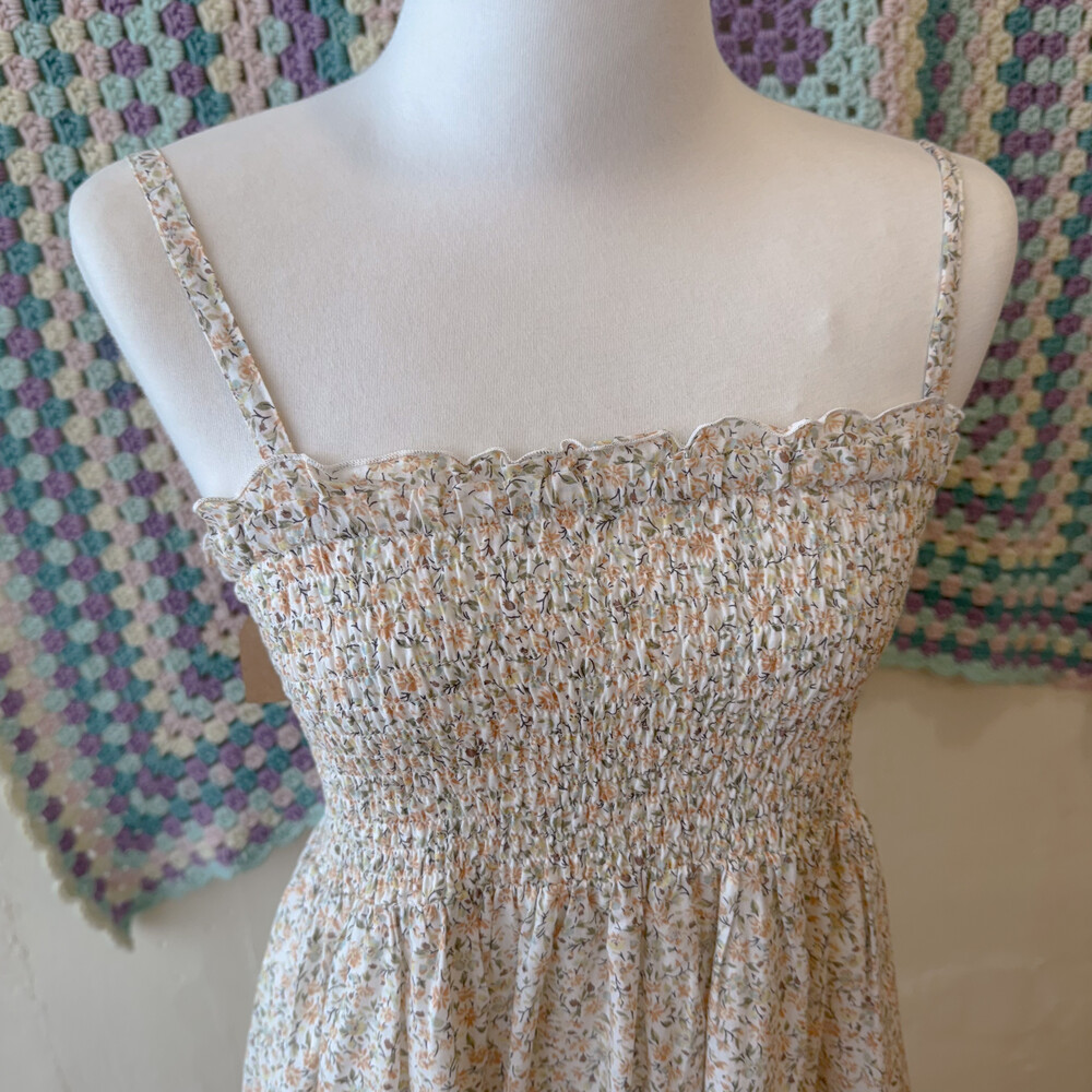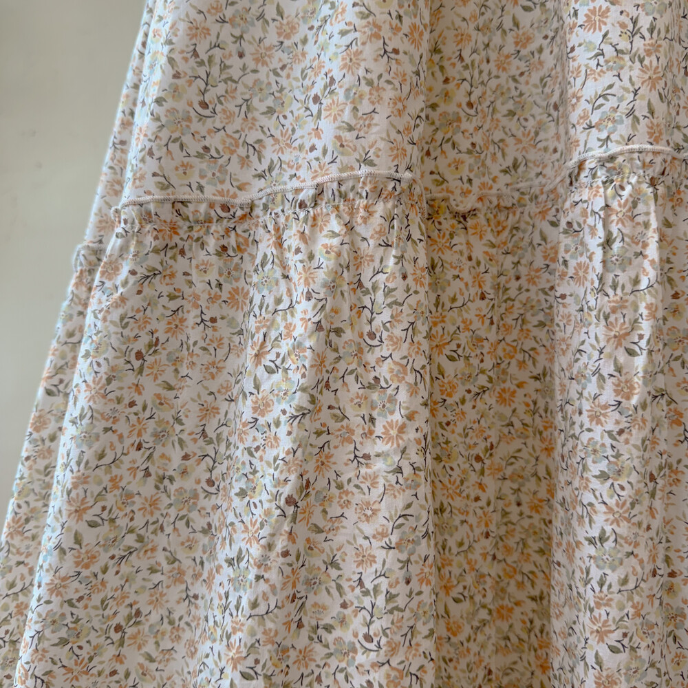 살구, 그린색 꽃무늬 코튼 끈원피스예요
