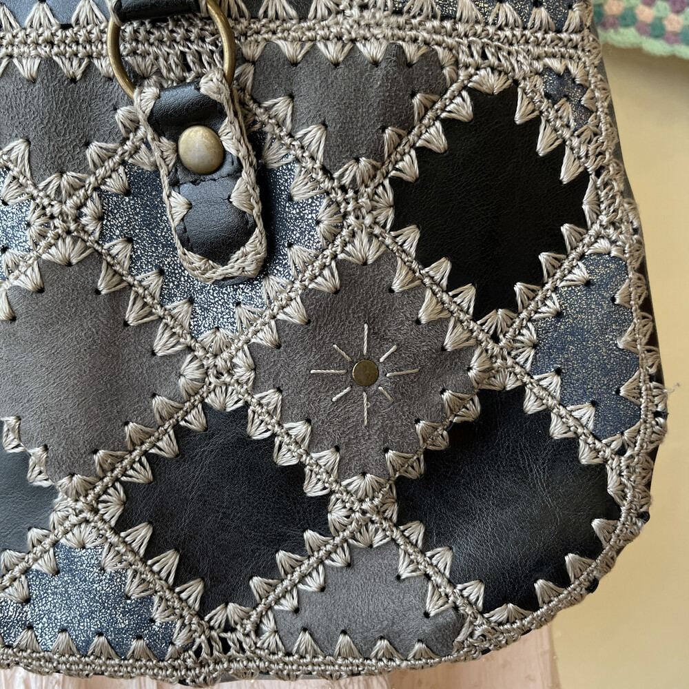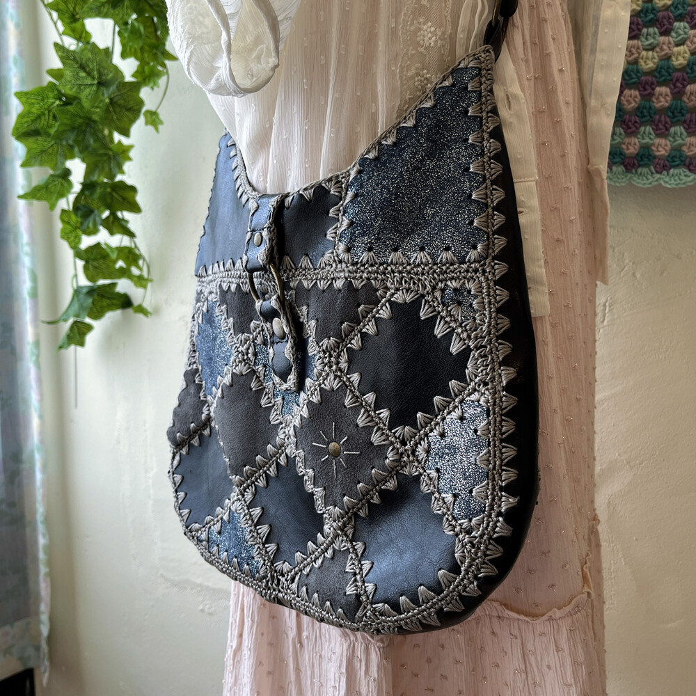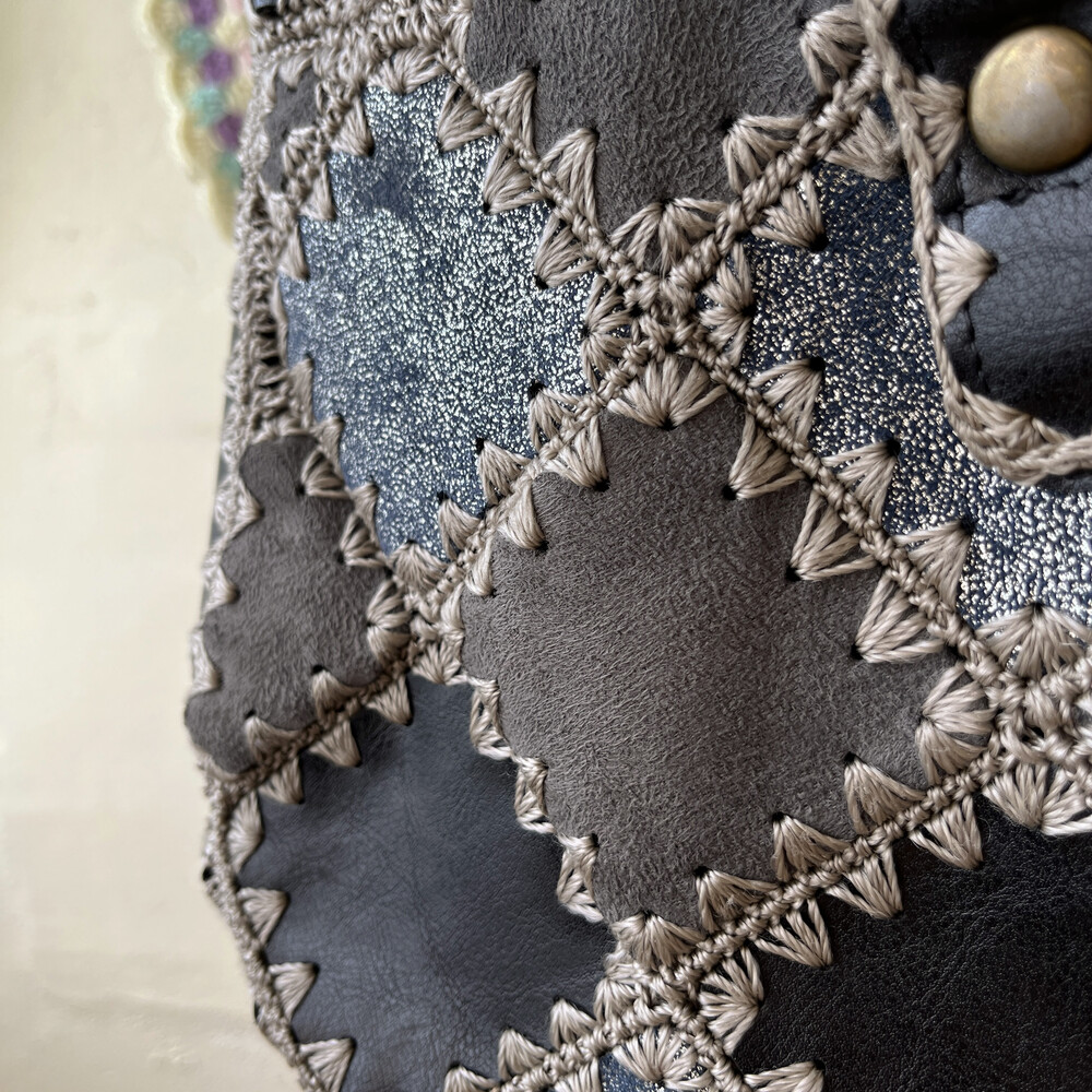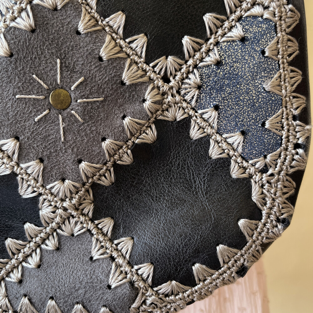 블랙 인조가죽 베이스에 글리터가 들어간 네이비 패치