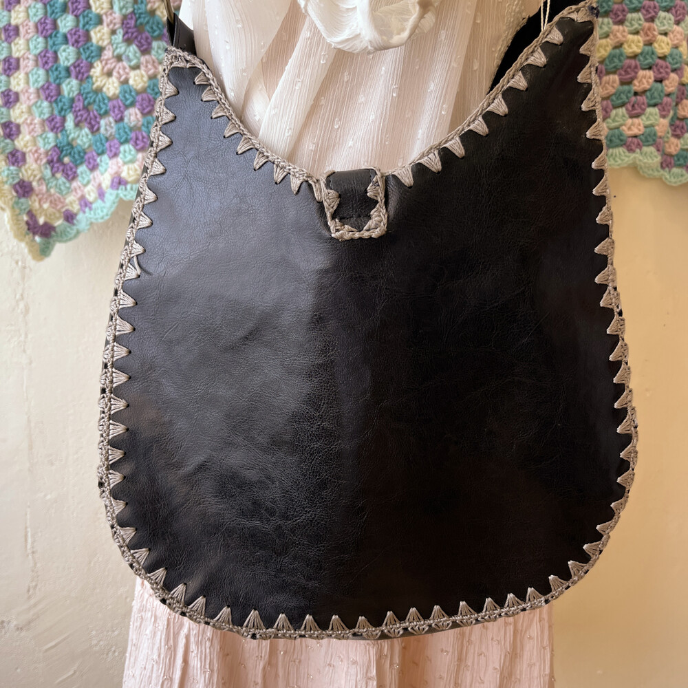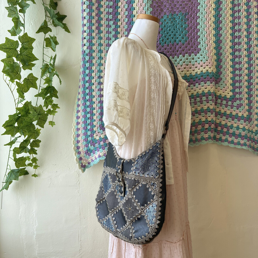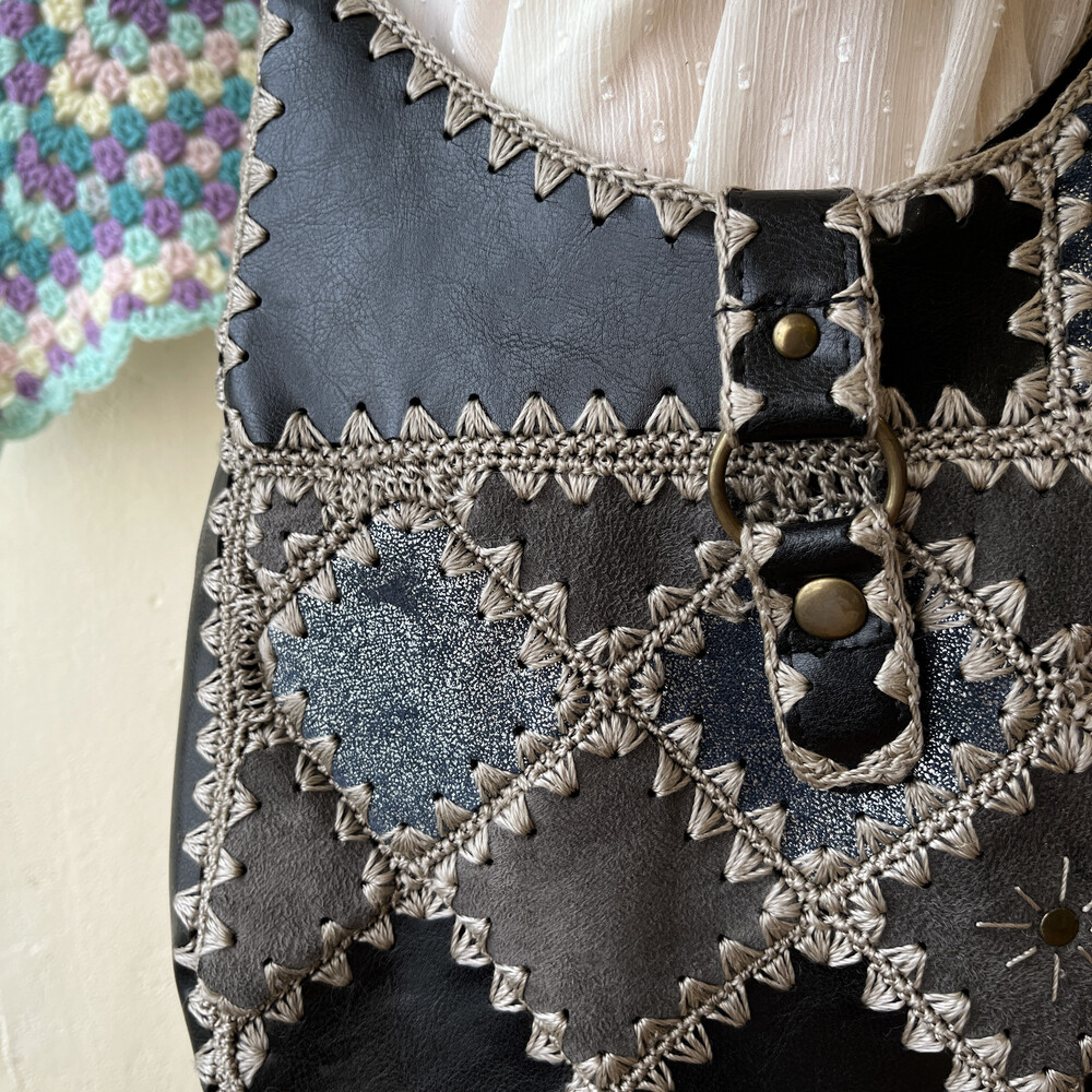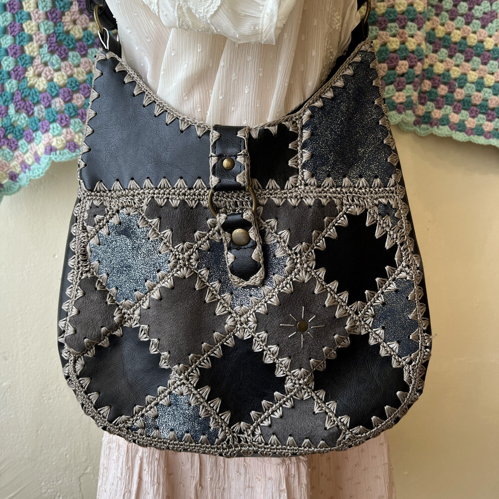 블랙 인조가죽 베이스에 글리터가 들어간 네이비 패치