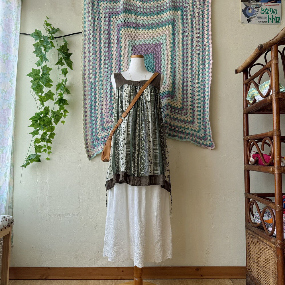 그리너리한 꽃무늬 민소매 튜닉이에요