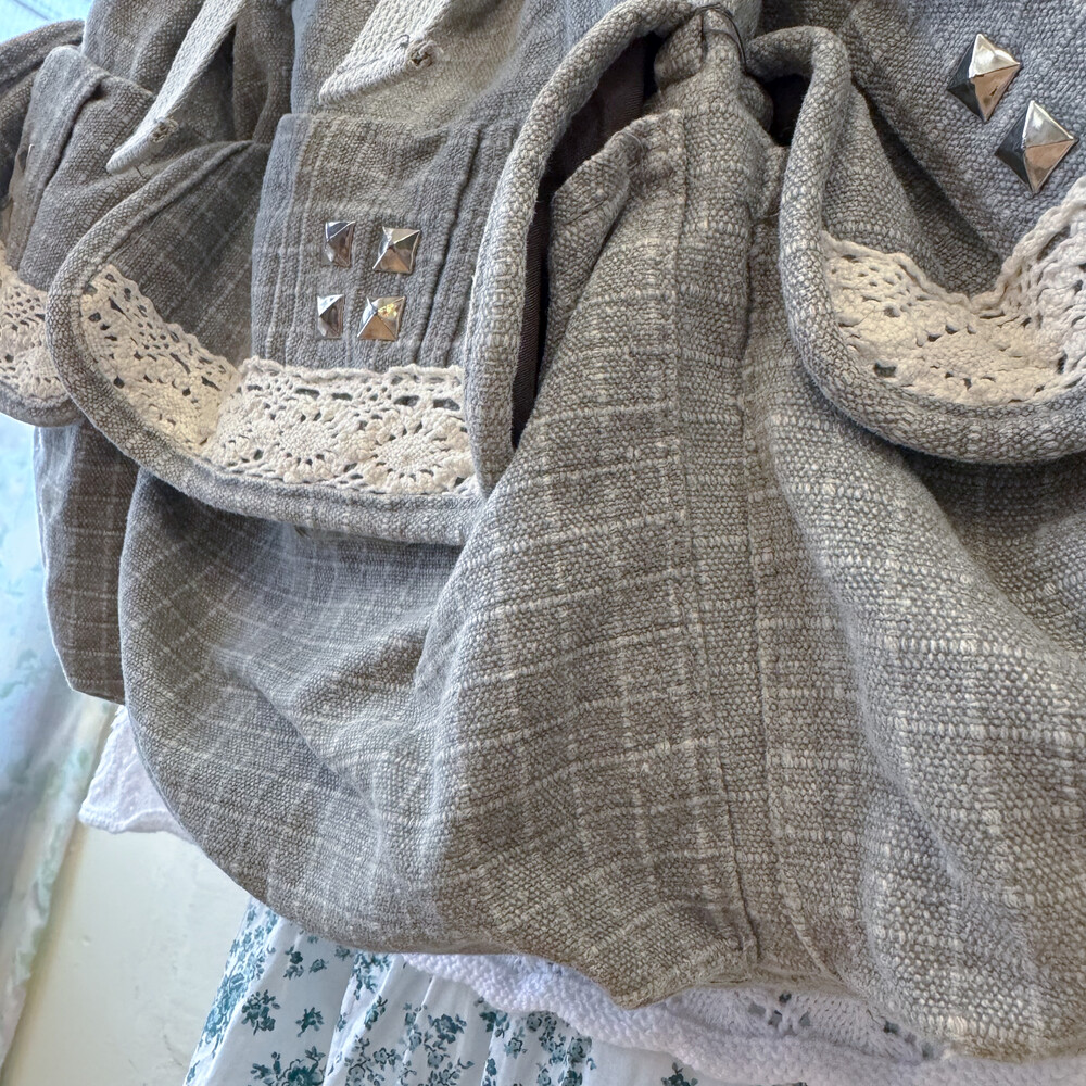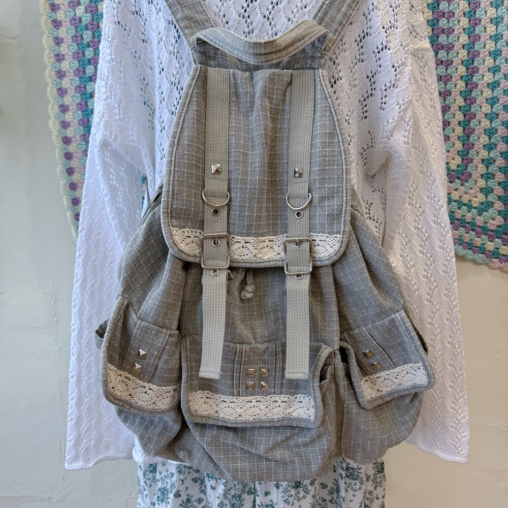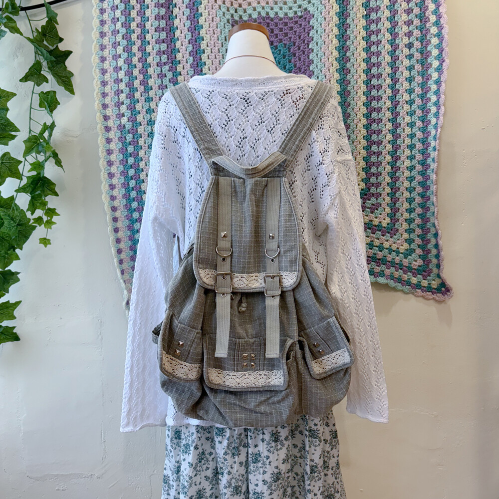 vintage gray 3 pocket backpack