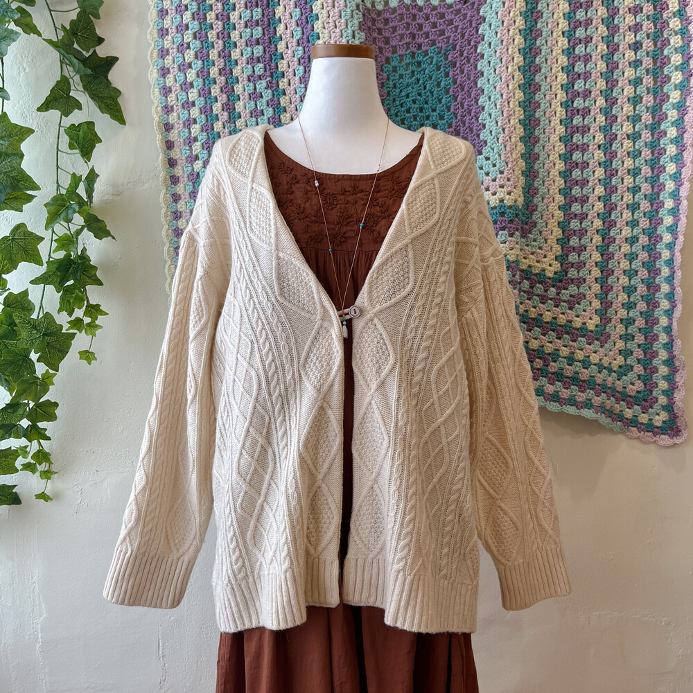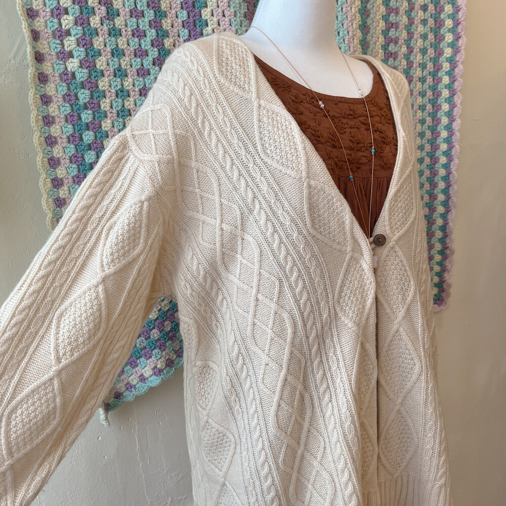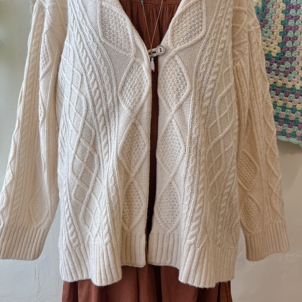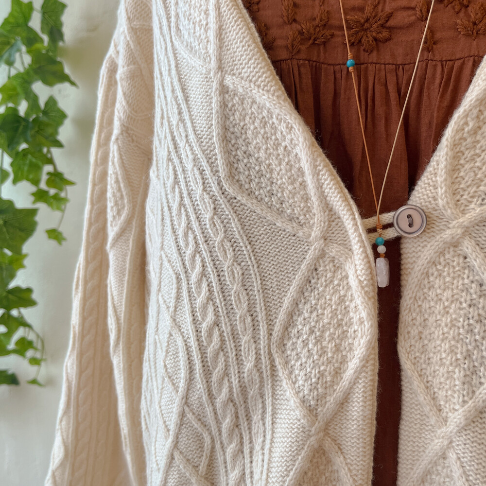아이보리 색감의 아가일 브이넥 가디건이에요