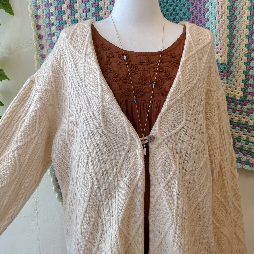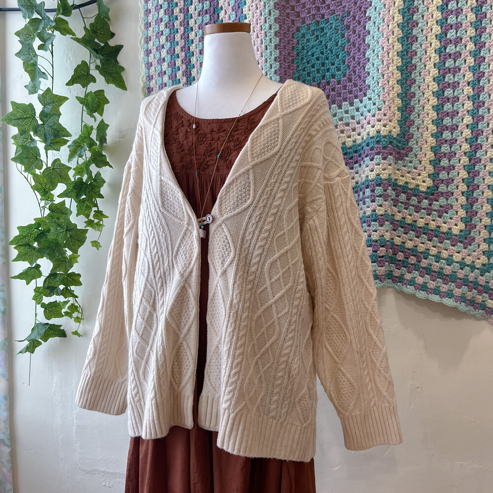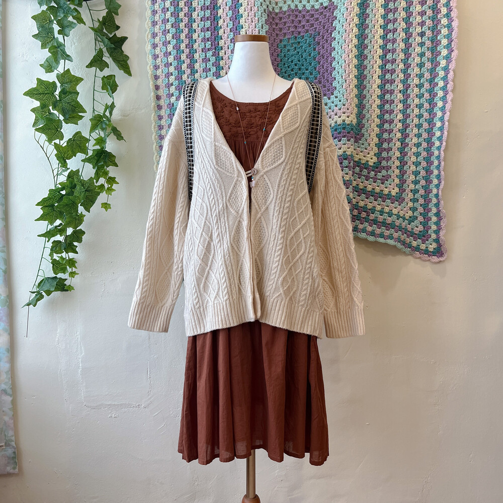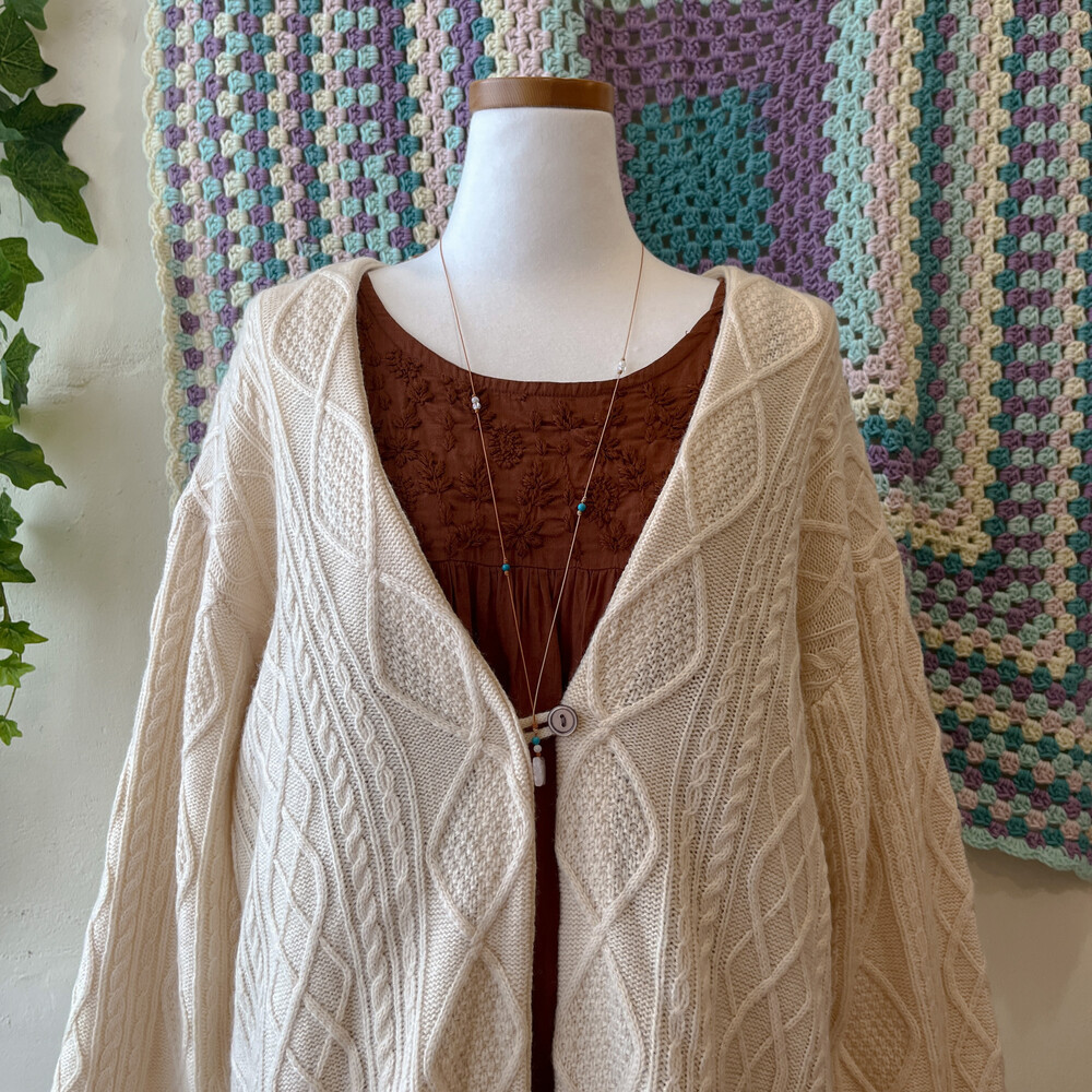 아이보리 색감의 아가일 브이넥 가디건이에요
