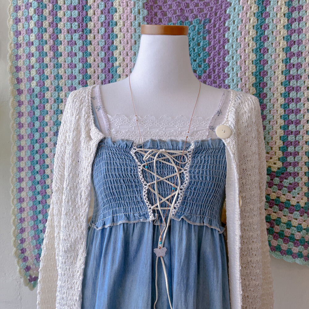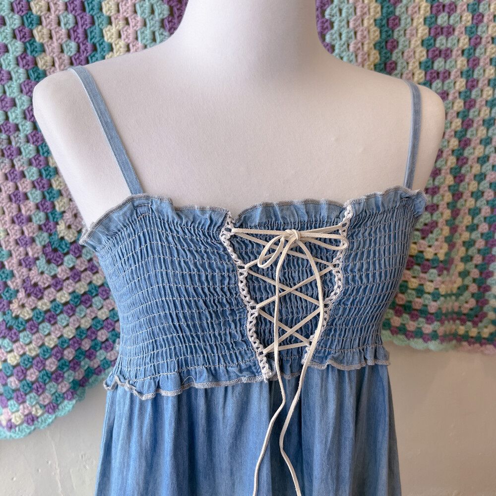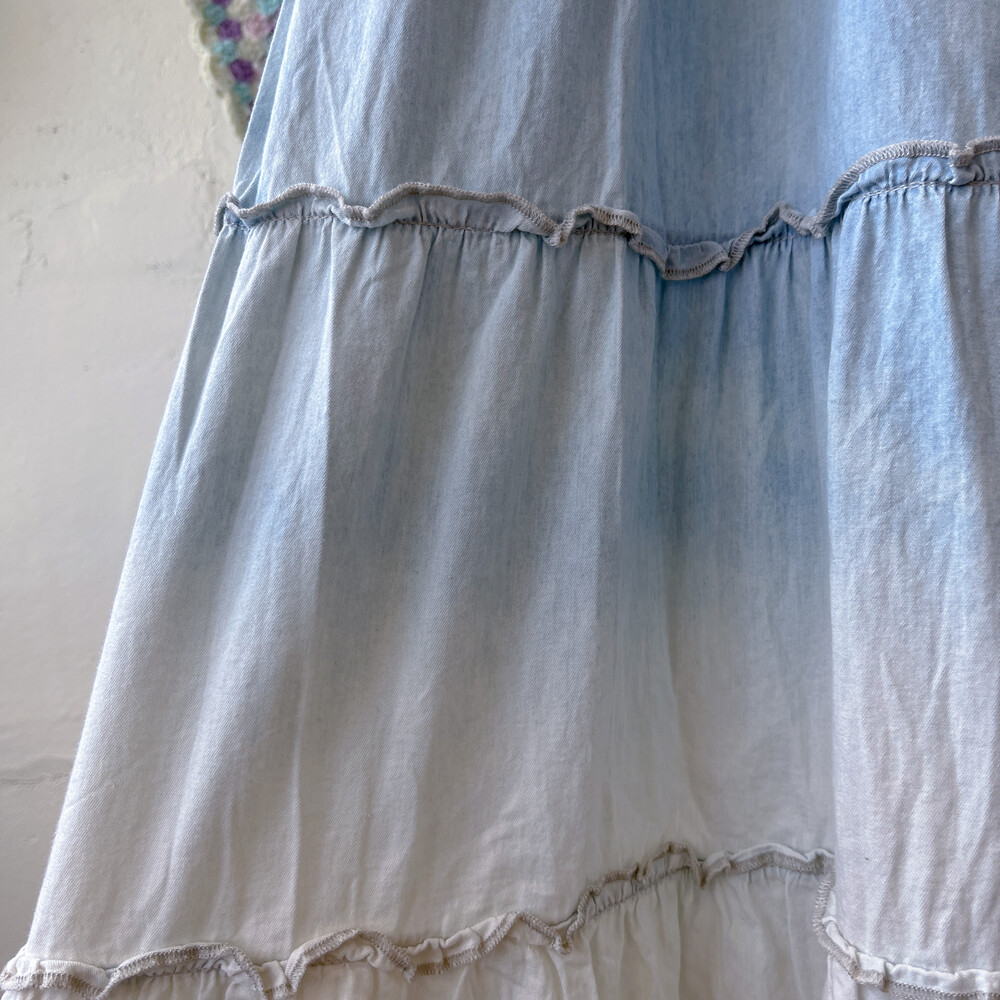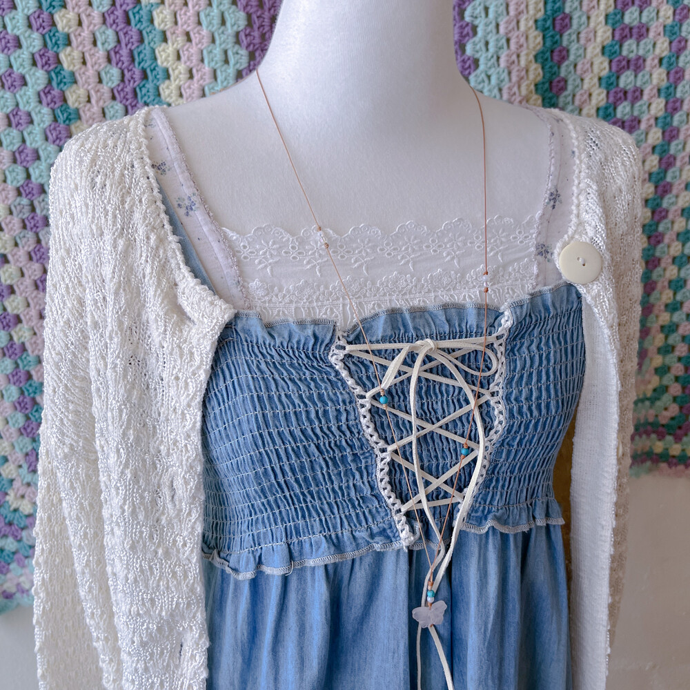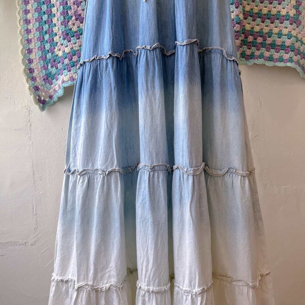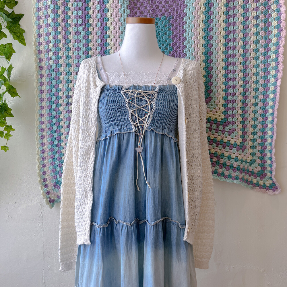 블루 색감의 그라데이션 아일렛 끈원피스예요