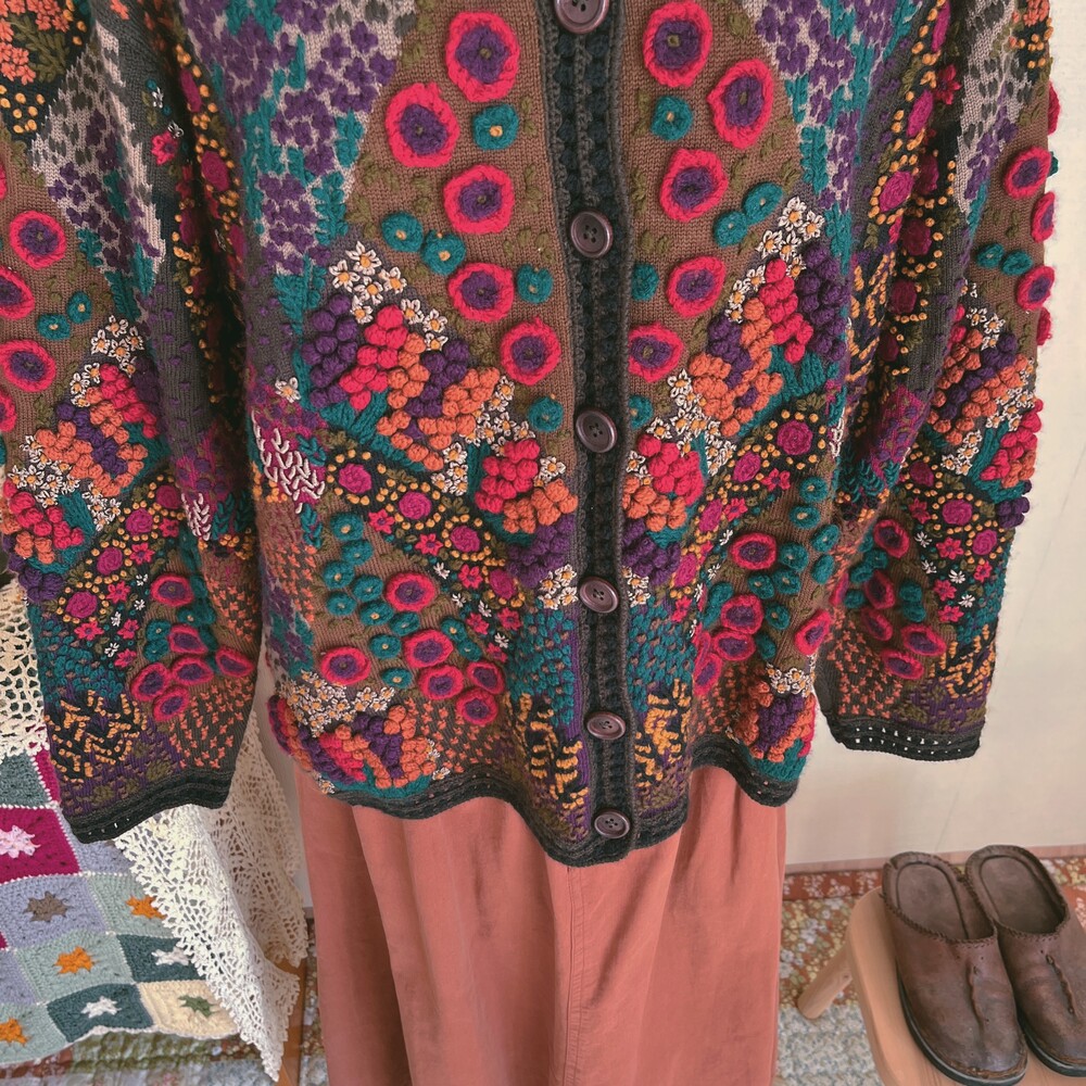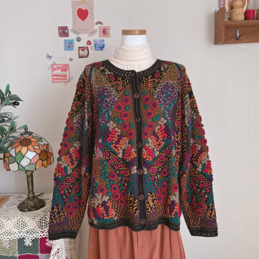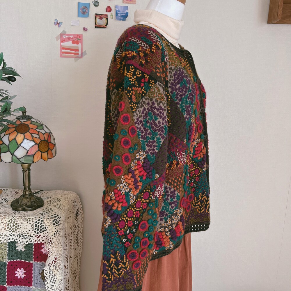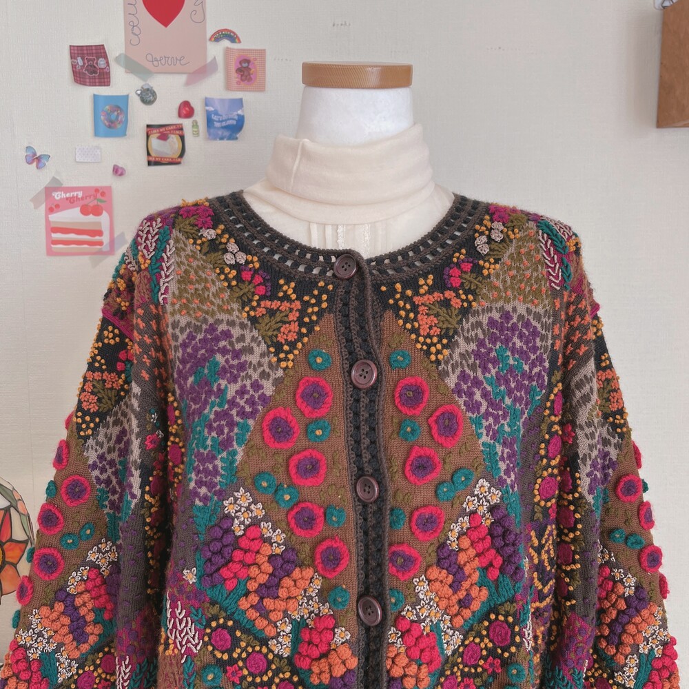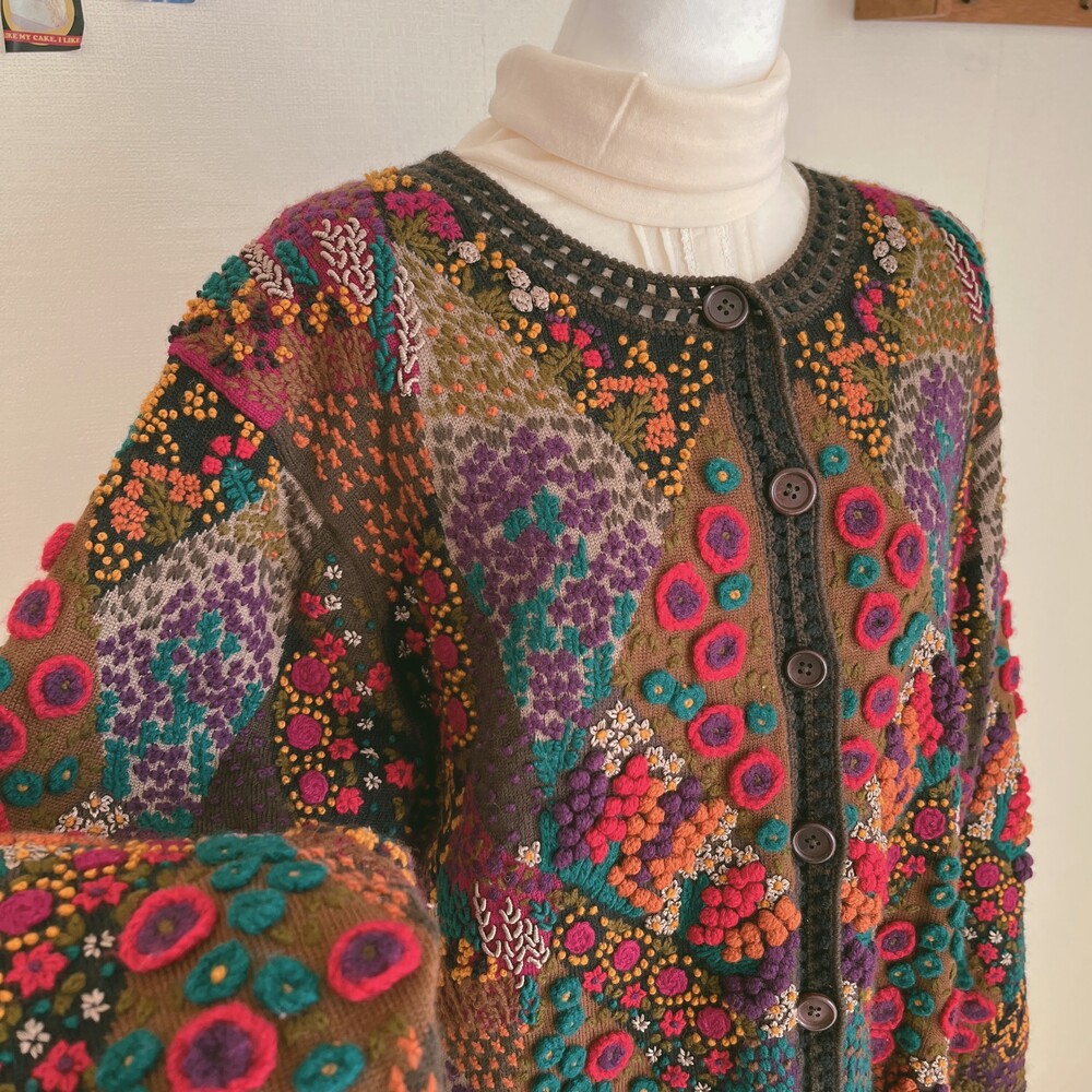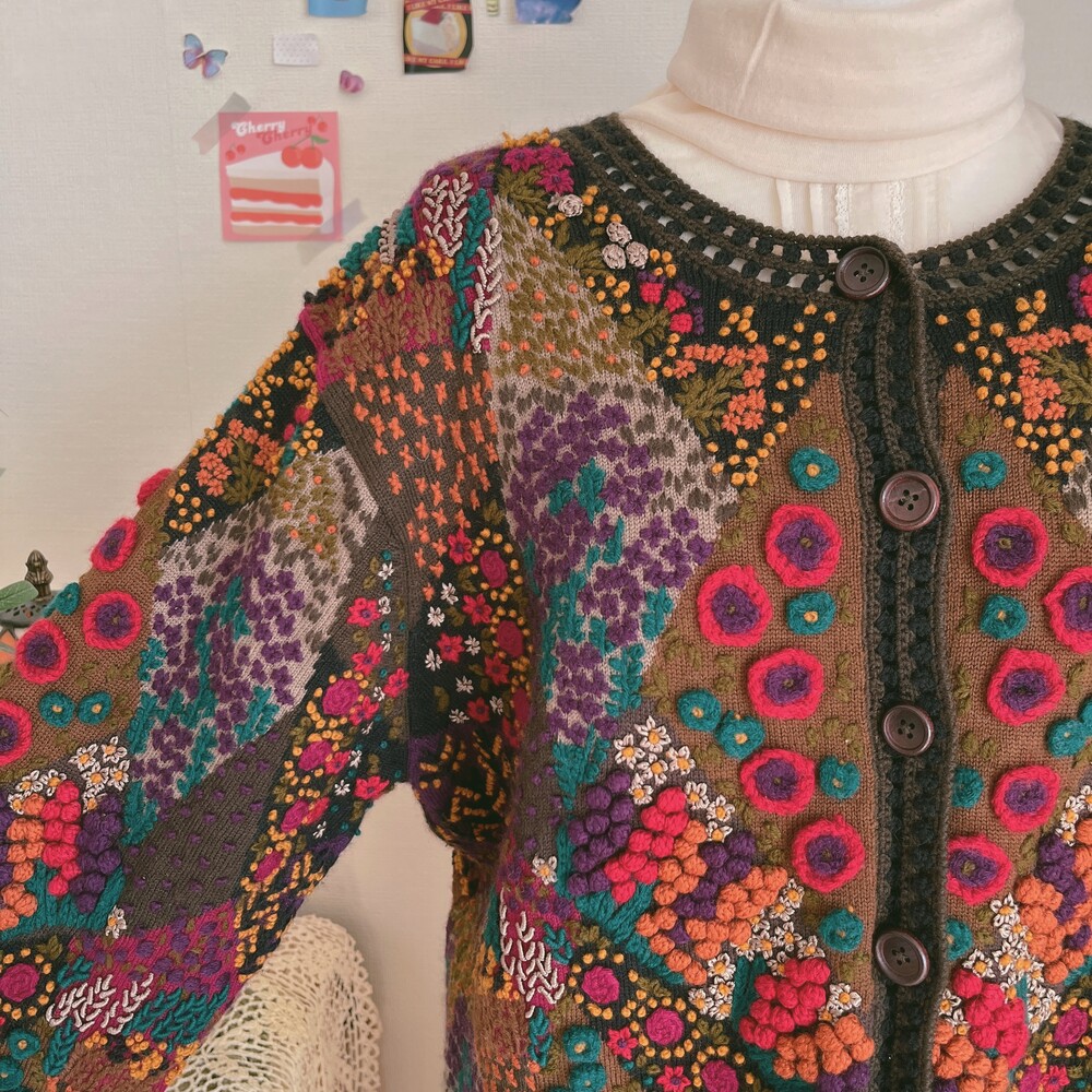 가디건 전체에 다양한 디자인의 꽃모티브들이 가득들어간