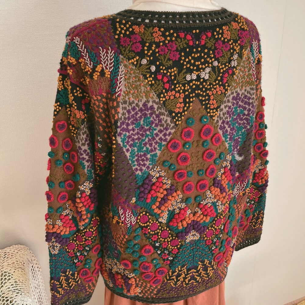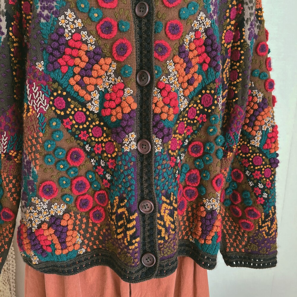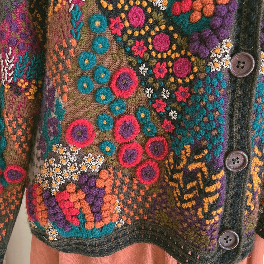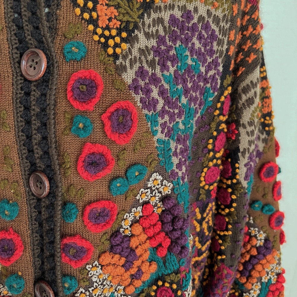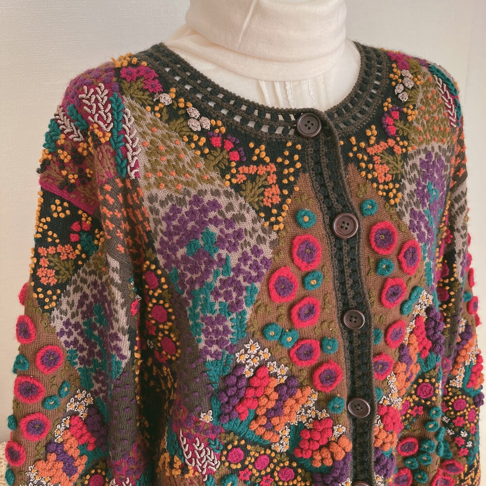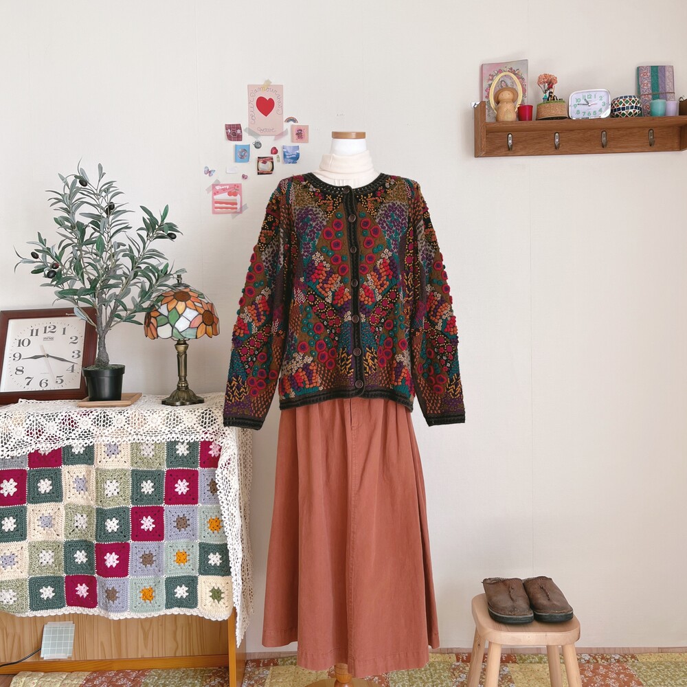 가디건 전체에 다양한 디자인의 꽃모티브들이 가득들어간