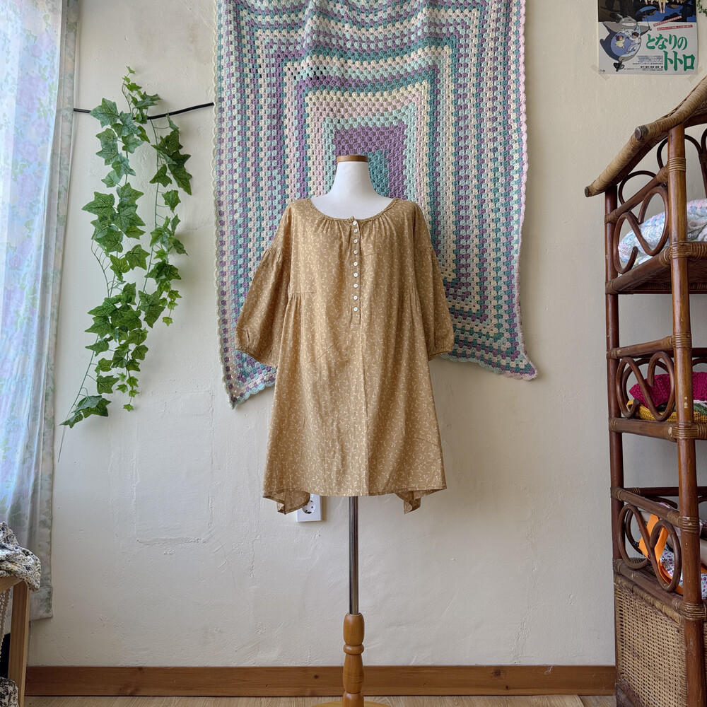 황토색의 잔꽃 원피스예요
