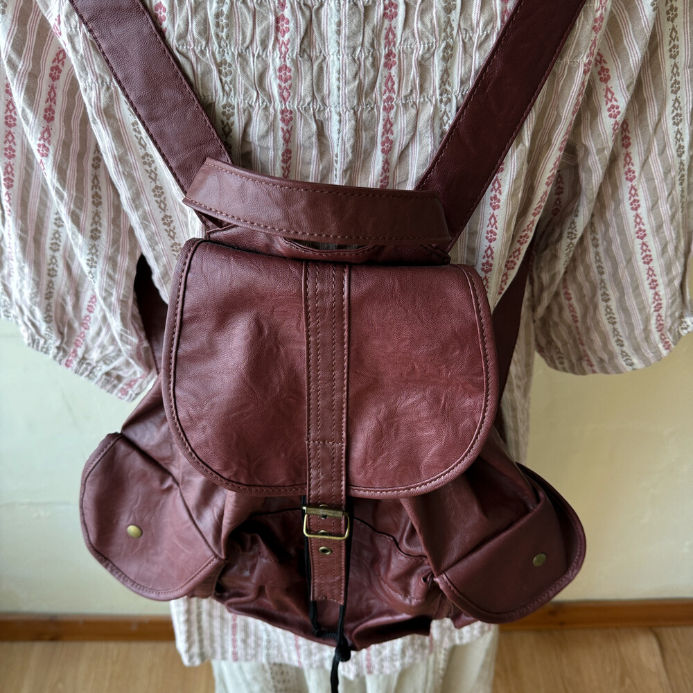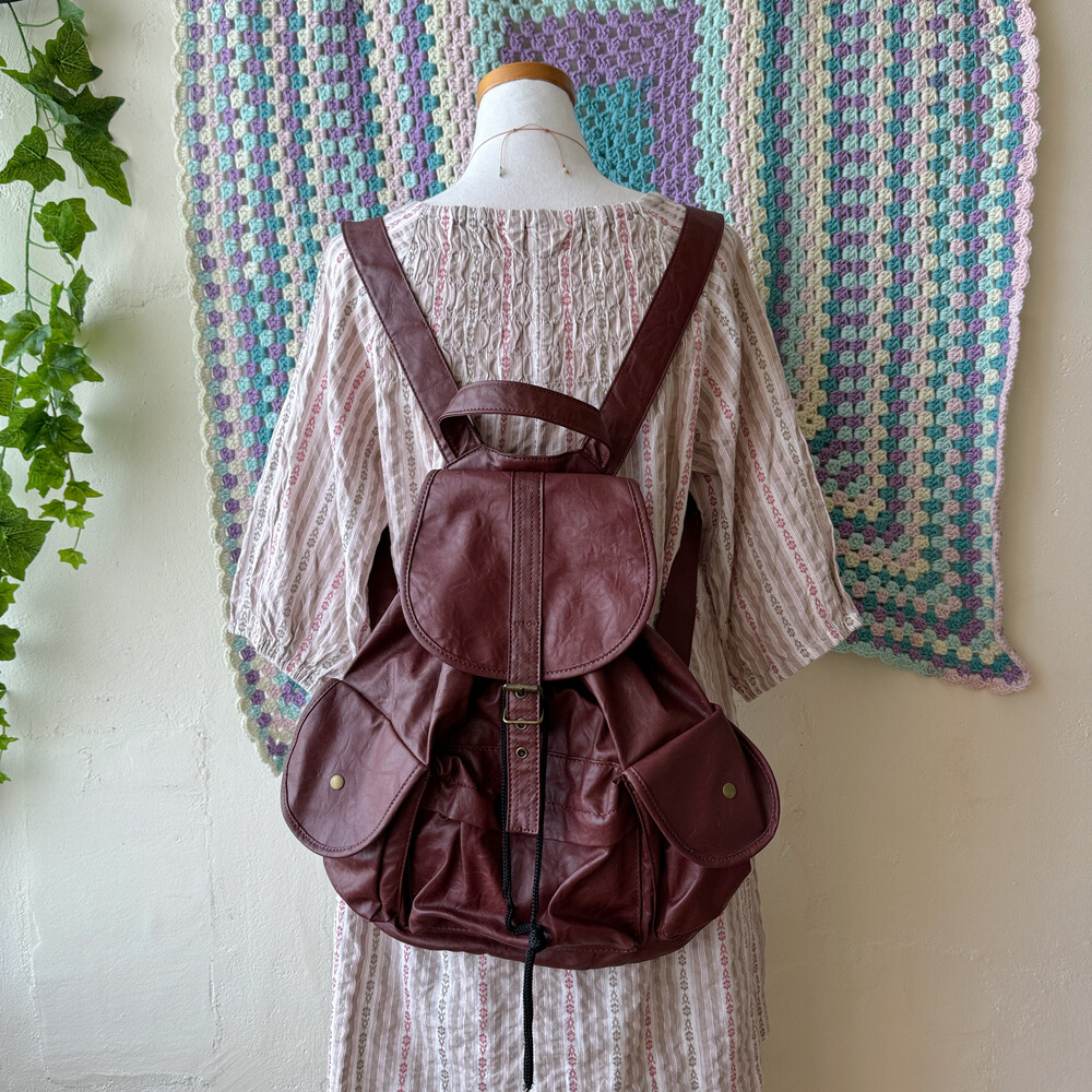 붉은기가 도는 레드브라운 색감의 백팩이에요