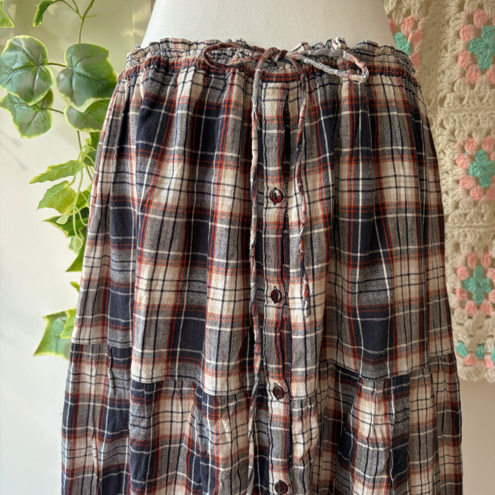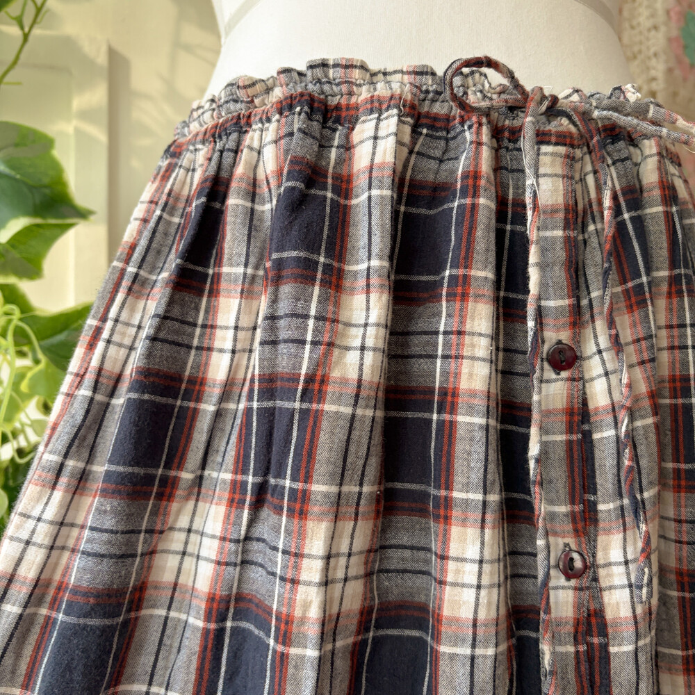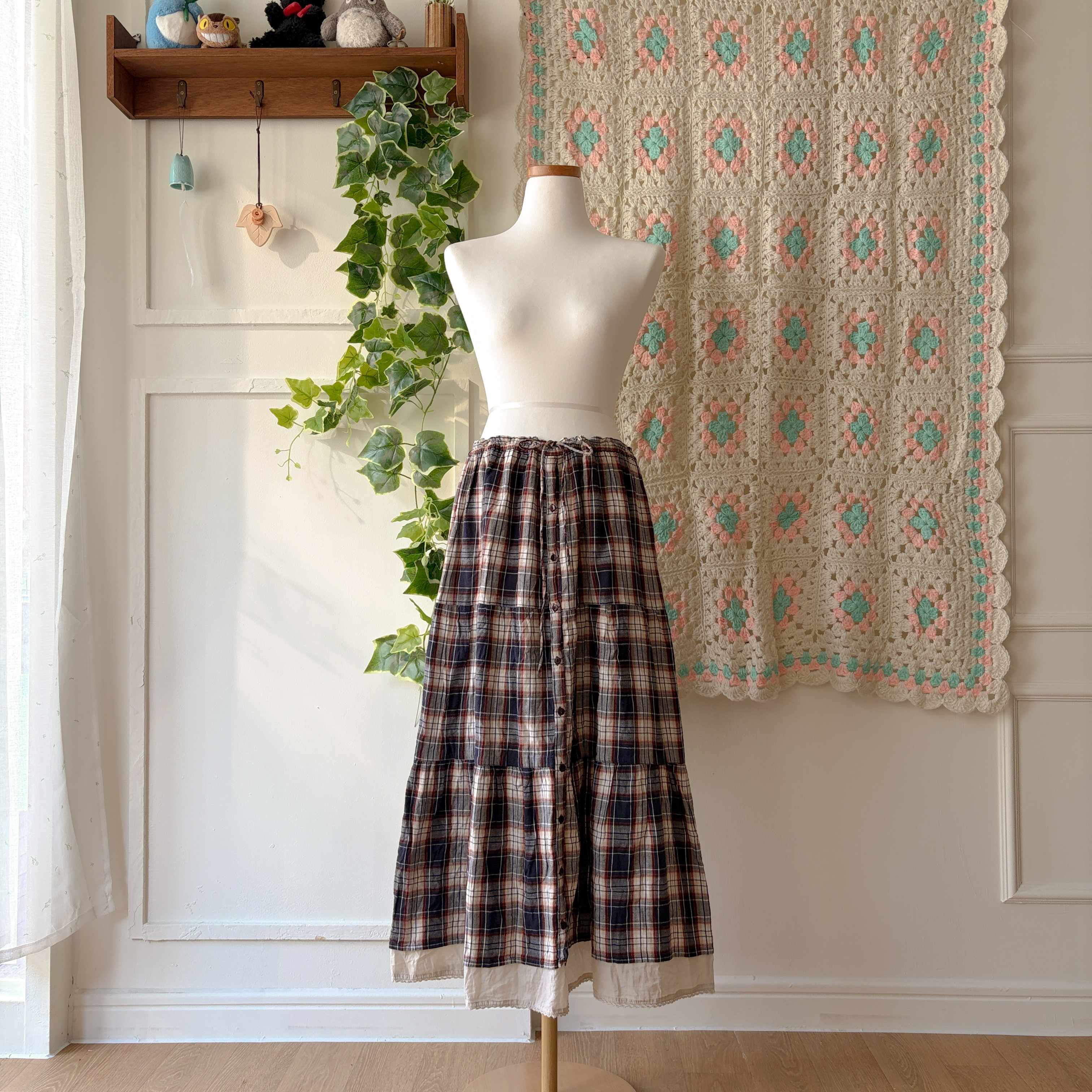 코지한 네이비 색감 바탕의 체크 스커트예요