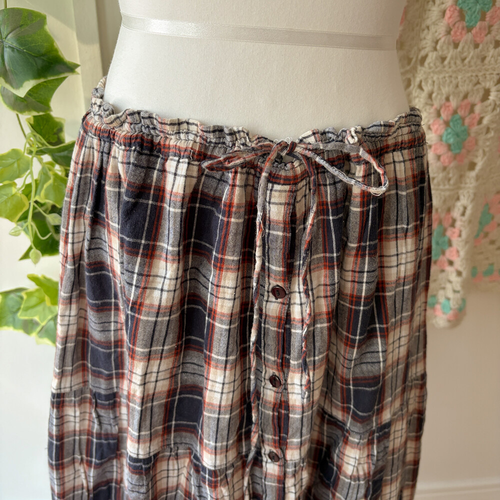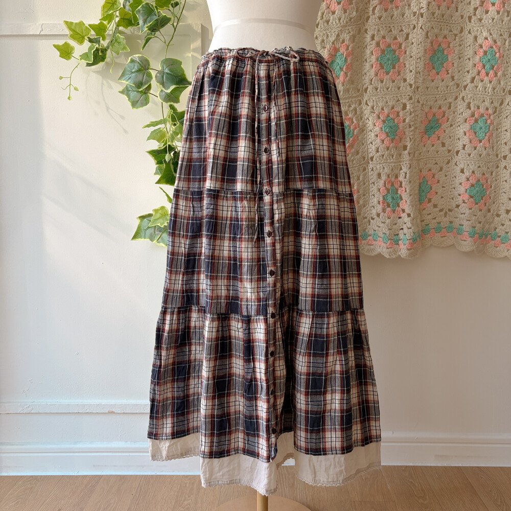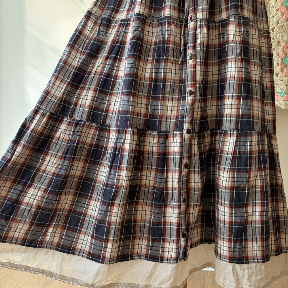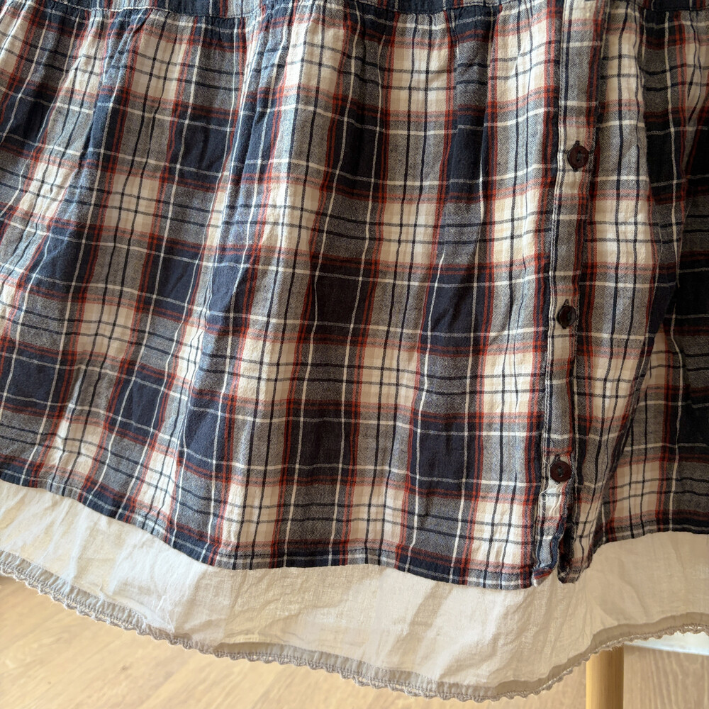 코지한 네이비 색감 바탕의 체크 스커트예요